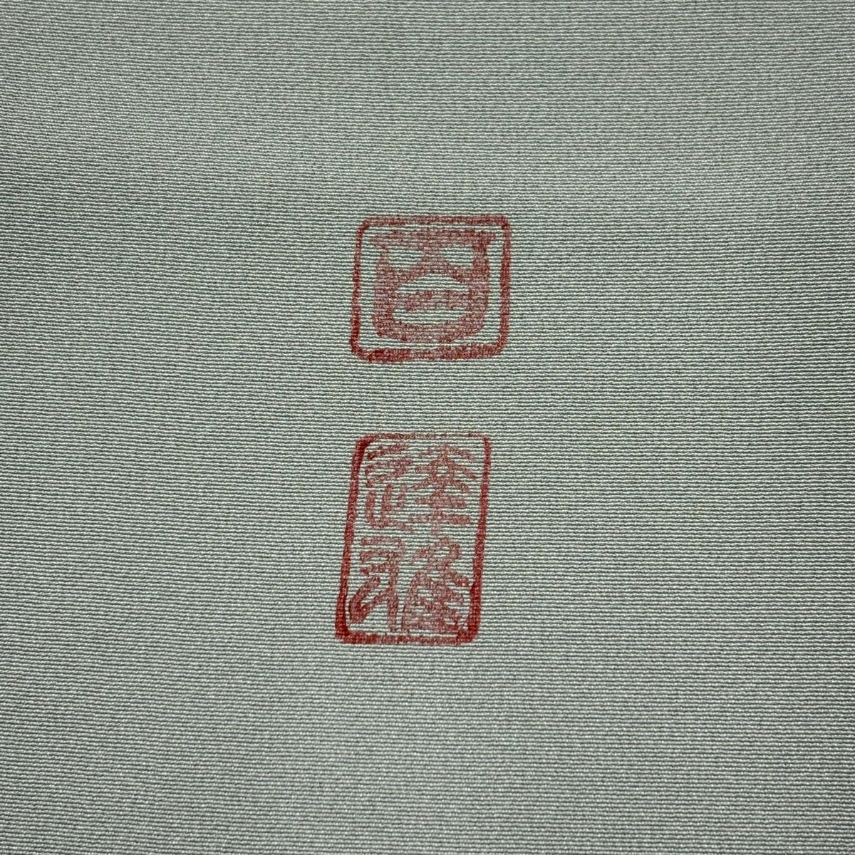 色留袖 身丈164cm 裄丈68.5cm L 袷 関口遼一 落款あり 童 裾ぼかし 薄青緑 正絹 秀品 三つ紋