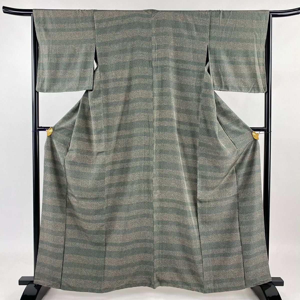 【最終値引き】 70%OFF 小紋 身丈161.5cm 裄丈65cm M 袷 幾何学 灰緑 正絹 秀品 K70