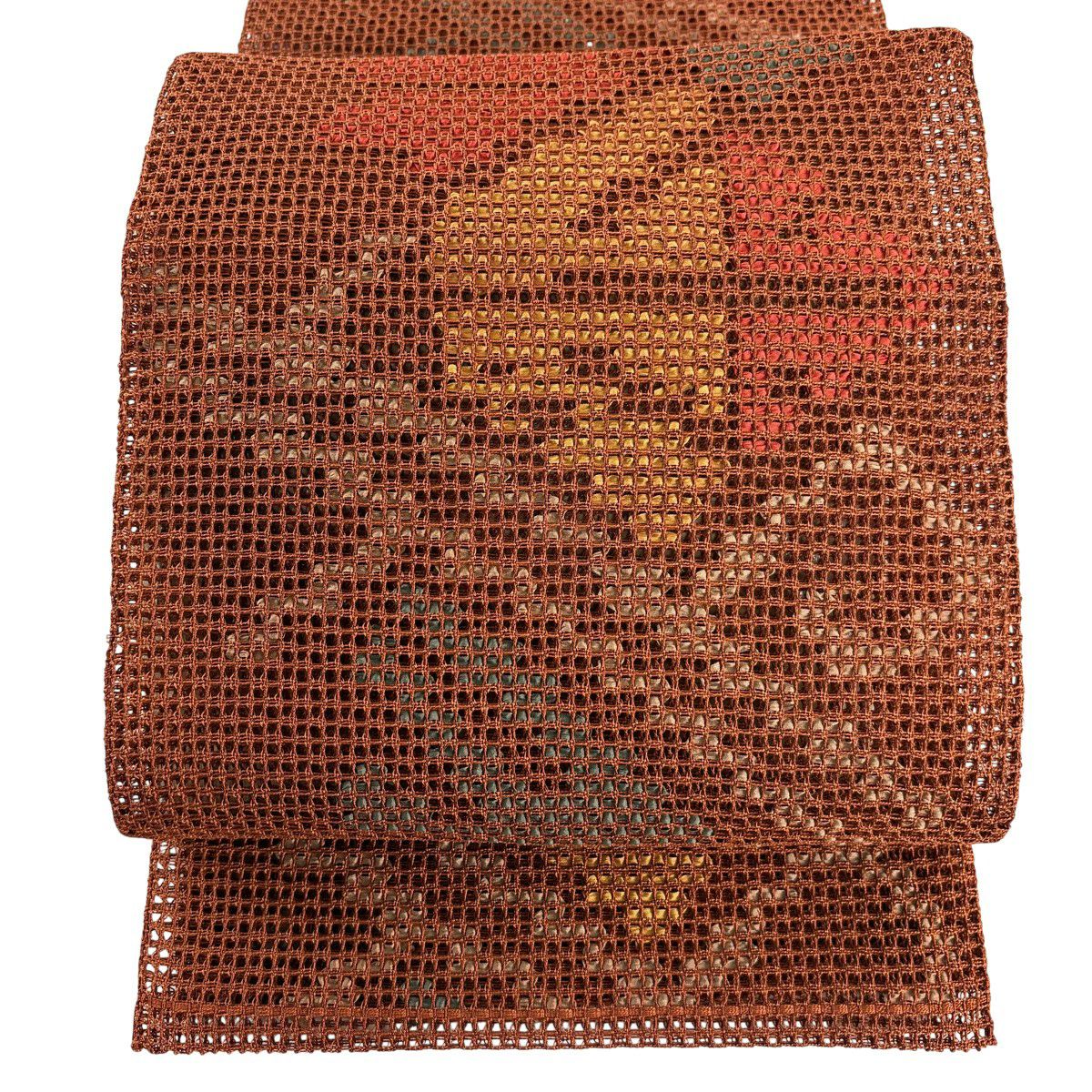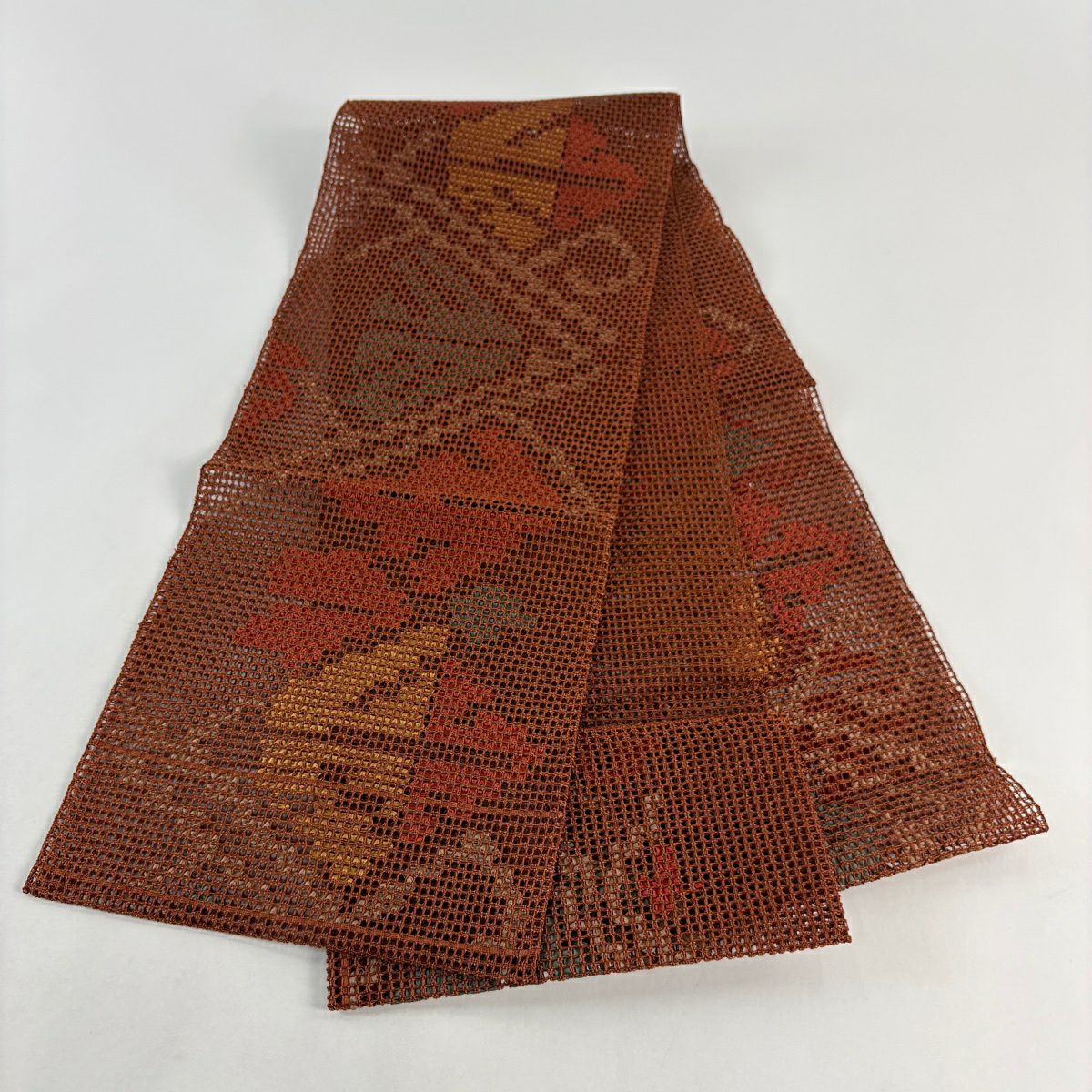 30%OFF 【美品】 名古屋帯 秀品 夏帯 羅 八寸名古屋帯 松葉仕立て トンネル仕立て 花唐草 赤茶 正絹 K30