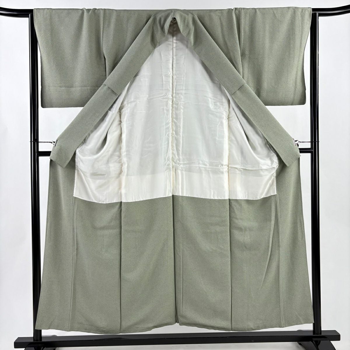 30%OFF 付下げ 身丈155cm 裄丈65cm M 袷 紬地 草花 霞 刺繍 金彩 薄緑 正絹 秀品 K30