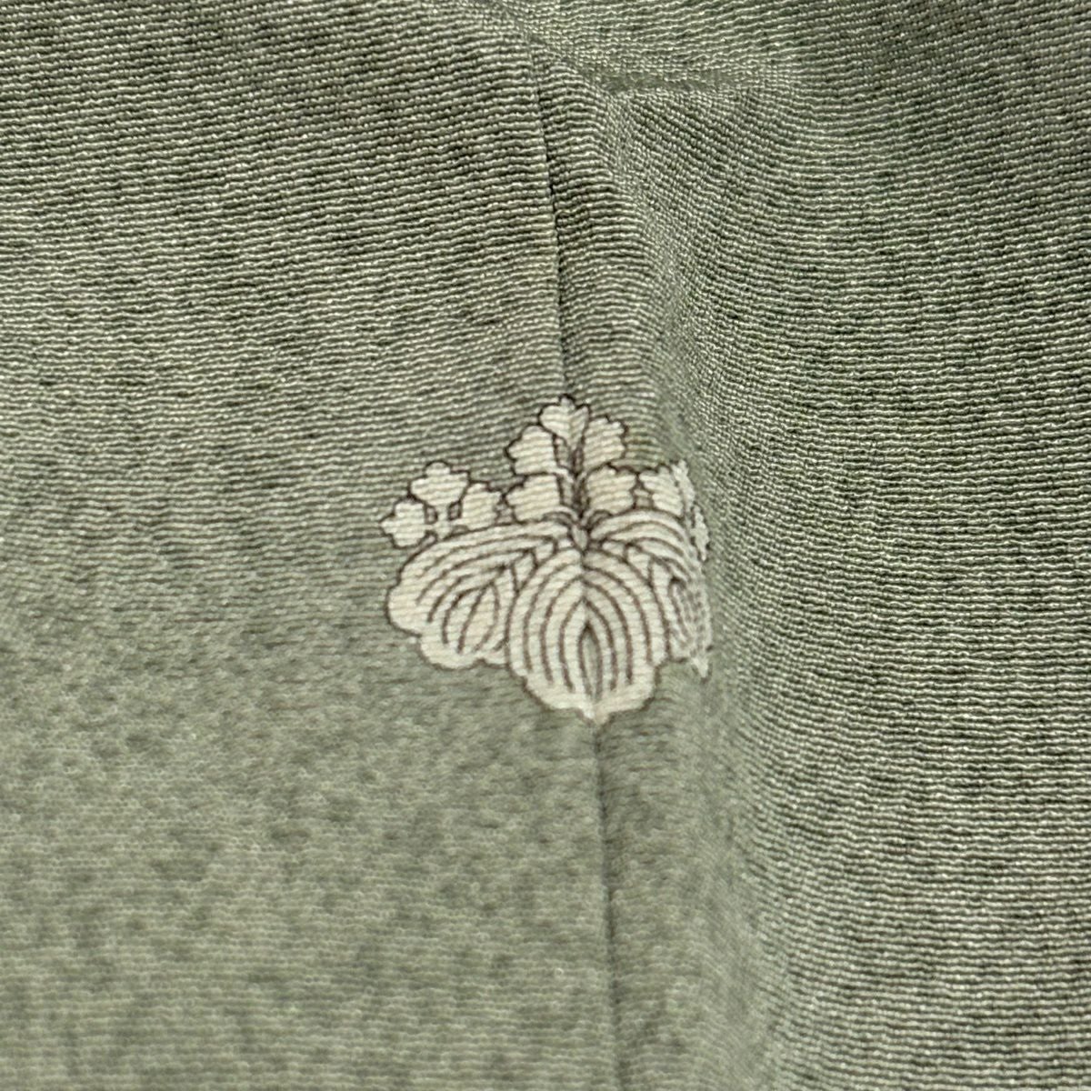 30%OFF 小紋 身丈154cm 裄丈64cm M 袷 落款あり 幾何学模様 灰緑 正絹 秀品 一つ紋 K30