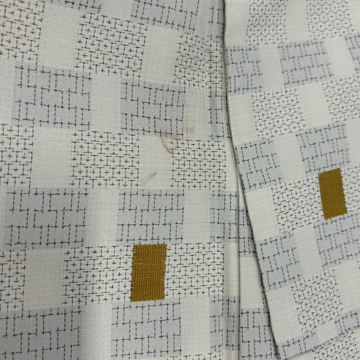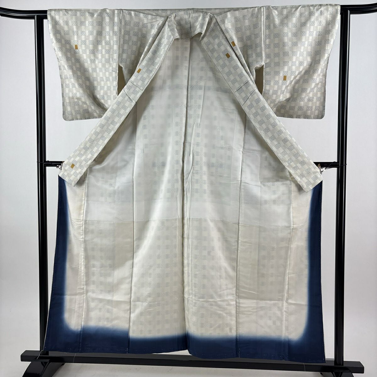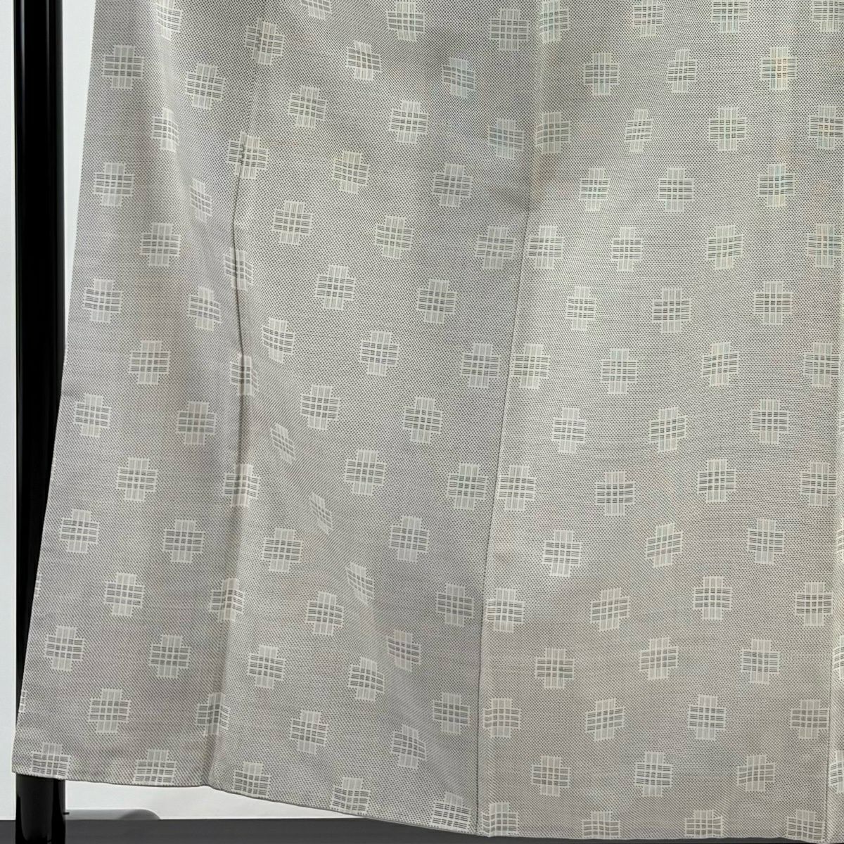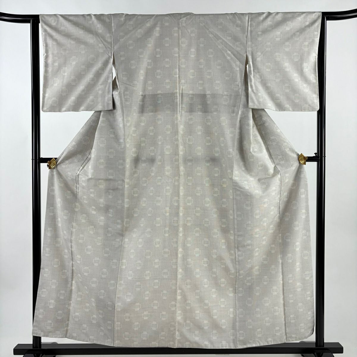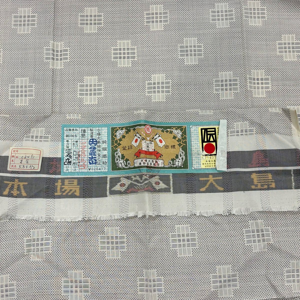 30%OFF 大島紬 身丈158.5cm 裄丈63.5cm S 袷 証紙あり 幾何学模様 灰白 正絹 秀品 K30