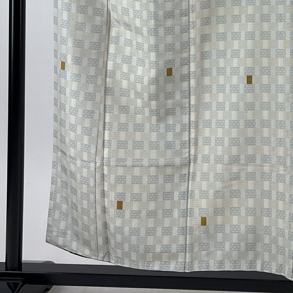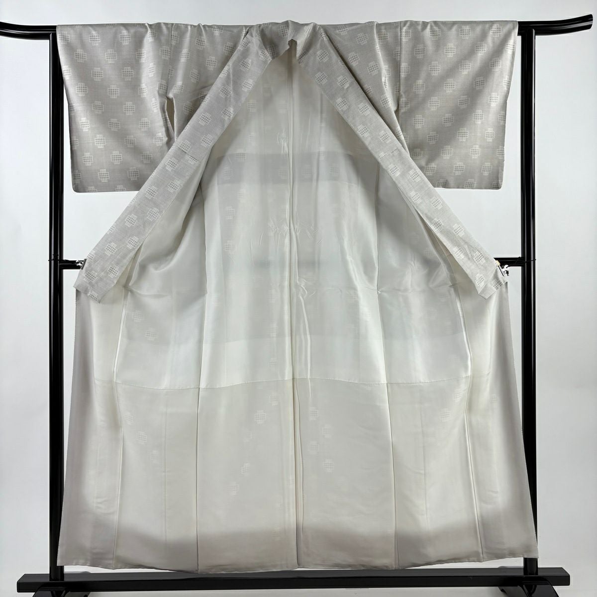 30%OFF 小紋 身丈155cm 裄丈61.5cm S 袷 紬地 亀甲絣 幾何学模様 灰白 正絹 秀品 K30