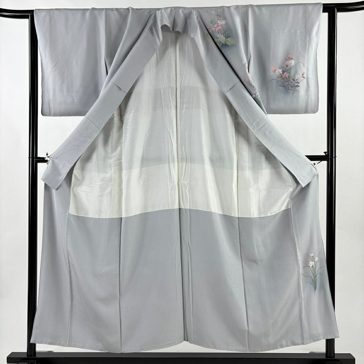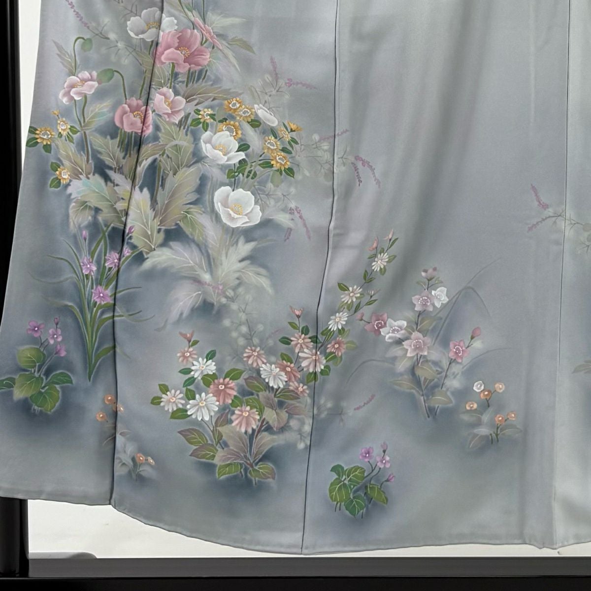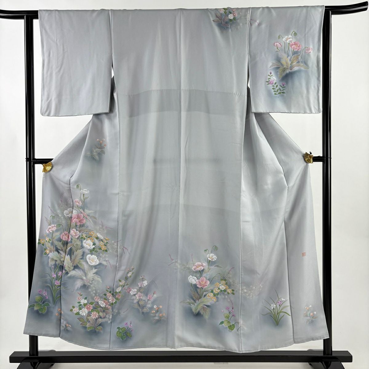 30%OFF 訪問着 身丈154cm 裄丈63cm S 袷 落款あり 草花 ぼかし 青灰色 正絹 秀品 K30