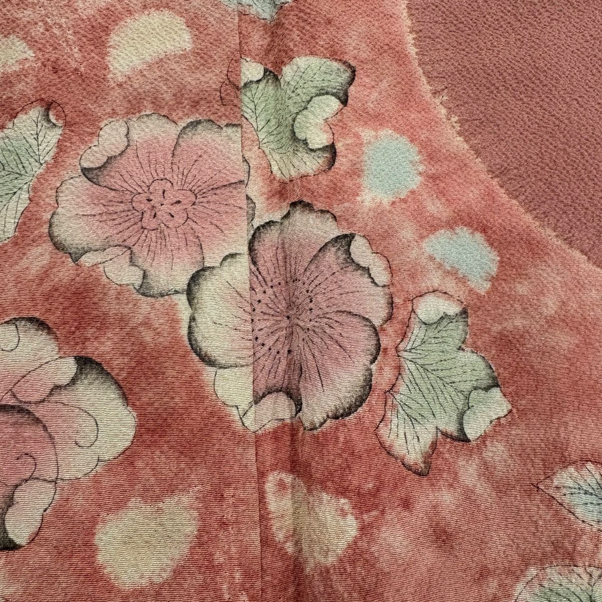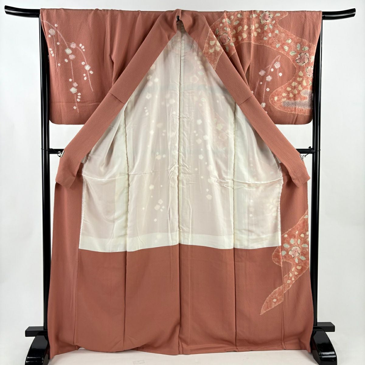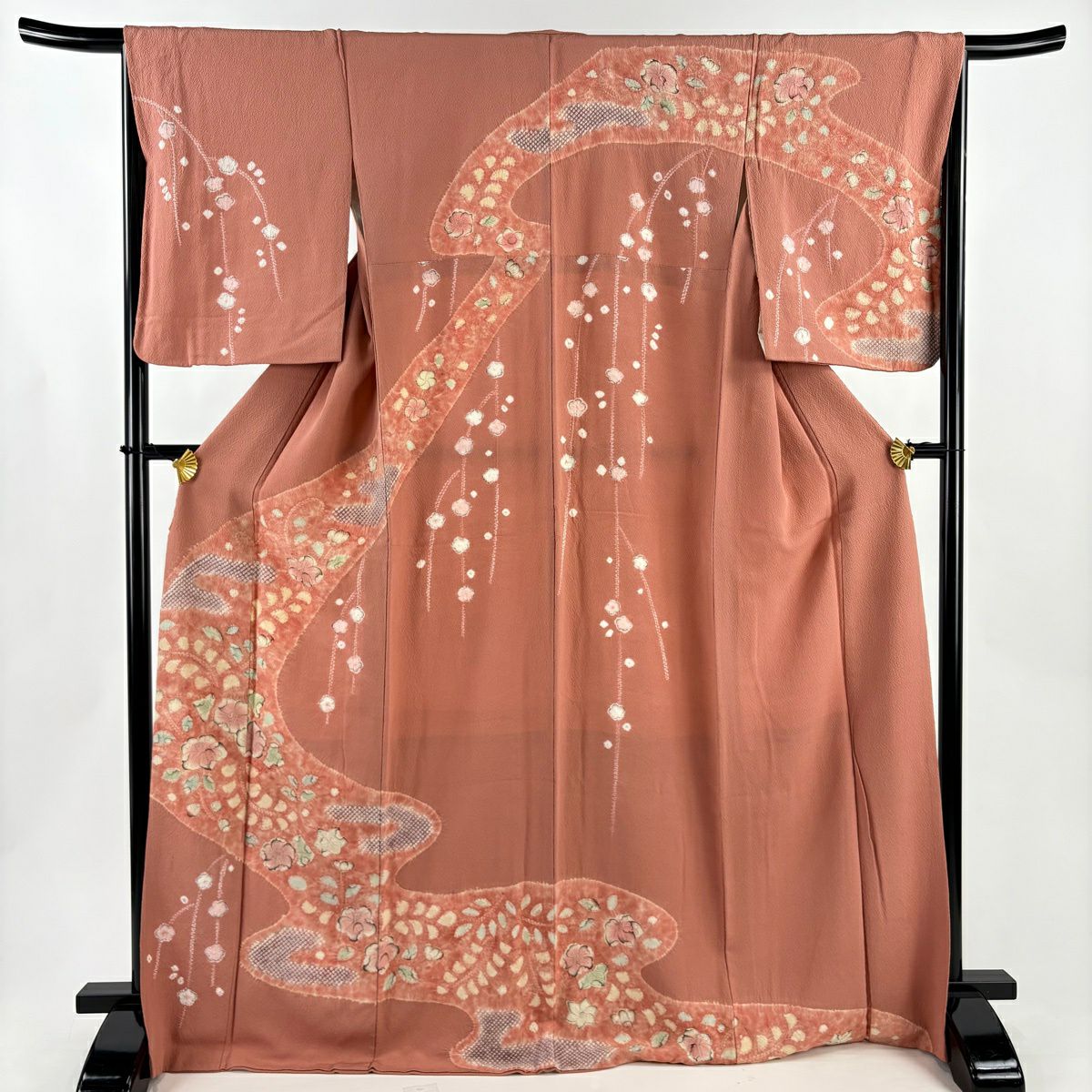 30%OFF 訪問着 身丈168.5cm 裄丈66cm M 袷 辻が花 霞 縮緬 ピンク 正絹 秀品 K30