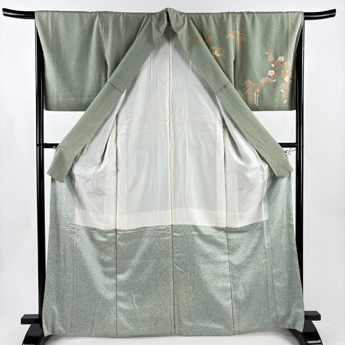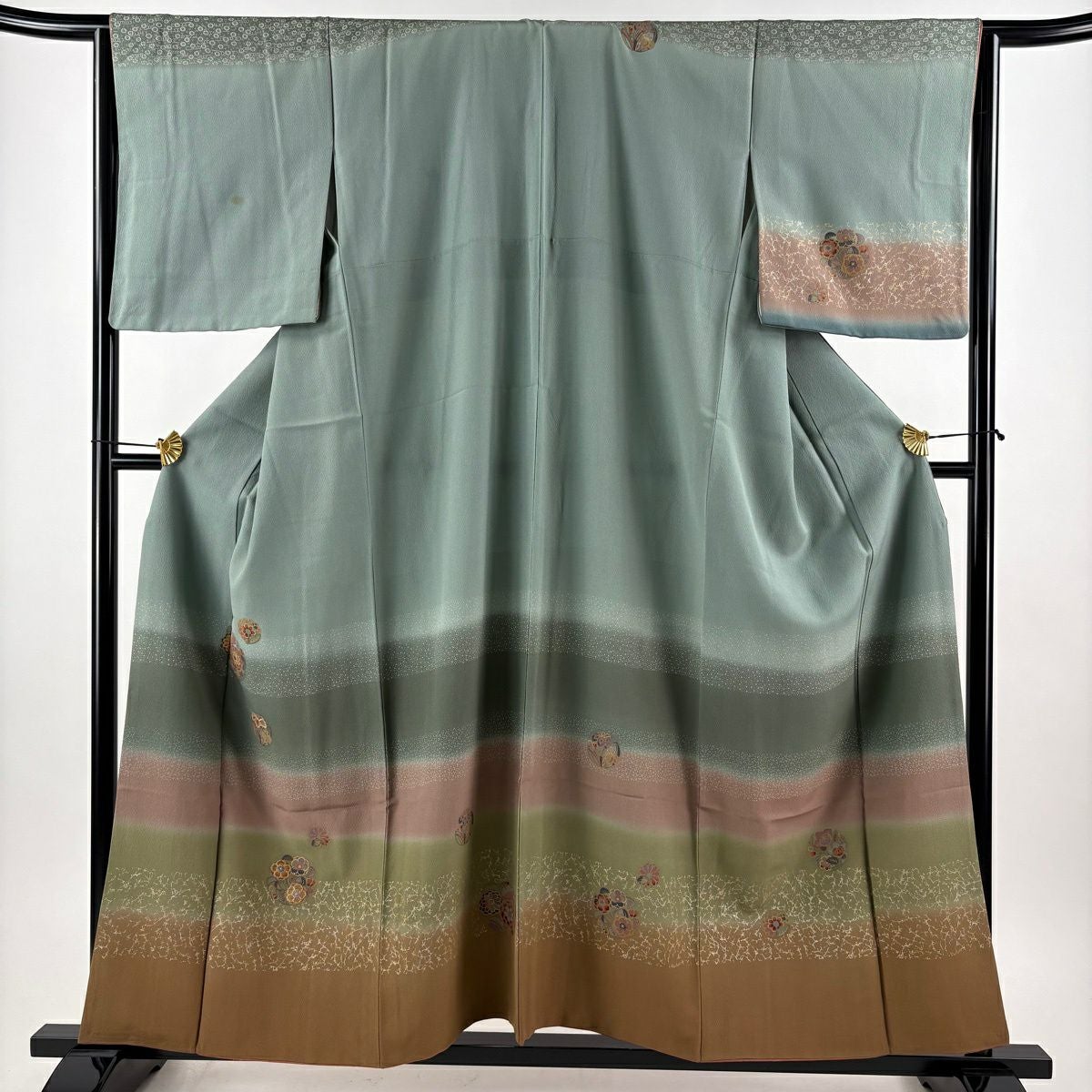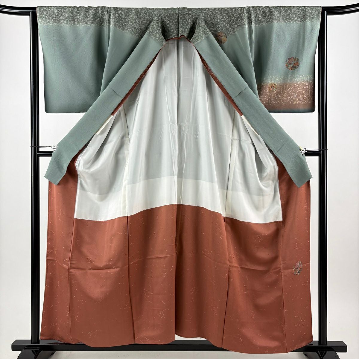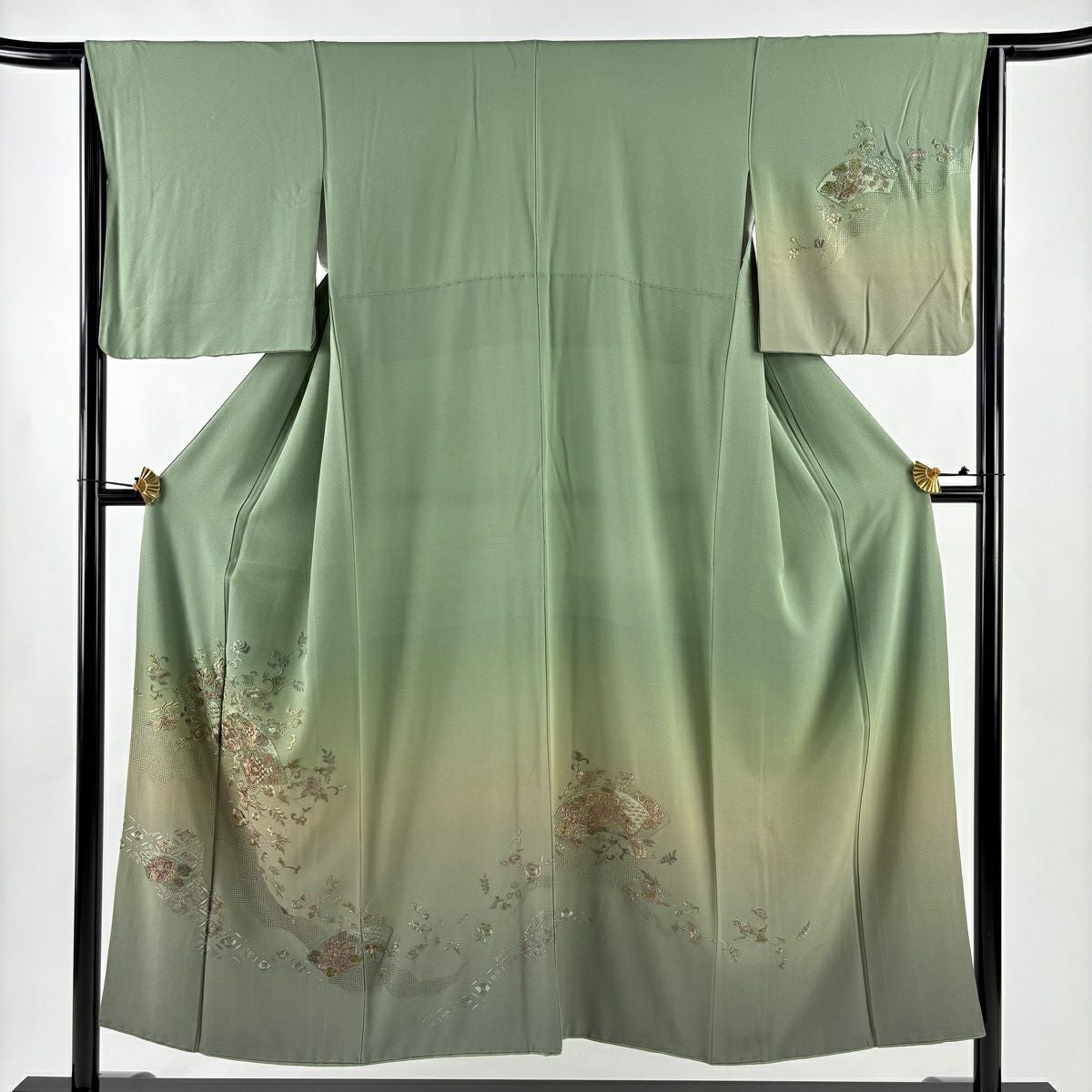 30%OFF 訪問着 身丈166.5cm 裄丈66.5cm M 袷 小舟 草花 金彩 ぼかし 灰緑 正絹 秀品 K30