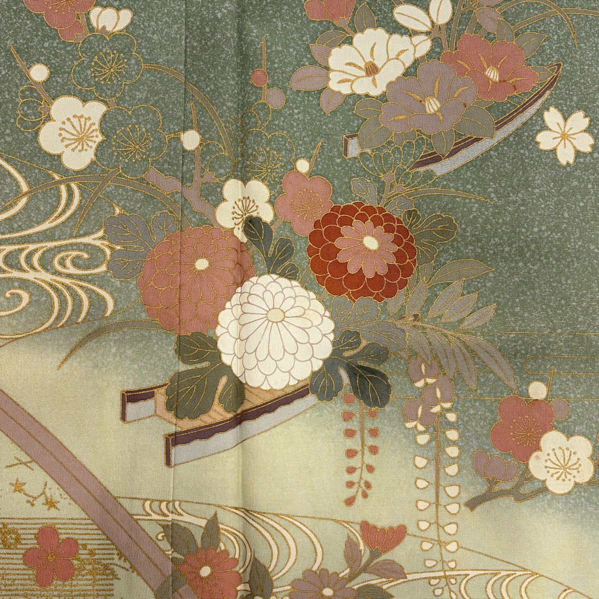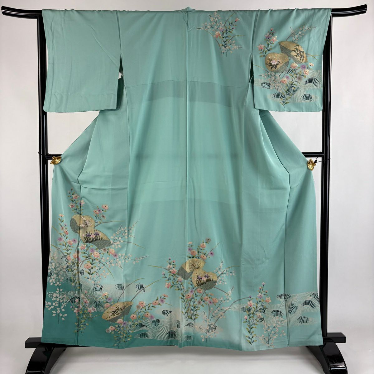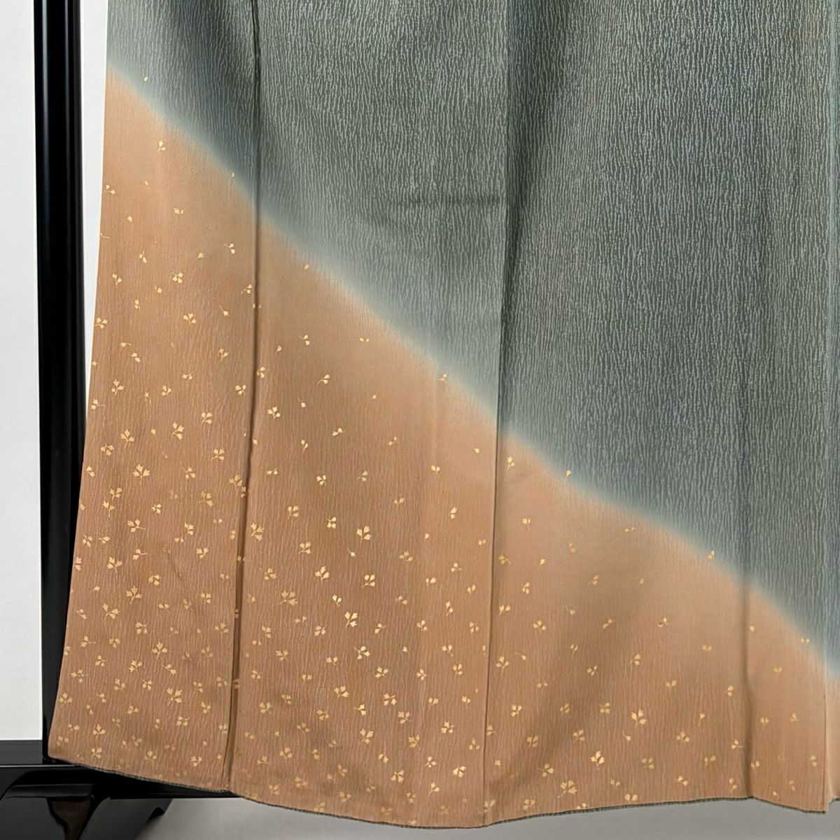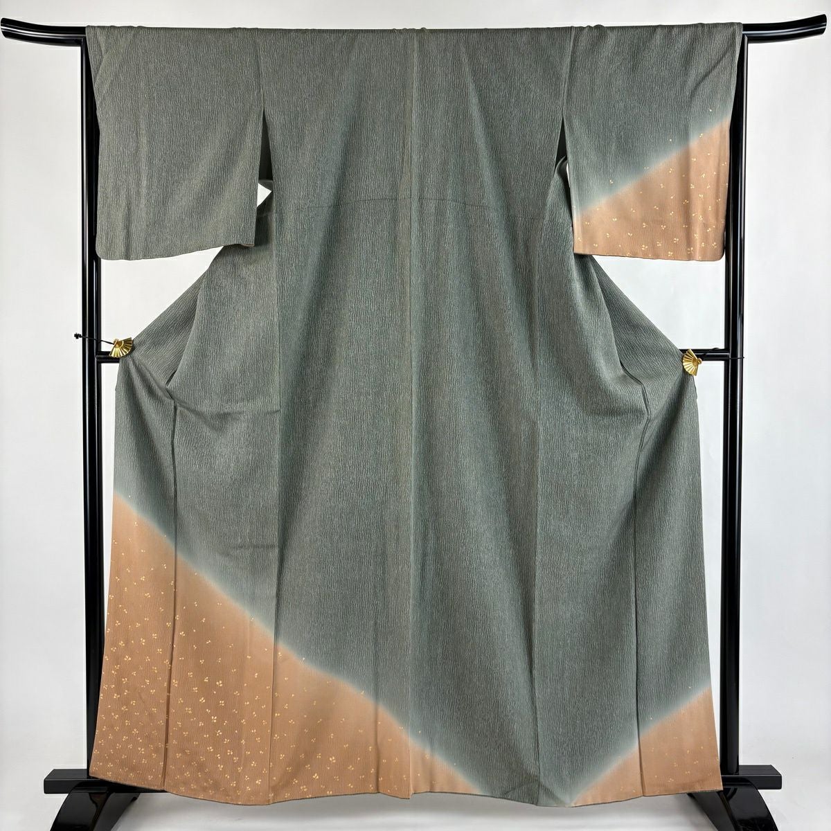 30%OFF 訪問着 身丈166.5cm 裄丈66.5cm M 袷 小舟 草花 金彩 ぼかし 灰緑 正絹 秀品 K30