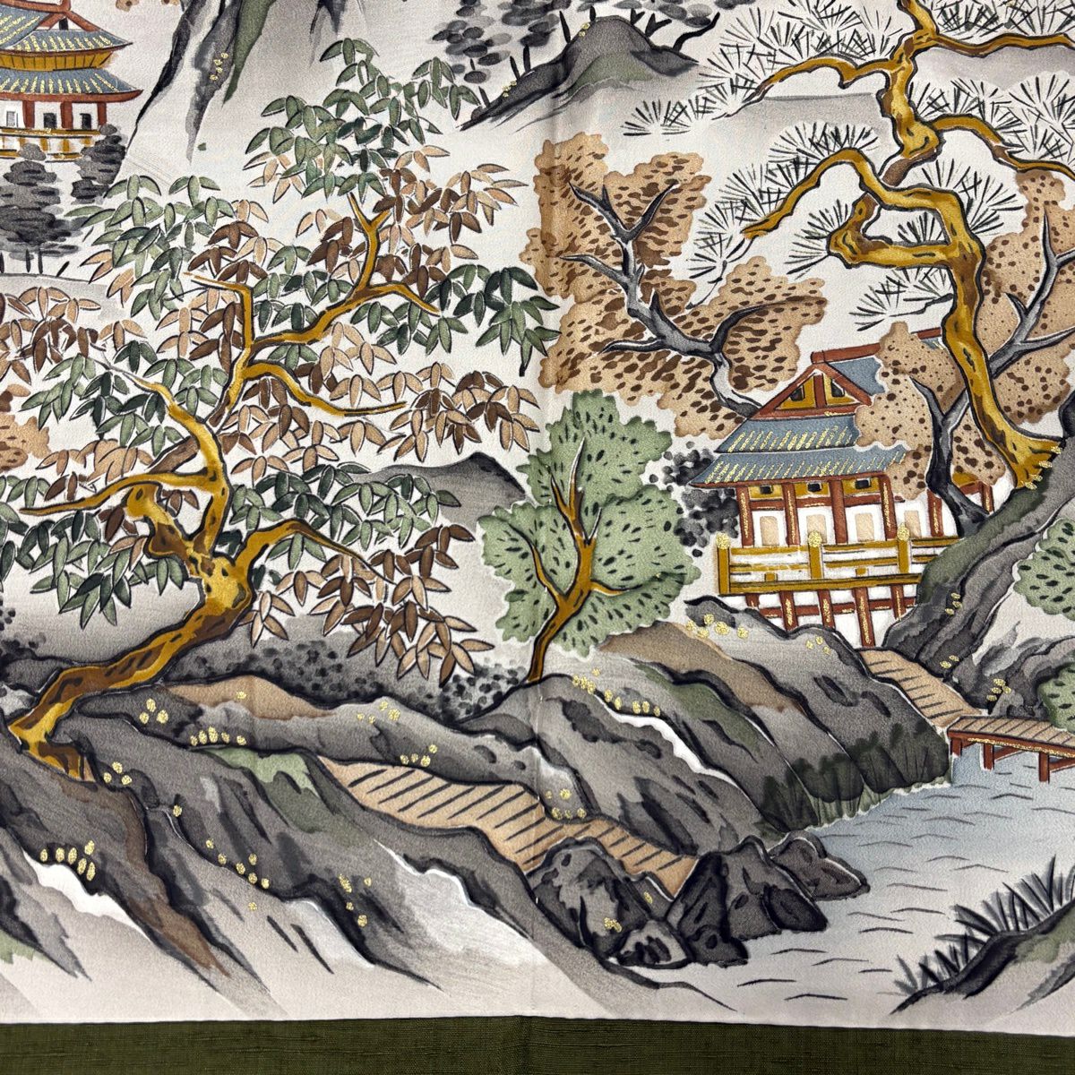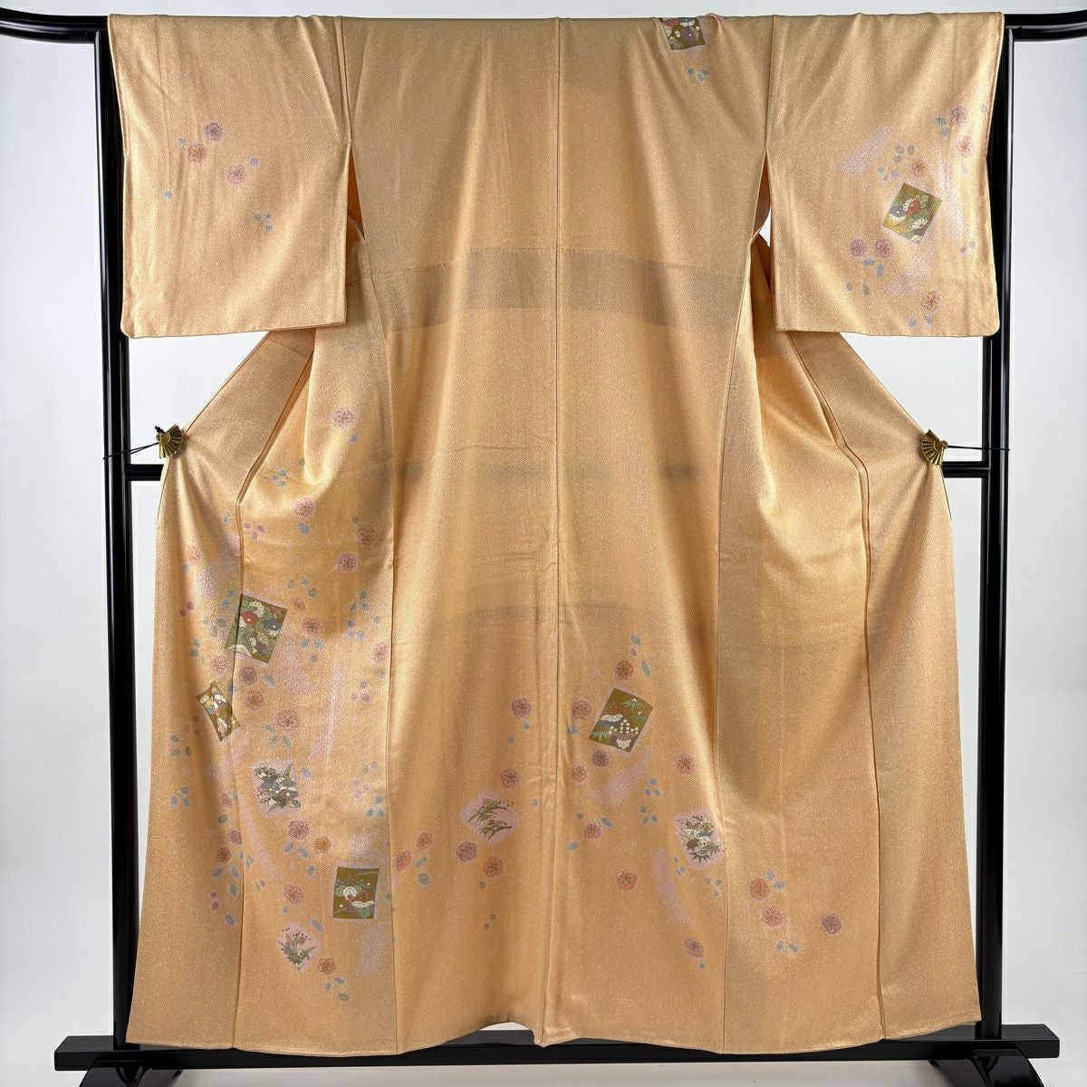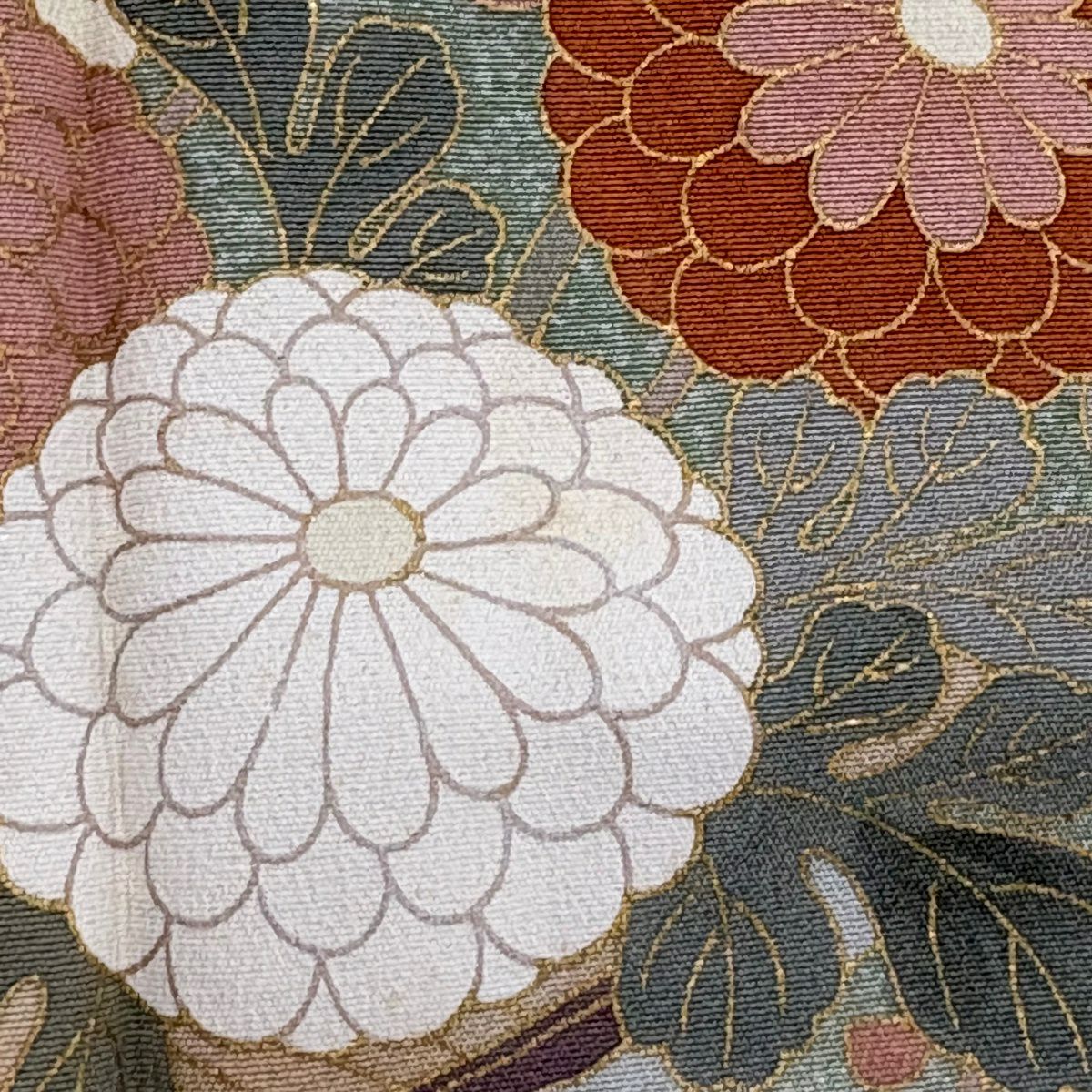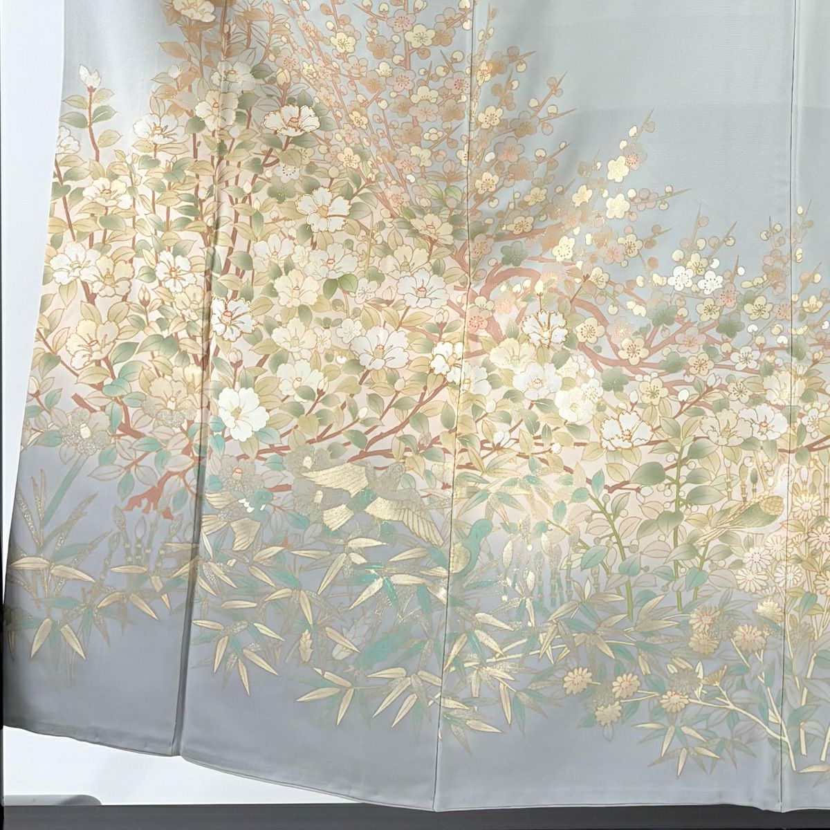 30%OFF 訪問着 身丈166.5cm 裄丈66.5cm M 袷 小舟 草花 金彩 ぼかし 灰緑 正絹 秀品 K30