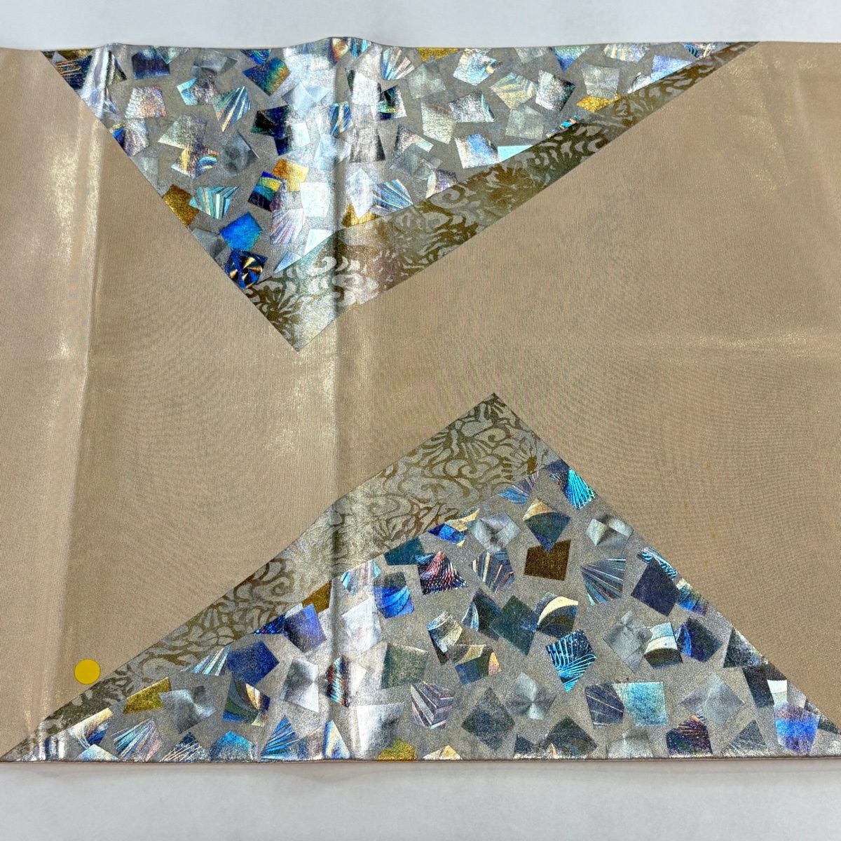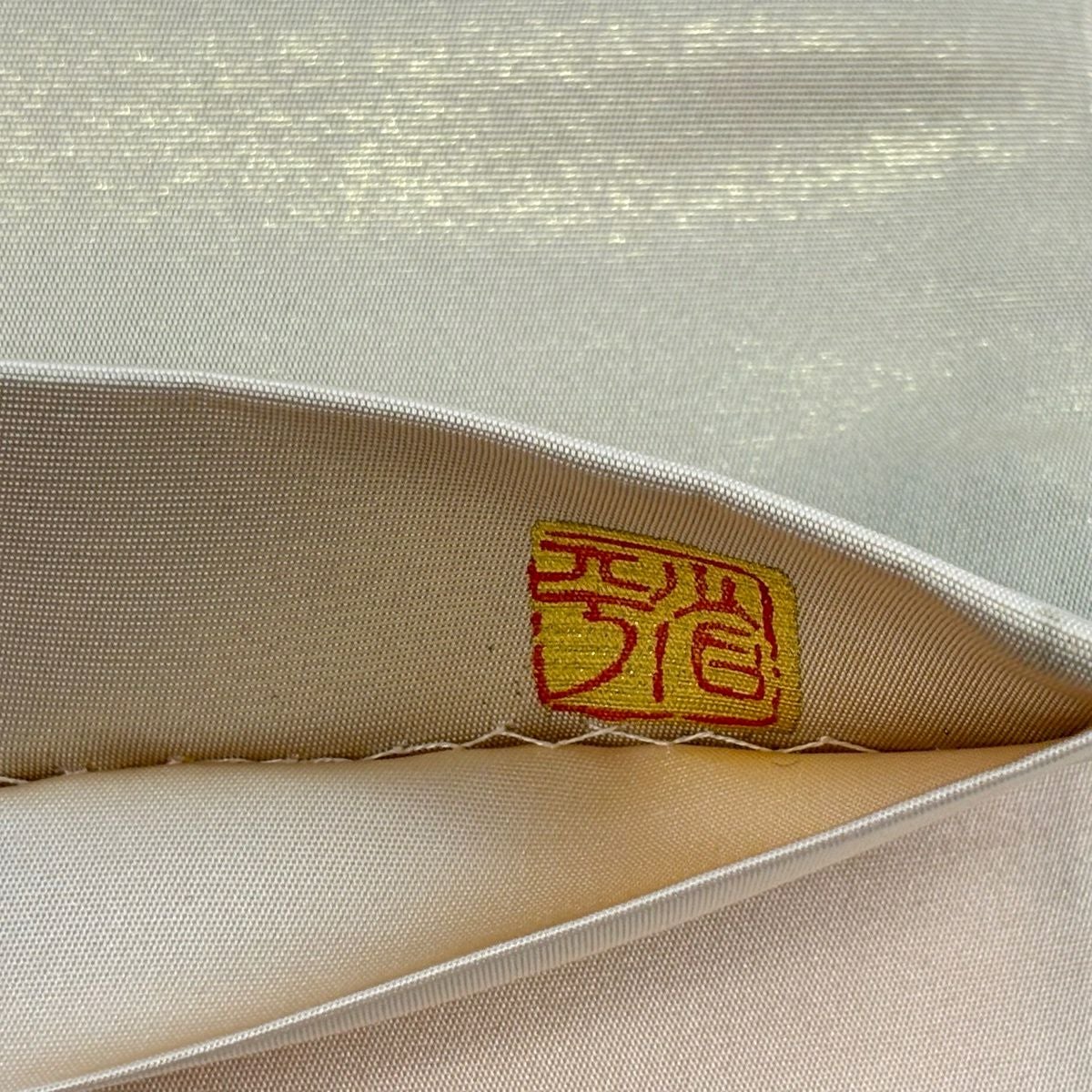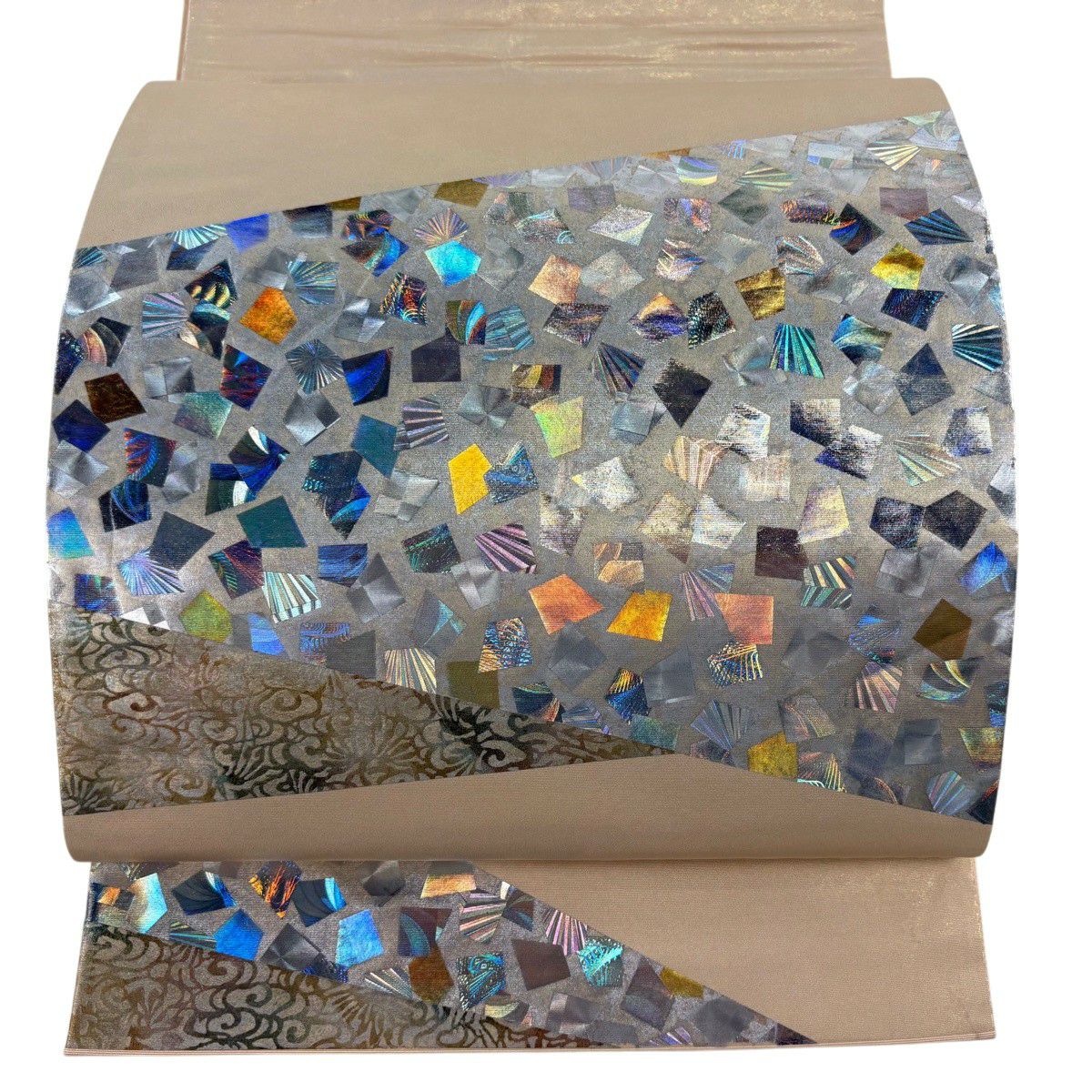 30%OFF 袋帯 秀品 堀省平 落款あり 箔散らし柄 草花 金銀彩 箔 ベージュ お太鼓柄 正絹 K30