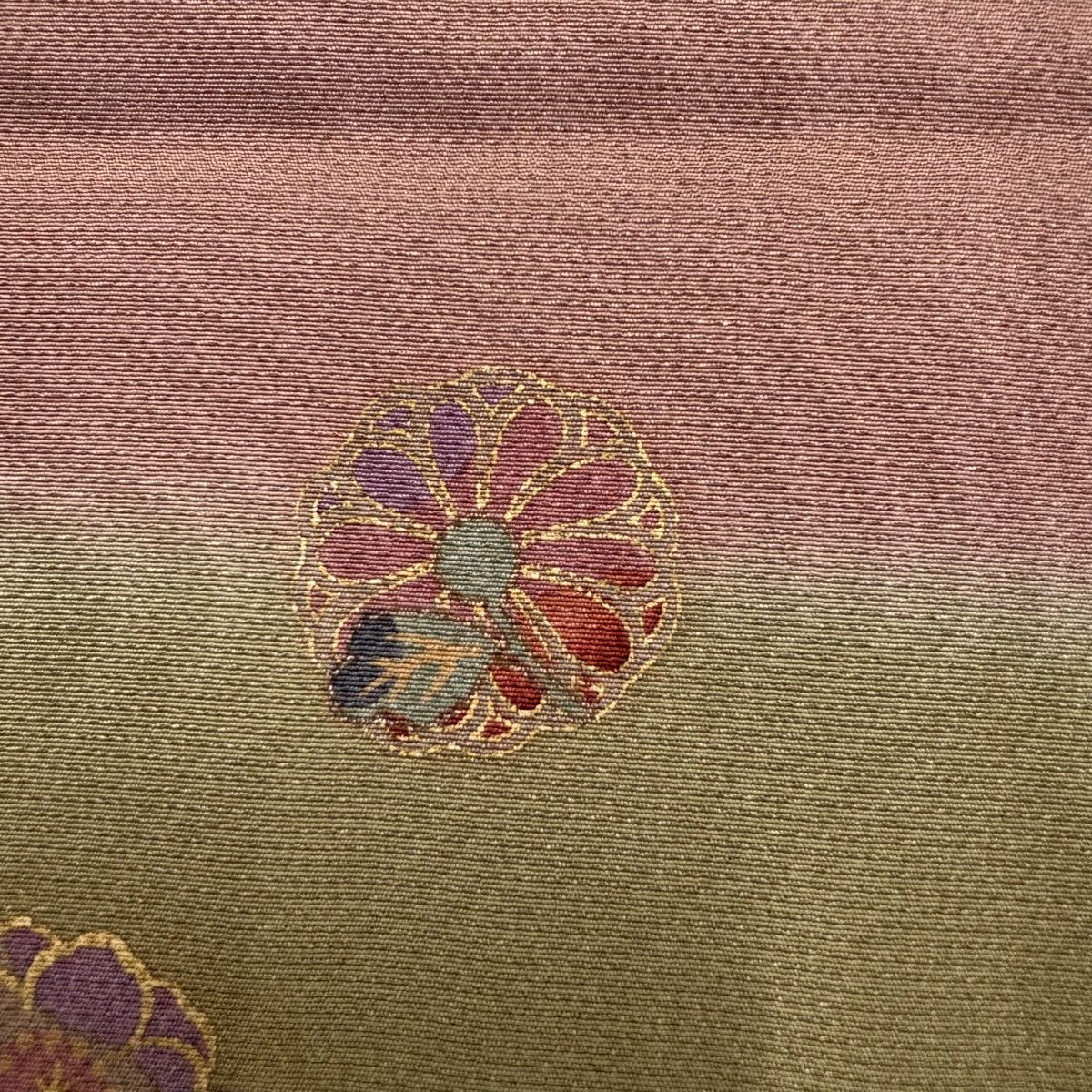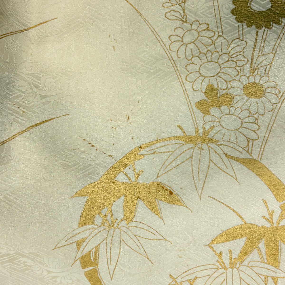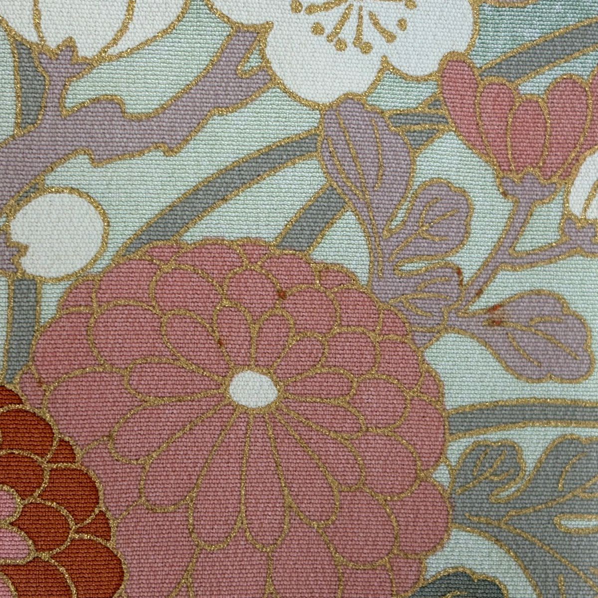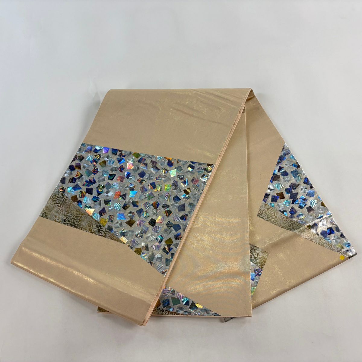 30%OFF 袋帯 秀品 堀省平 落款あり 箔散らし柄 草花 金銀彩 箔 ベージュ お太鼓柄 正絹 K30