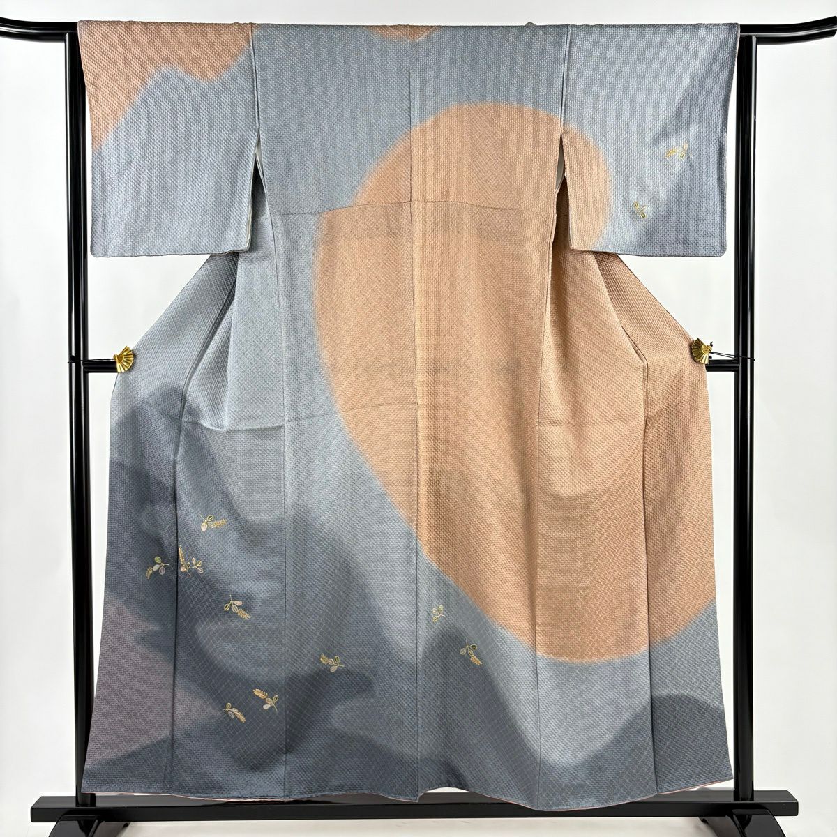 30%OFF 訪問着 身丈161cm 裄丈64.5cm M 袷 笠松 波 金糸 金彩 青灰色 正絹 秀品 K30