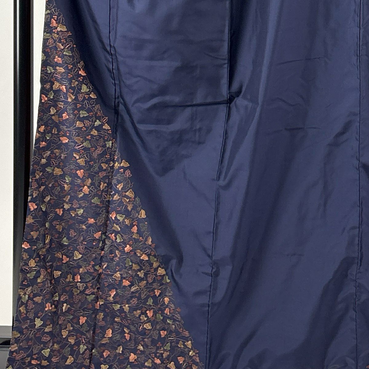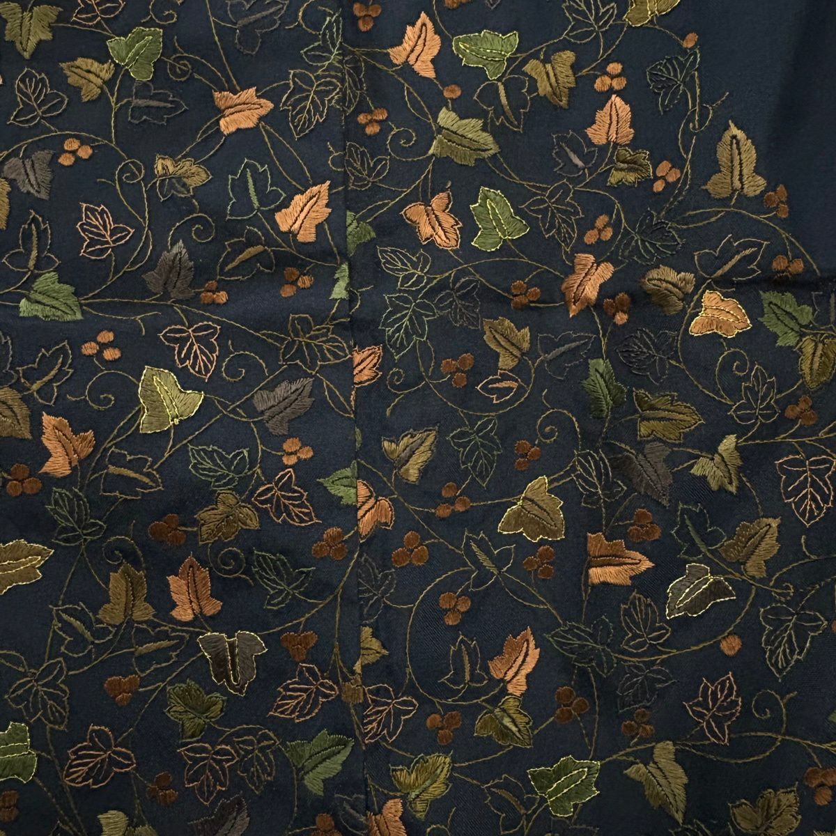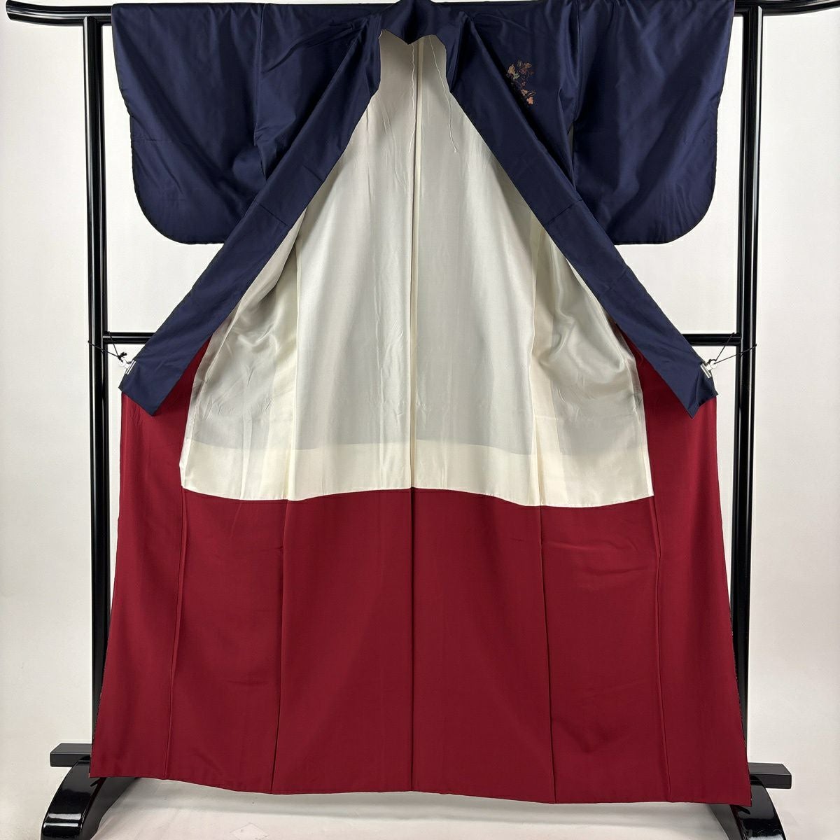 30%OFF 付下げ 身丈164cm 裄丈61cm S 袷 紬地 葉と実 金糸 刺繍 濃紺 正絹 秀品 K30
