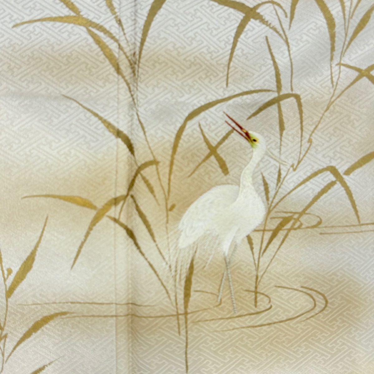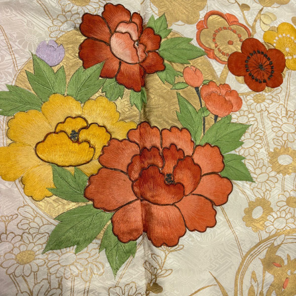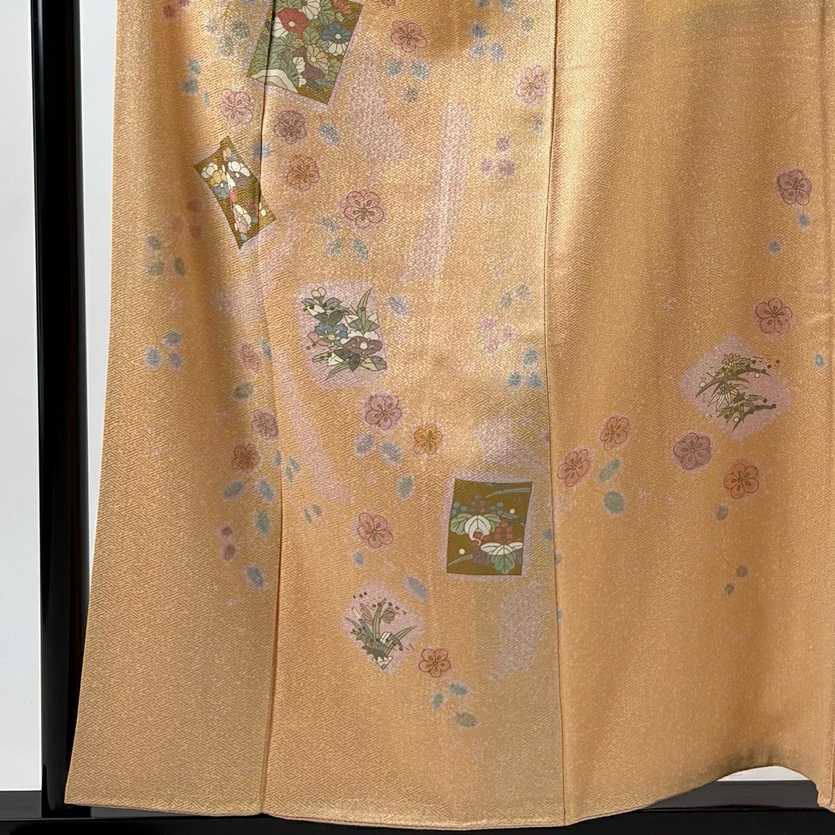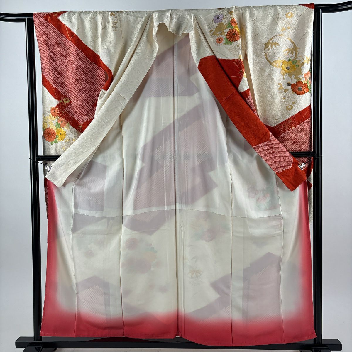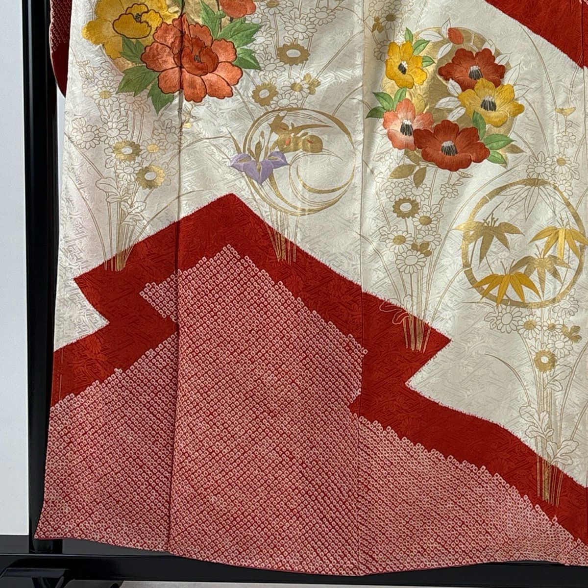 30%OFF 振袖 身丈158cm 裄丈63cm S 袷 牡丹 枝梅 金糸 絞り クリーム 正絹 秀品 K30
