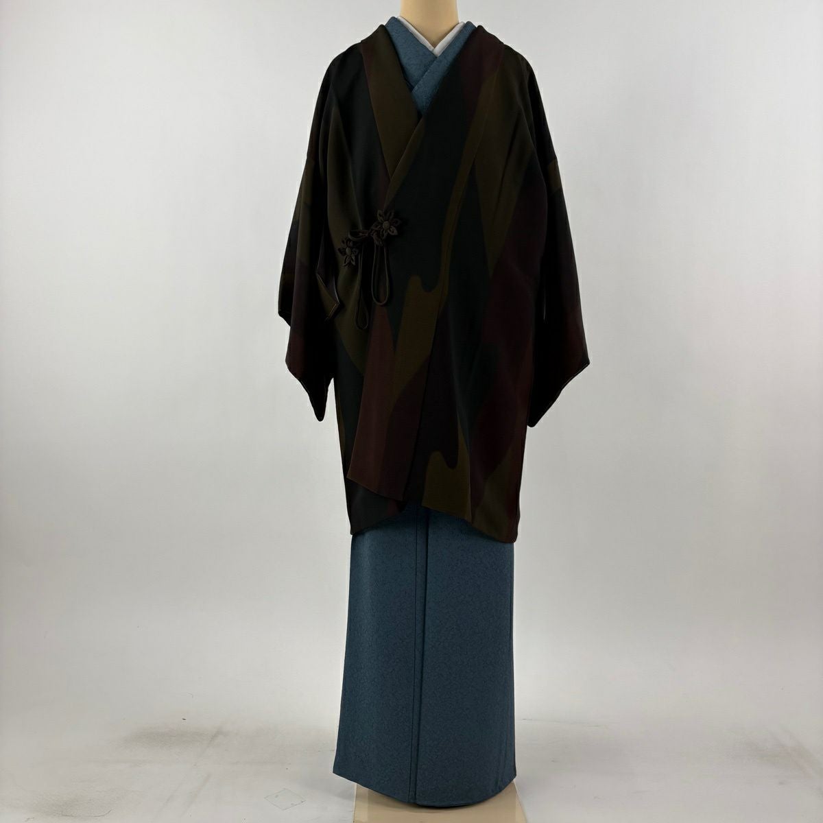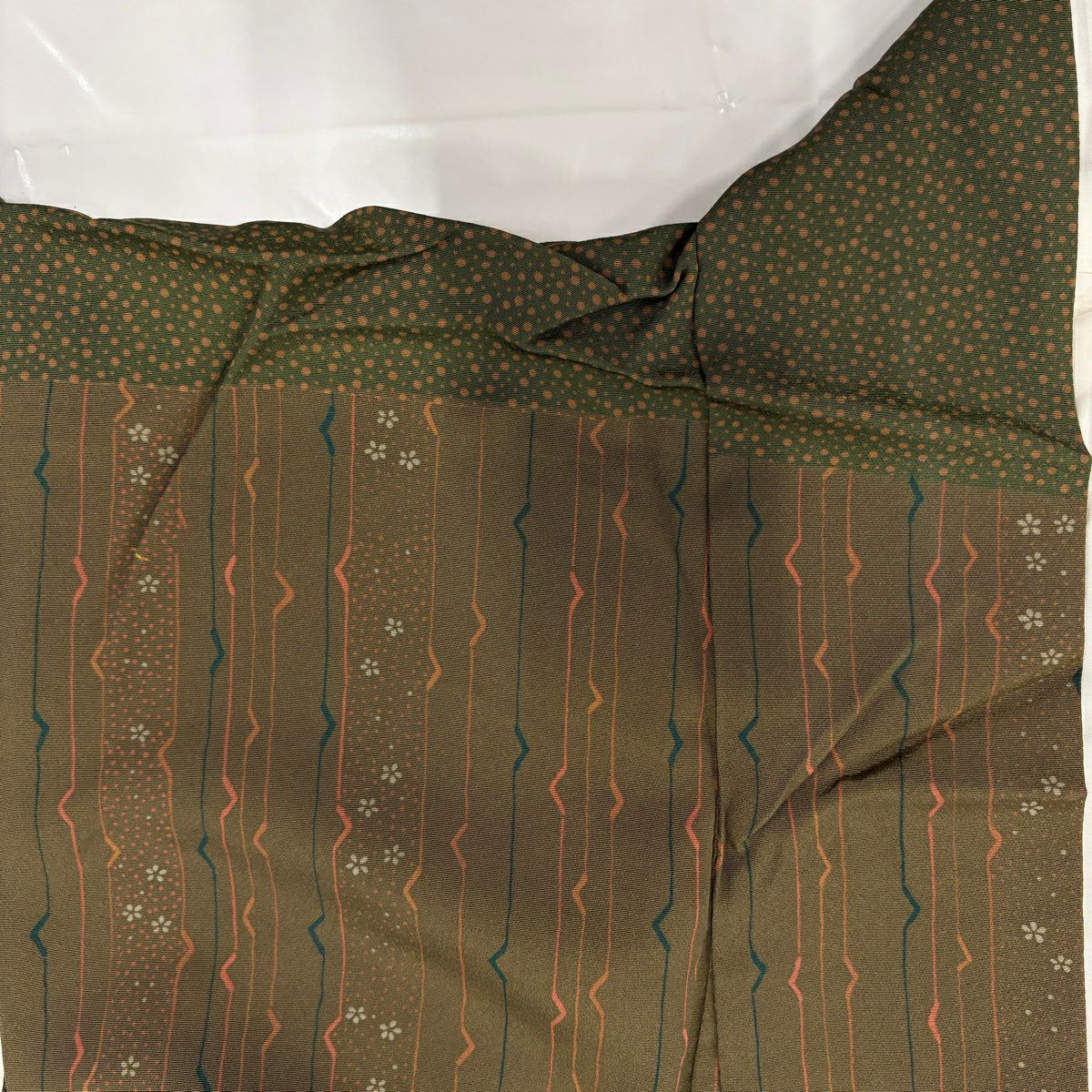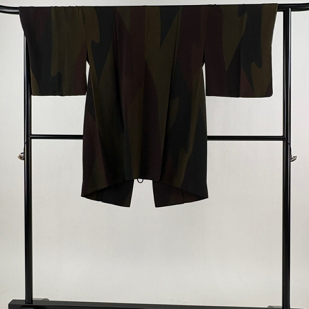 30%OFF 【美品】 道中着 身丈93cm 裄丈65cm M 和装コート 幾何学 茶緑色 正絹 秀品 K30