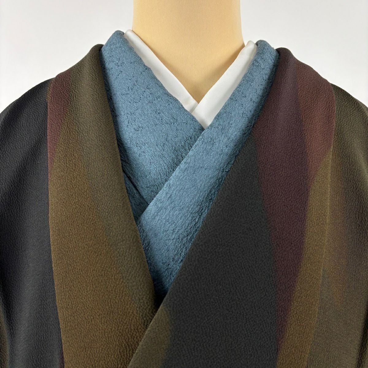 30%OFF 男着物 身丈140.5cm 裄丈66cm S 袷 アンサンブル 紬 茶緑色 正絹 秀品 K30