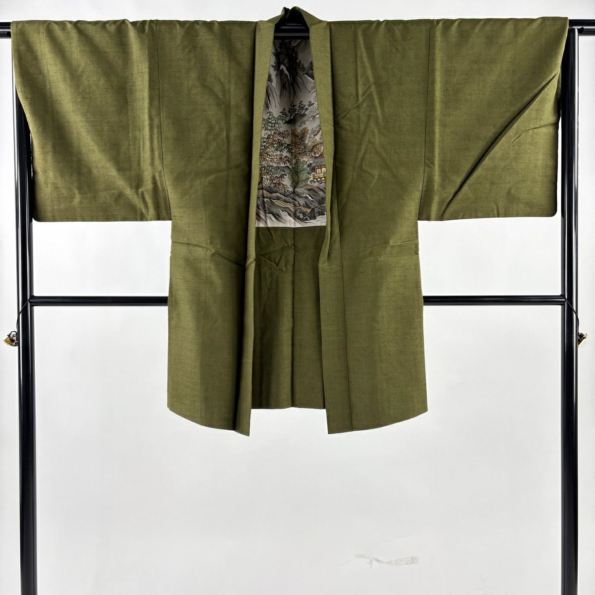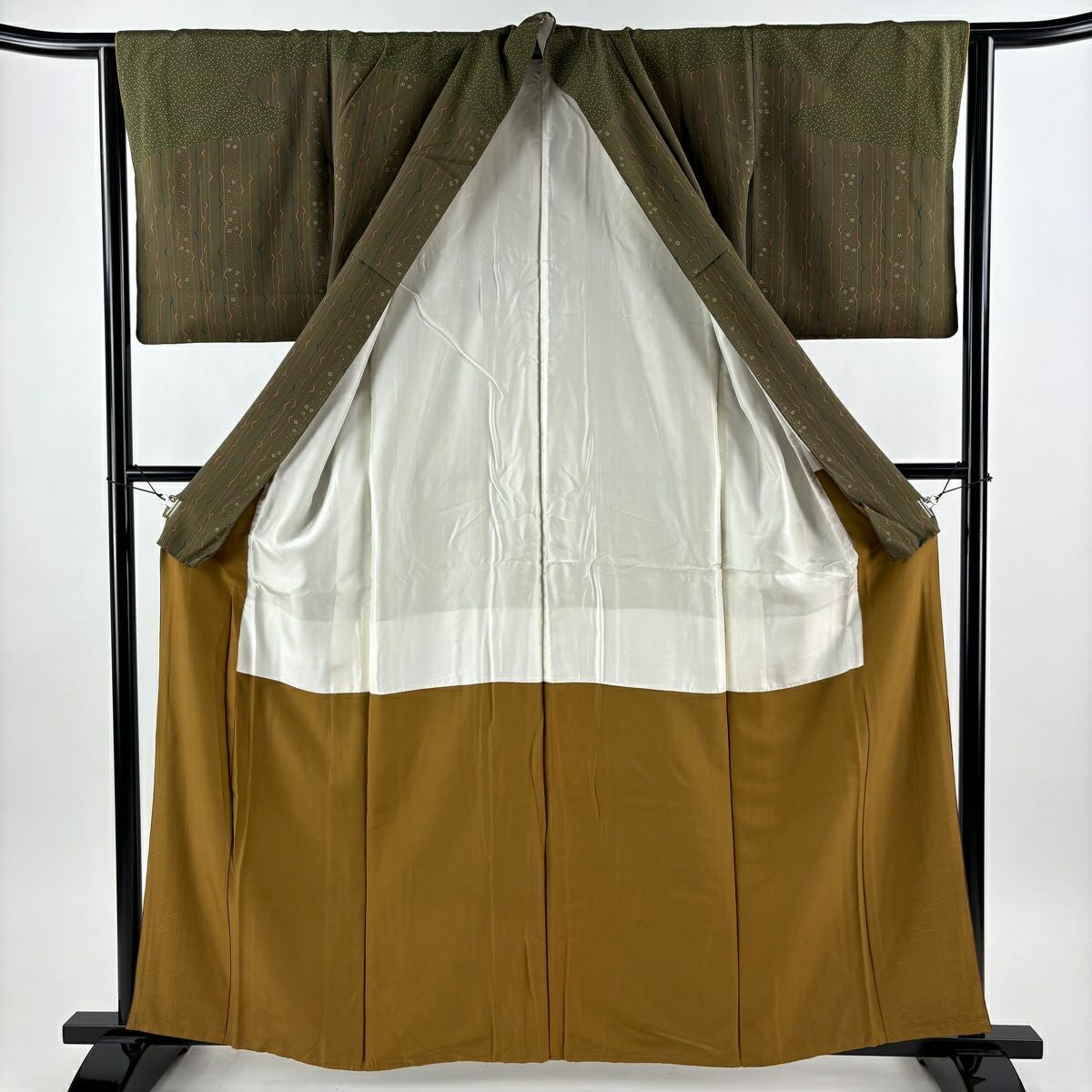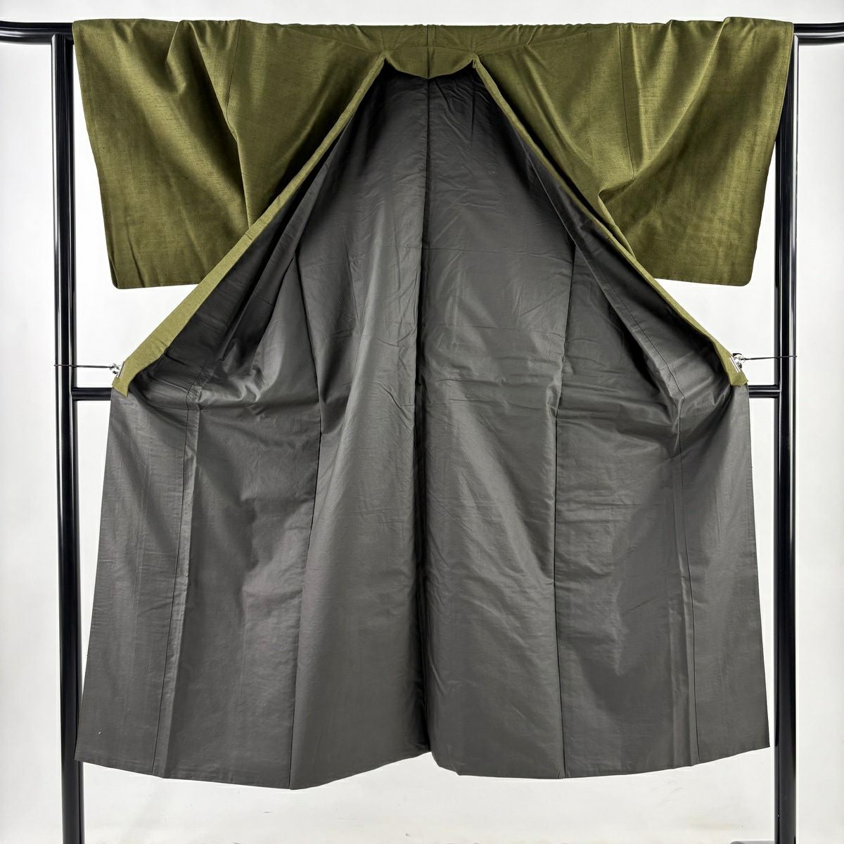 30%OFF 色無地 身丈156.5cm 裄丈65cm M 袷 奄美大島泥染 証紙あり 鶯色 正絹 秀品 K30
