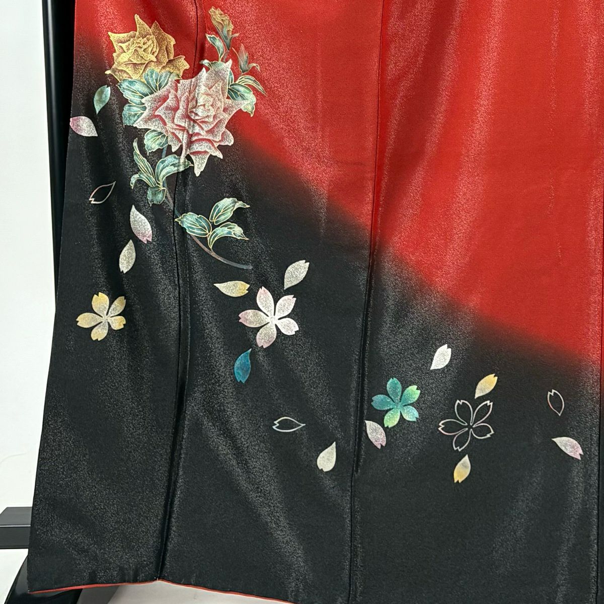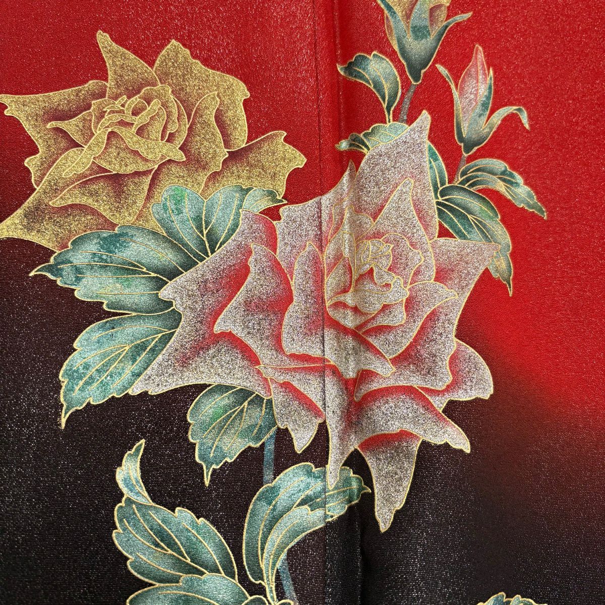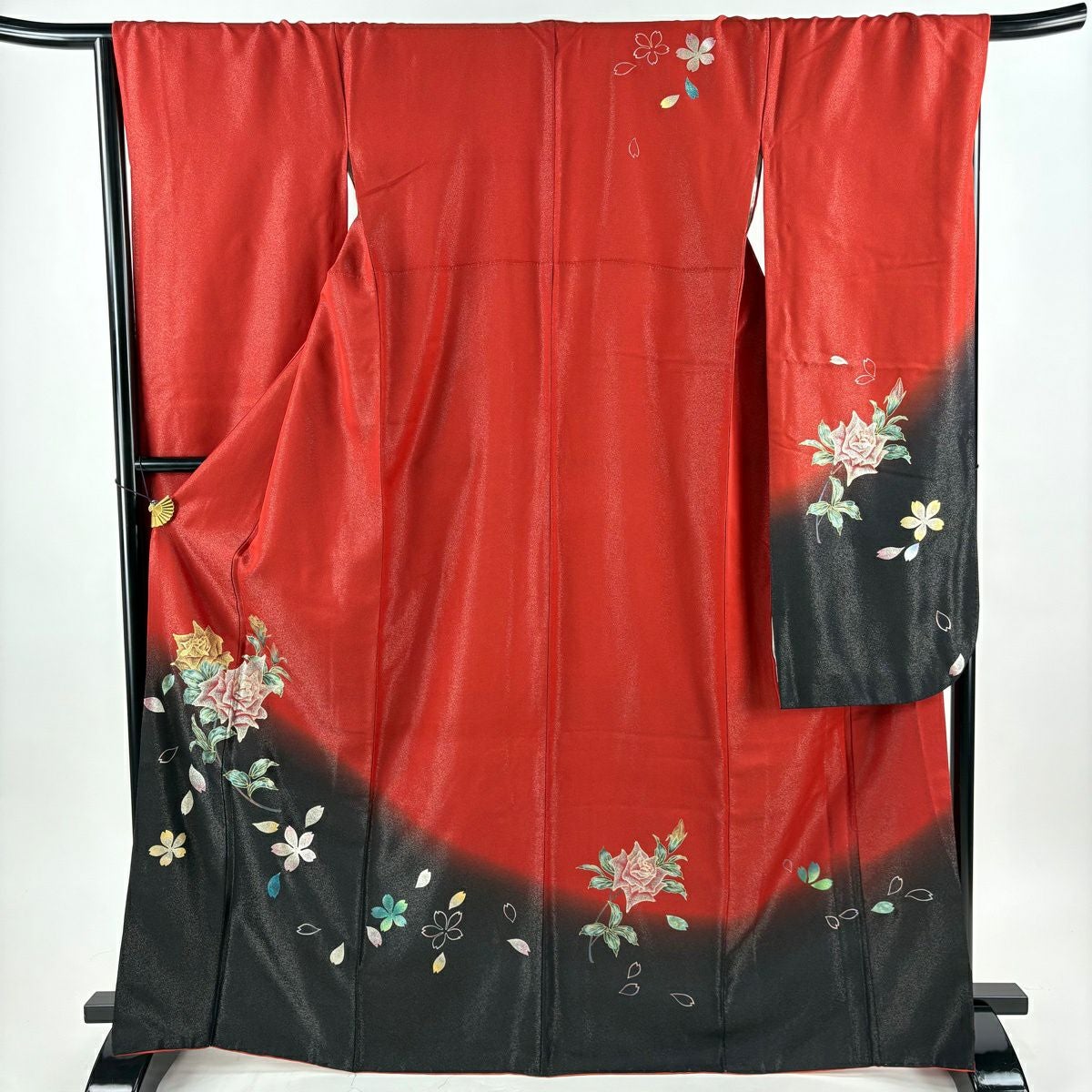 30%OFF 振袖 身丈168.5cm 裄丈67.5cm L 袷 薔薇 桜 銀通し 金銀彩 赤 正絹 秀品 K30