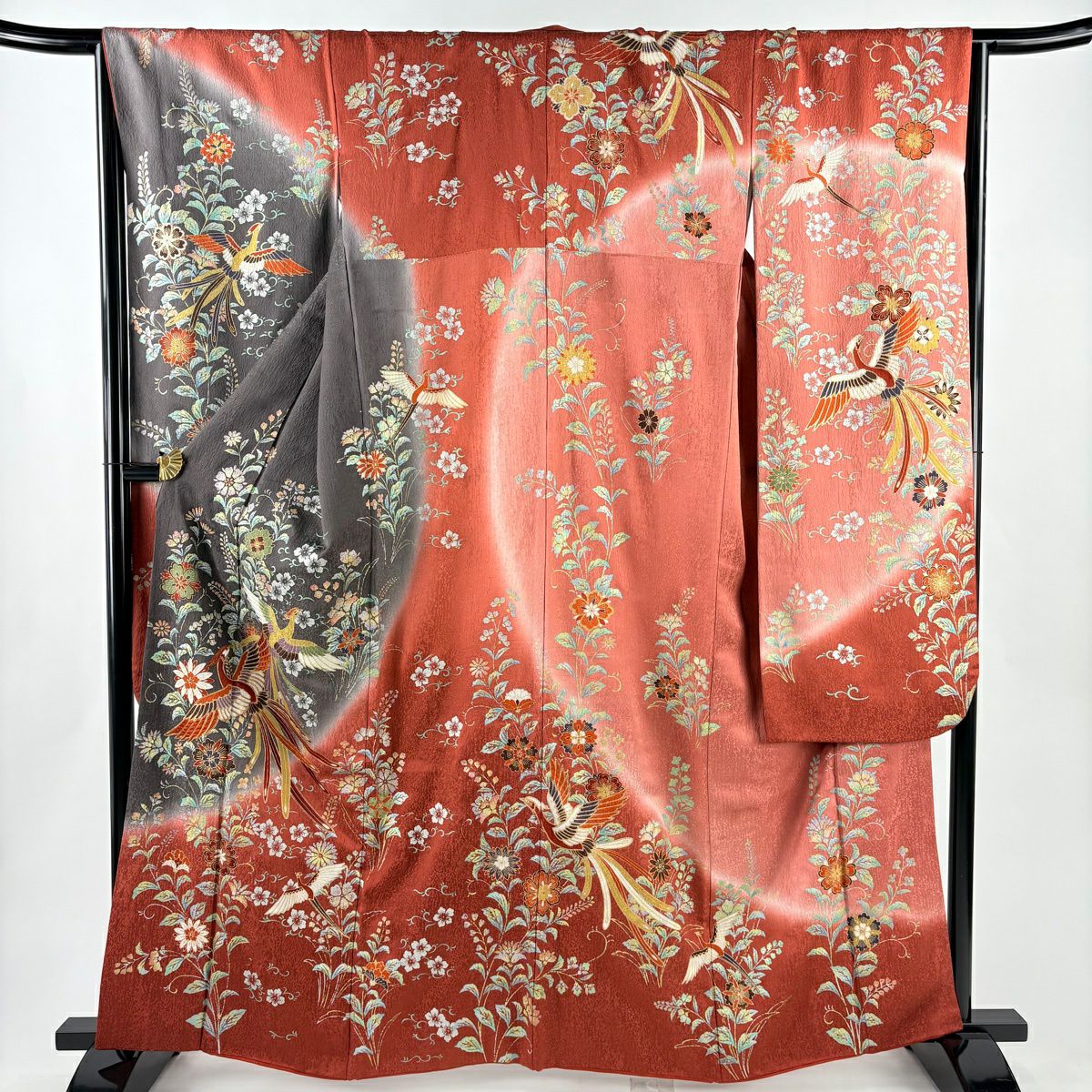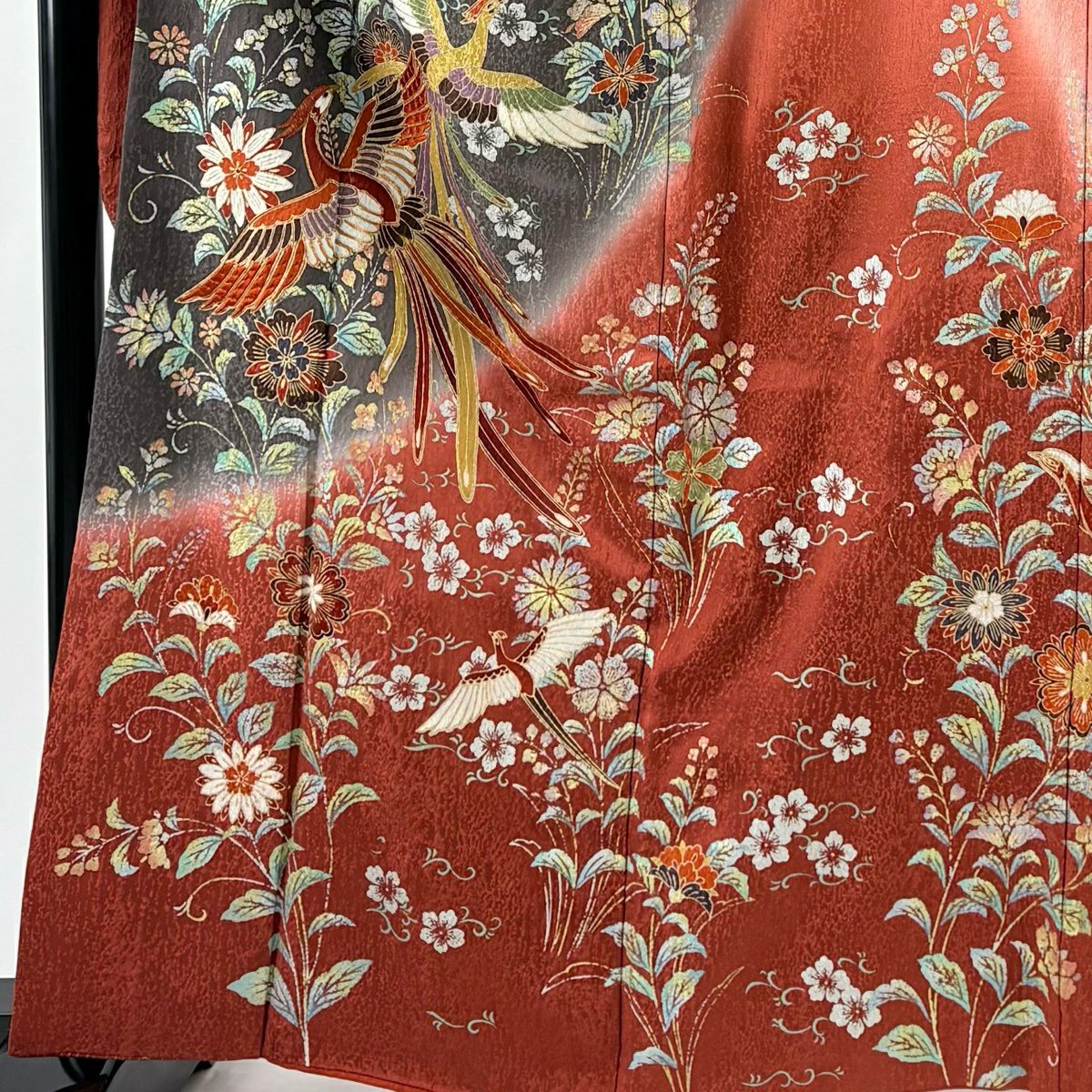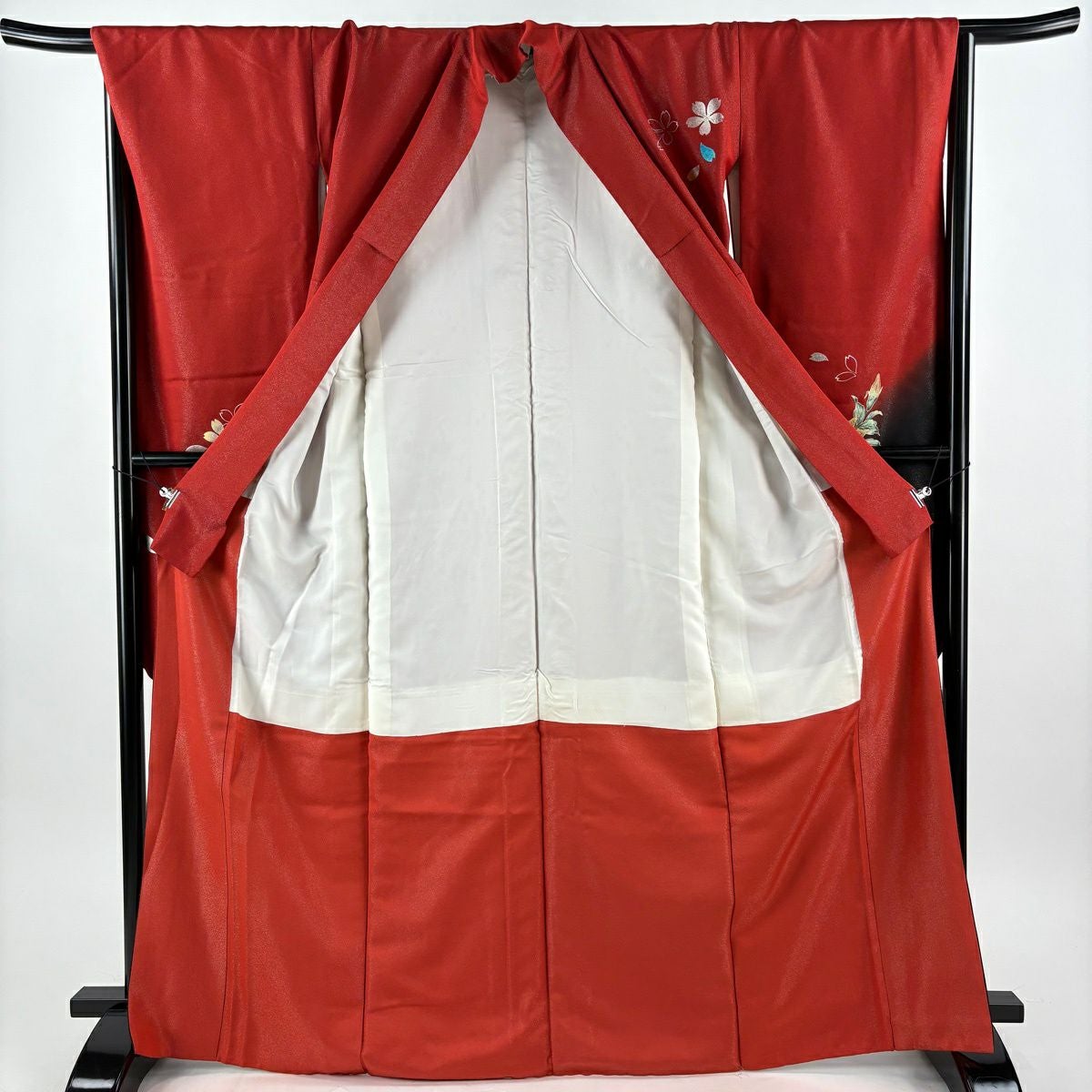 30%OFF 振袖 身丈160cm 裄丈66.5cm M 袷 草花 雪芝 金彩 ぼかし 赤 正絹 秀品 K30