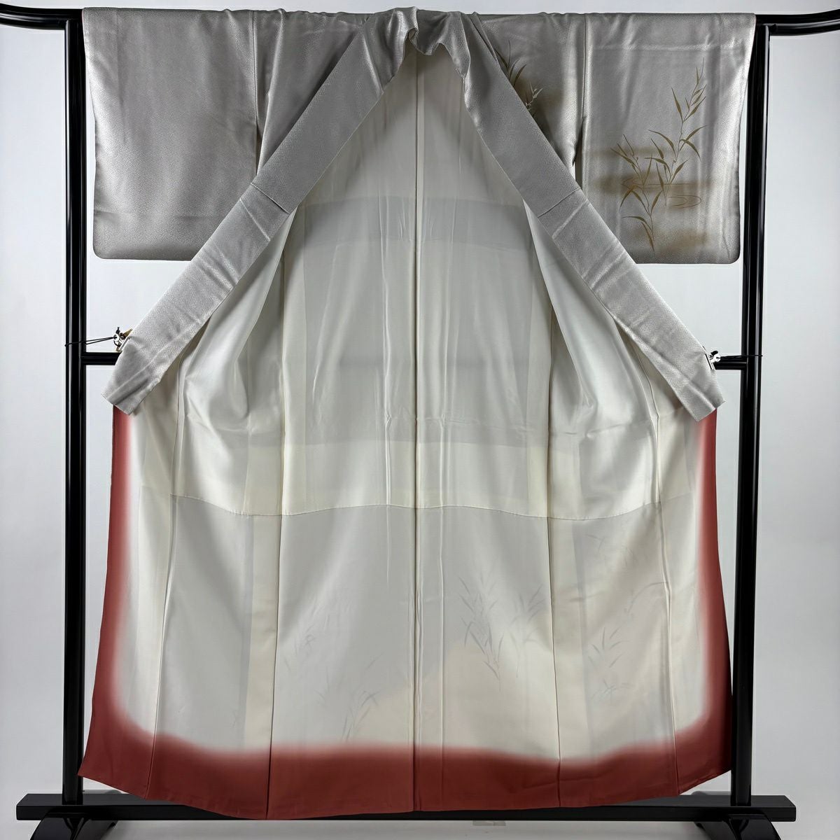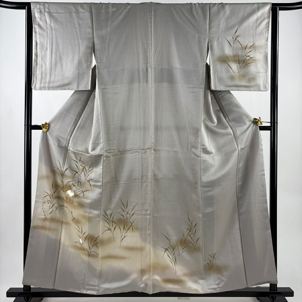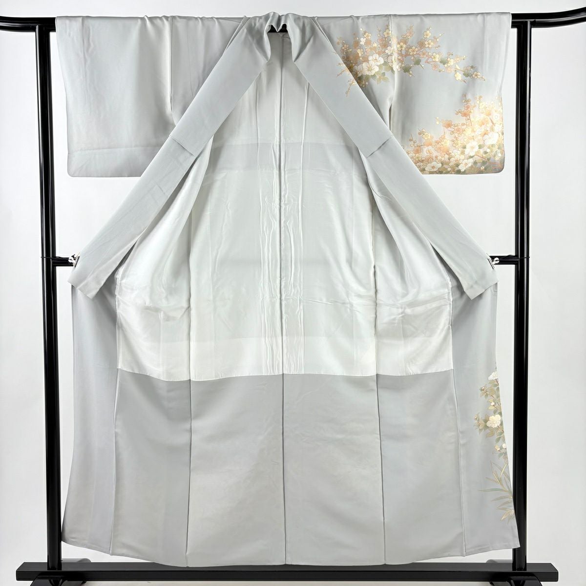 30%OFF 訪問着 身丈155.5cm 裄丈62.5cm S 袷 萩 流水 金糸 刺繍 灰色 正絹 秀品 K30
