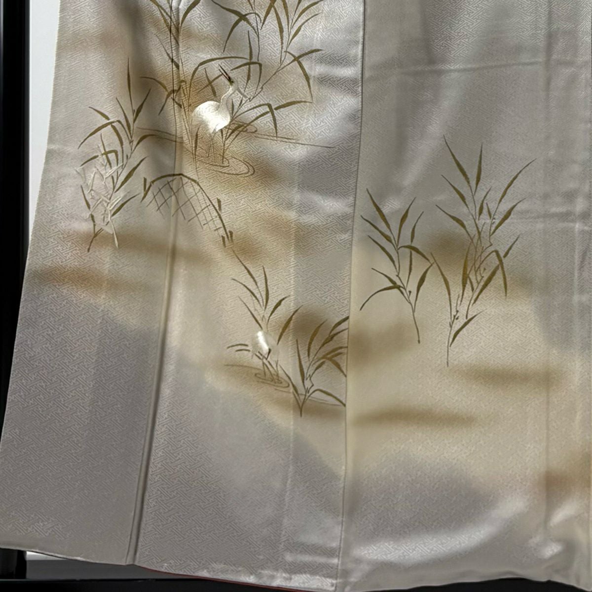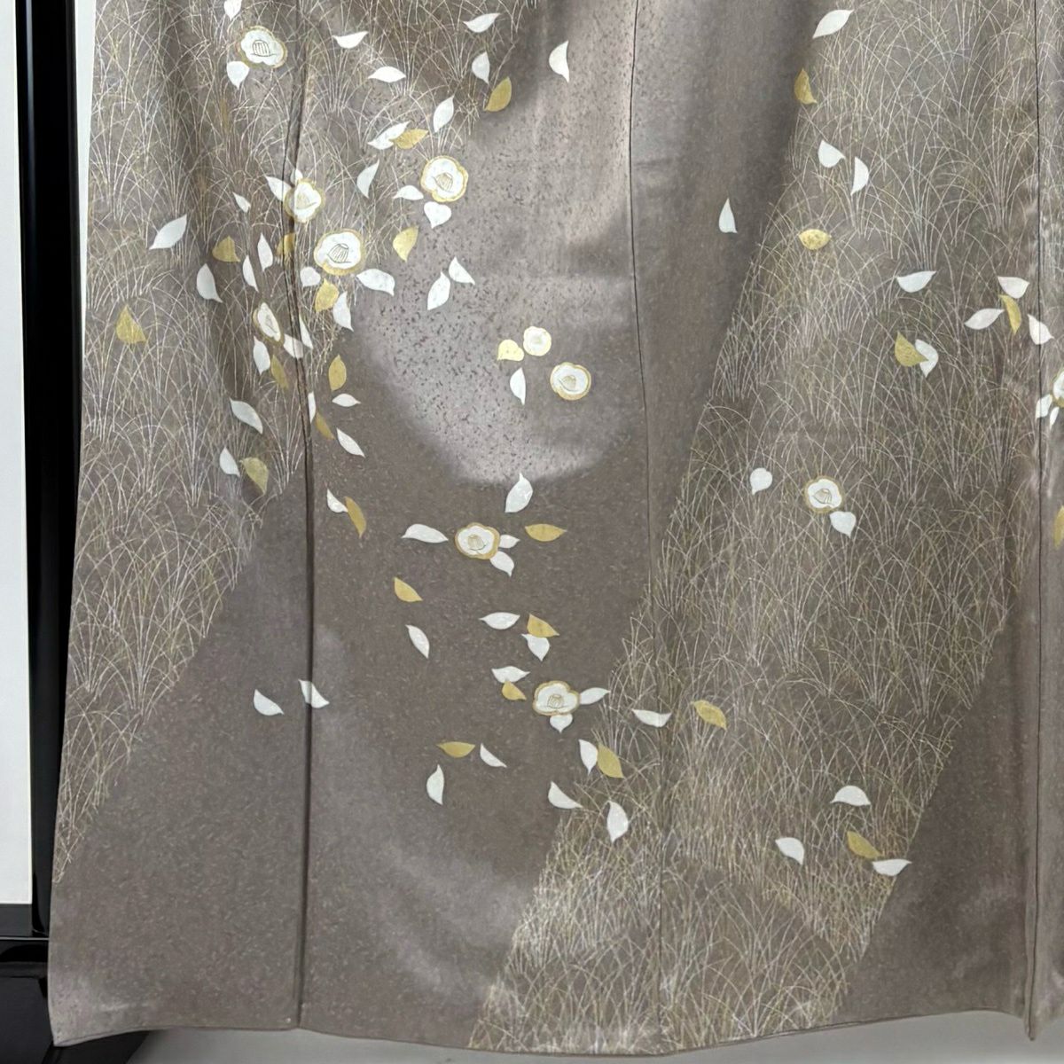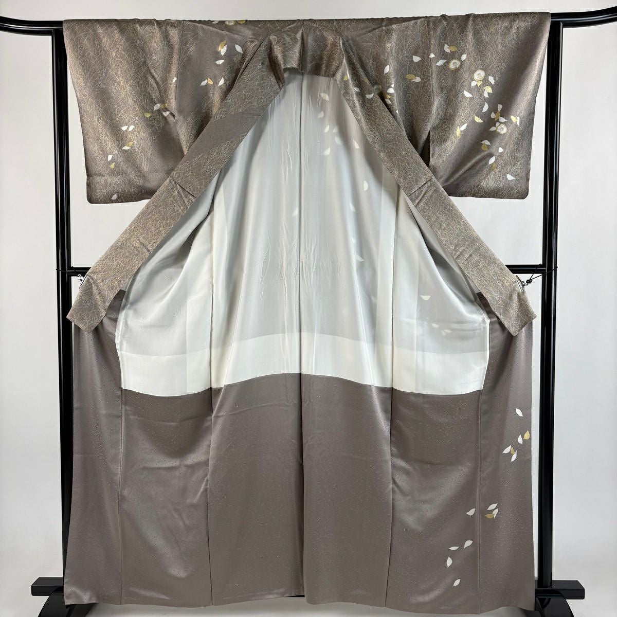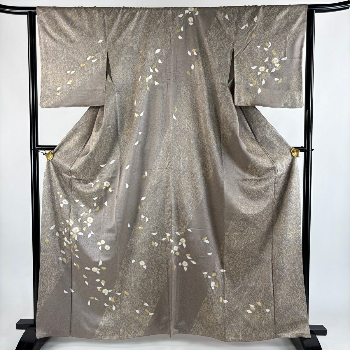 30%OFF 訪問着 身丈155.5cm 裄丈62.5cm S 袷 萩 流水 金糸 刺繍 灰色 正絹 秀品 K30