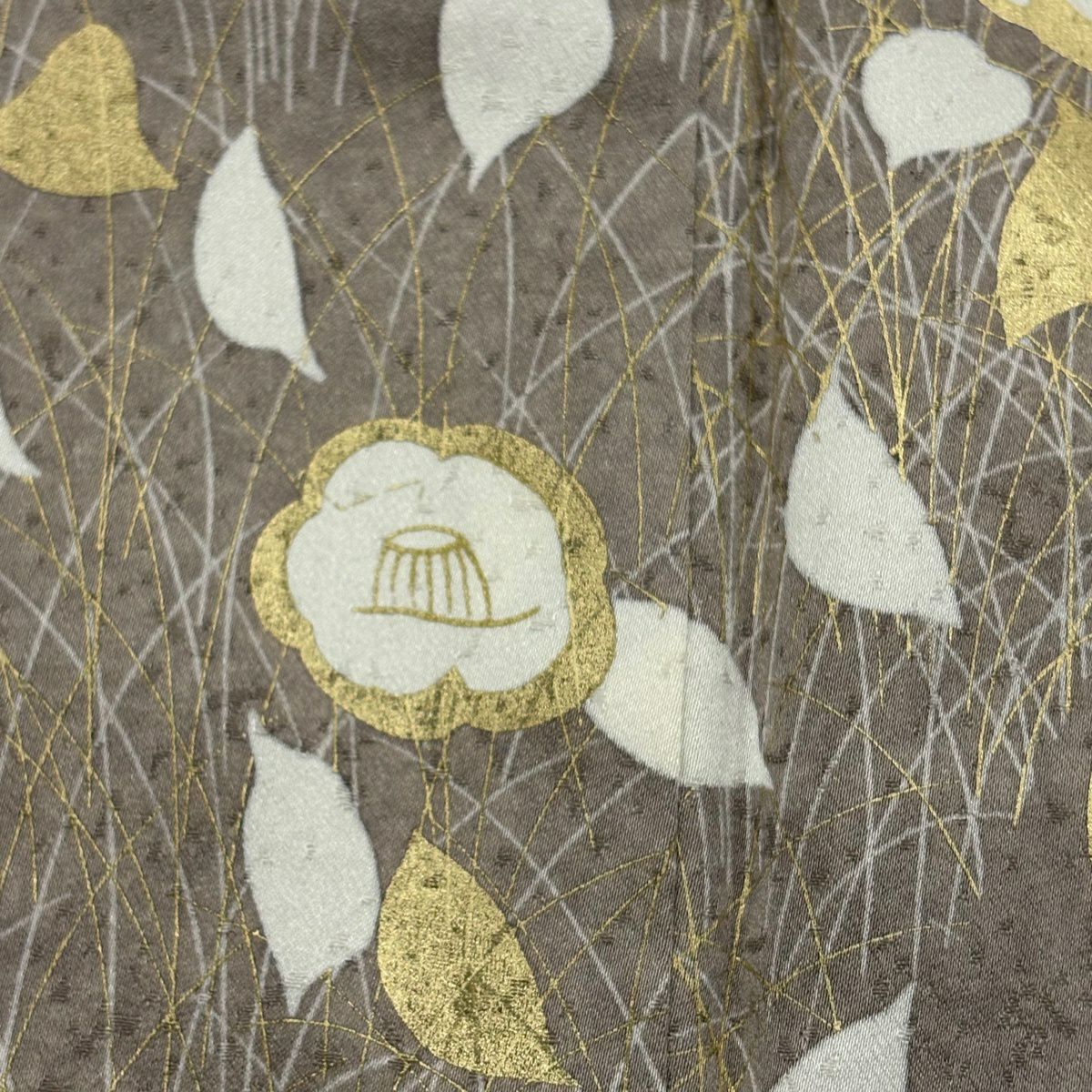 30%OFF 【美品】 紬 身丈162.5cm 裄丈63.5cm S 袷 麻の葉 草花 焦茶色 正絹 秀品 K30