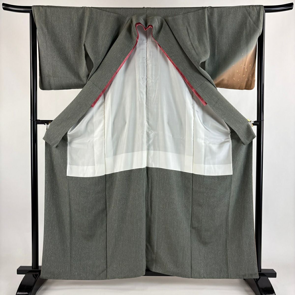 30%OFF 訪問着 身丈155cm 裄丈62.5cm S 袷 短冊 草花 金糸 刺繍 灰緑 正絹 秀品 K30