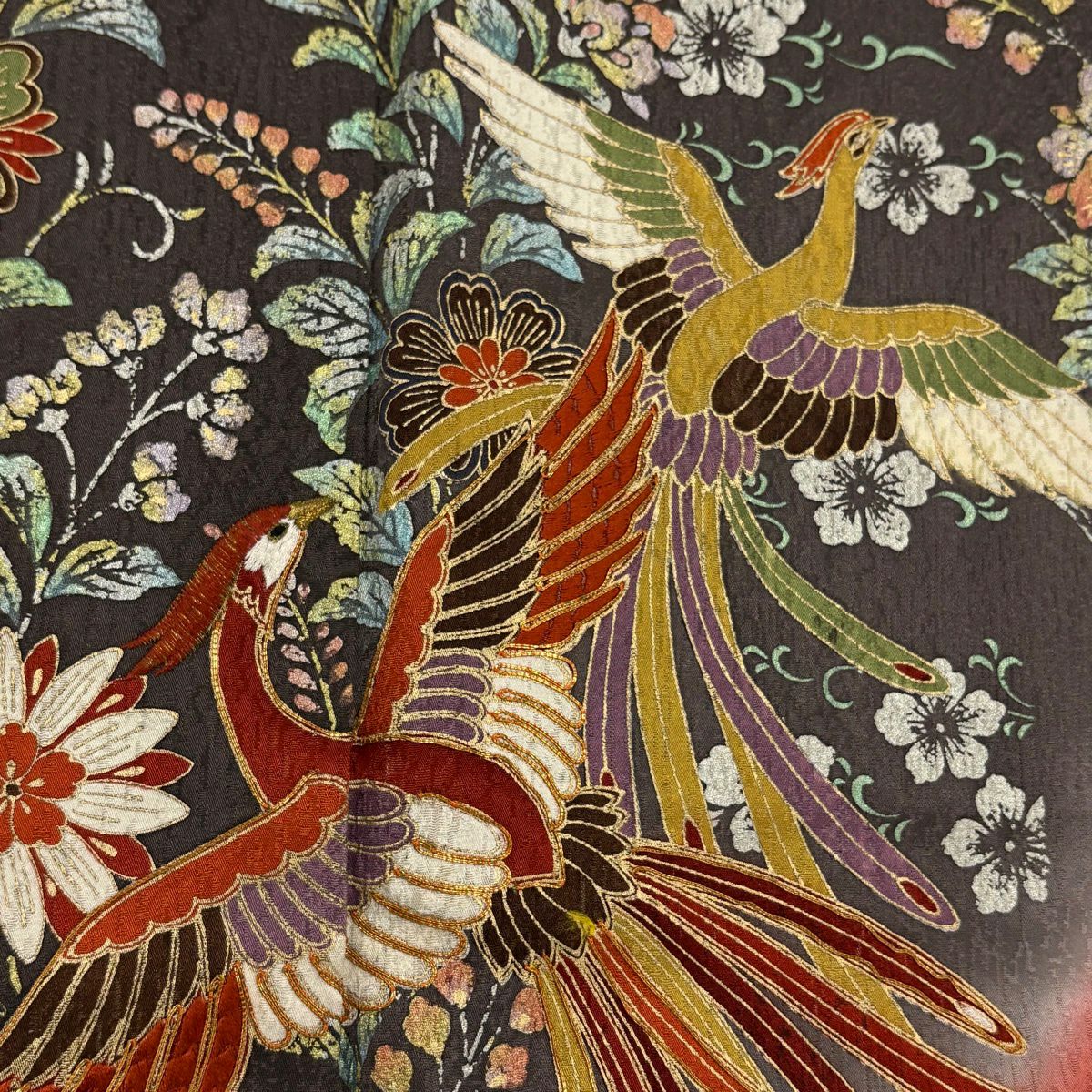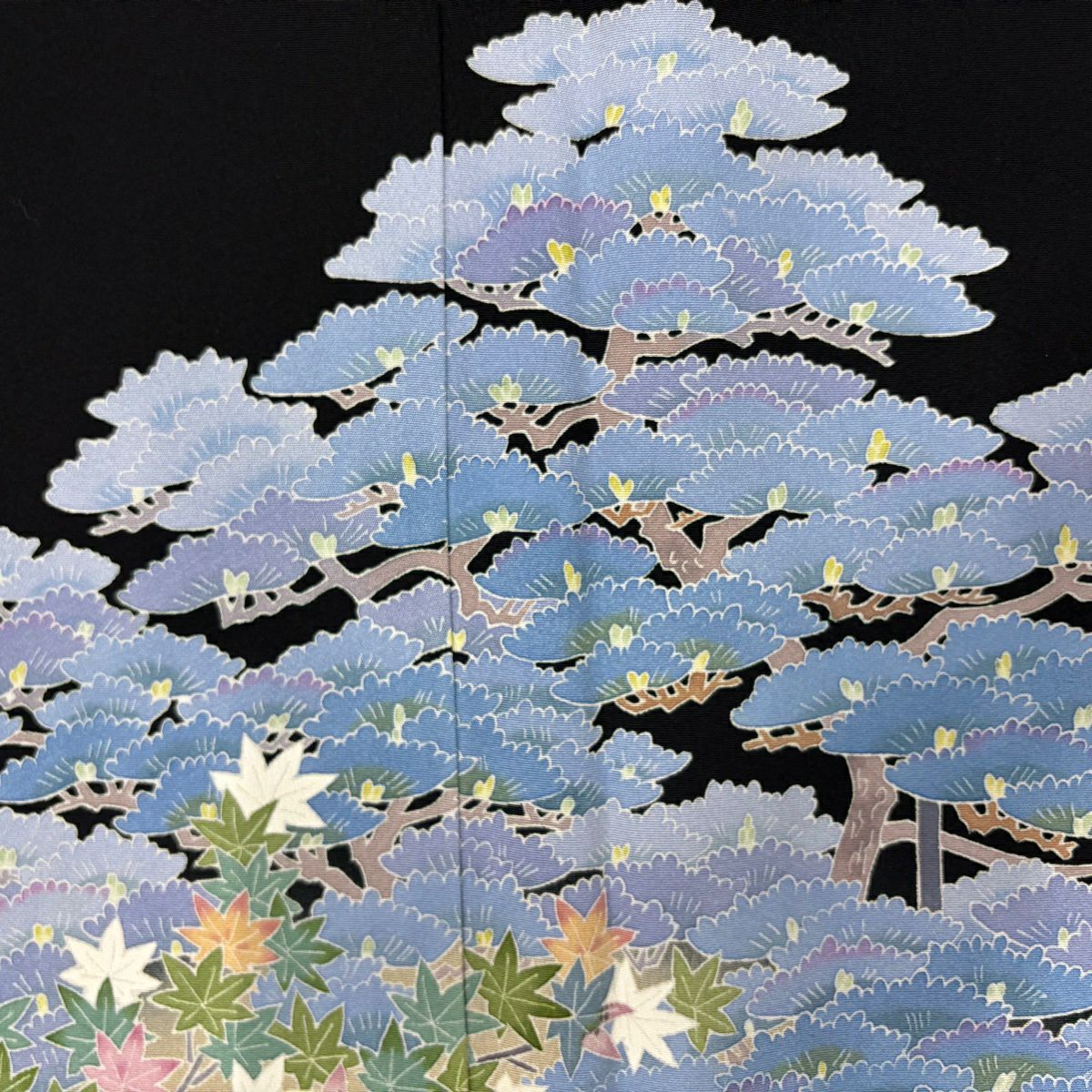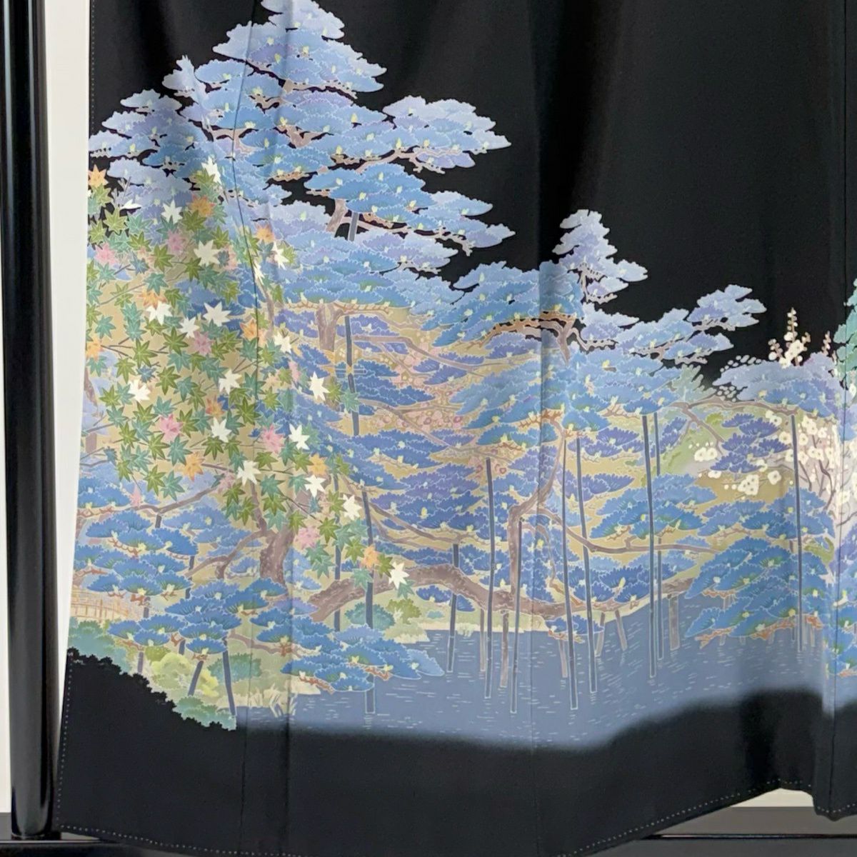 30%OFF 黒留袖 身丈155cm 裄丈62.5cm S 袷 鈴乃屋 落款あり 笠 草花 黒 正絹 秀品 K30