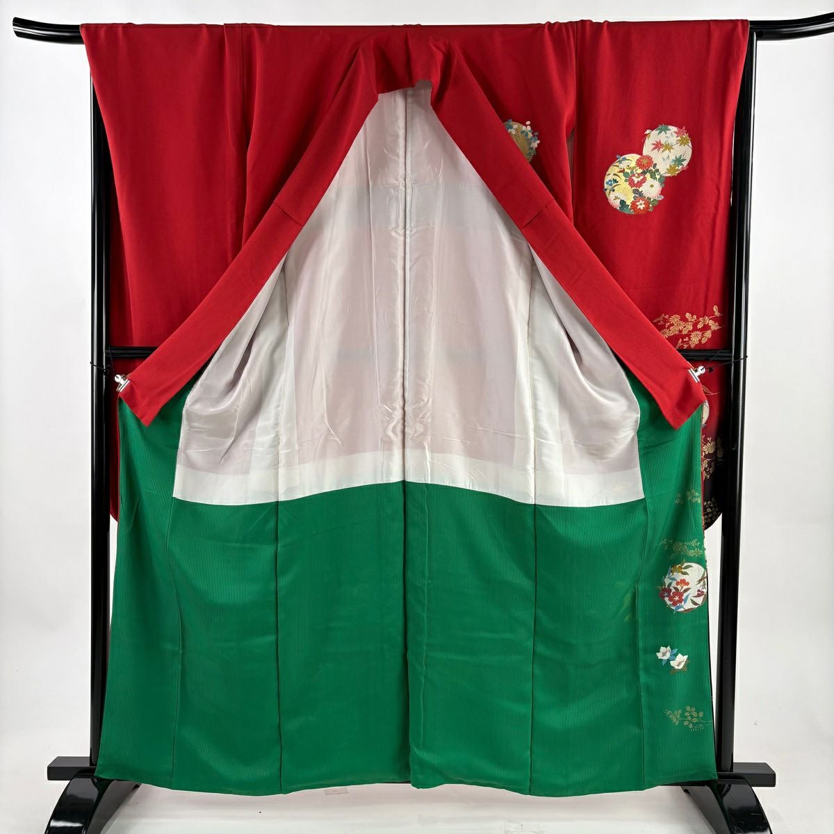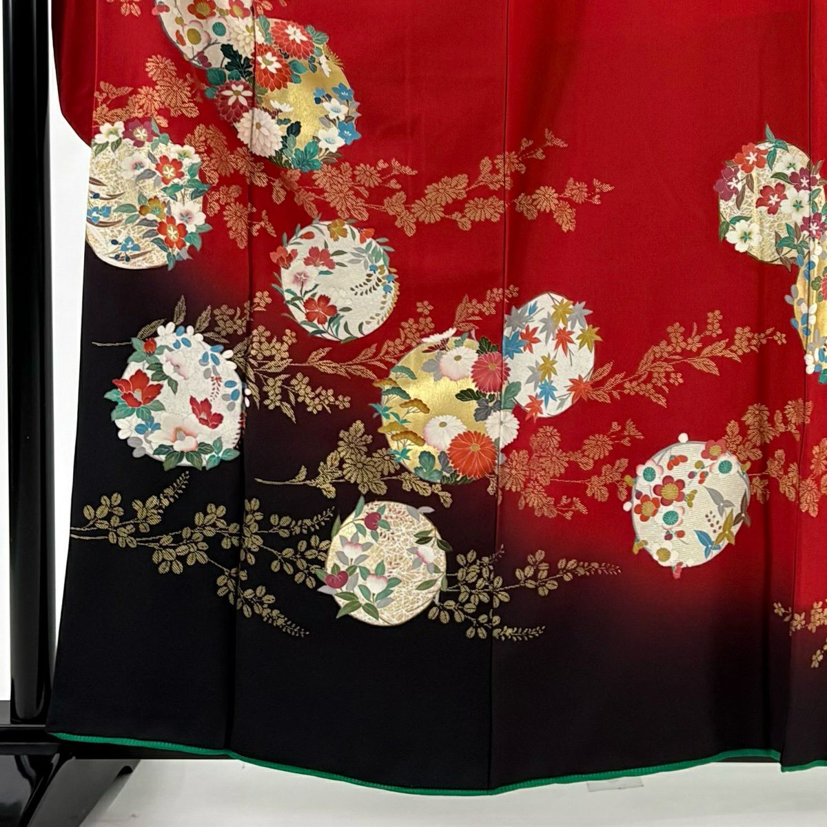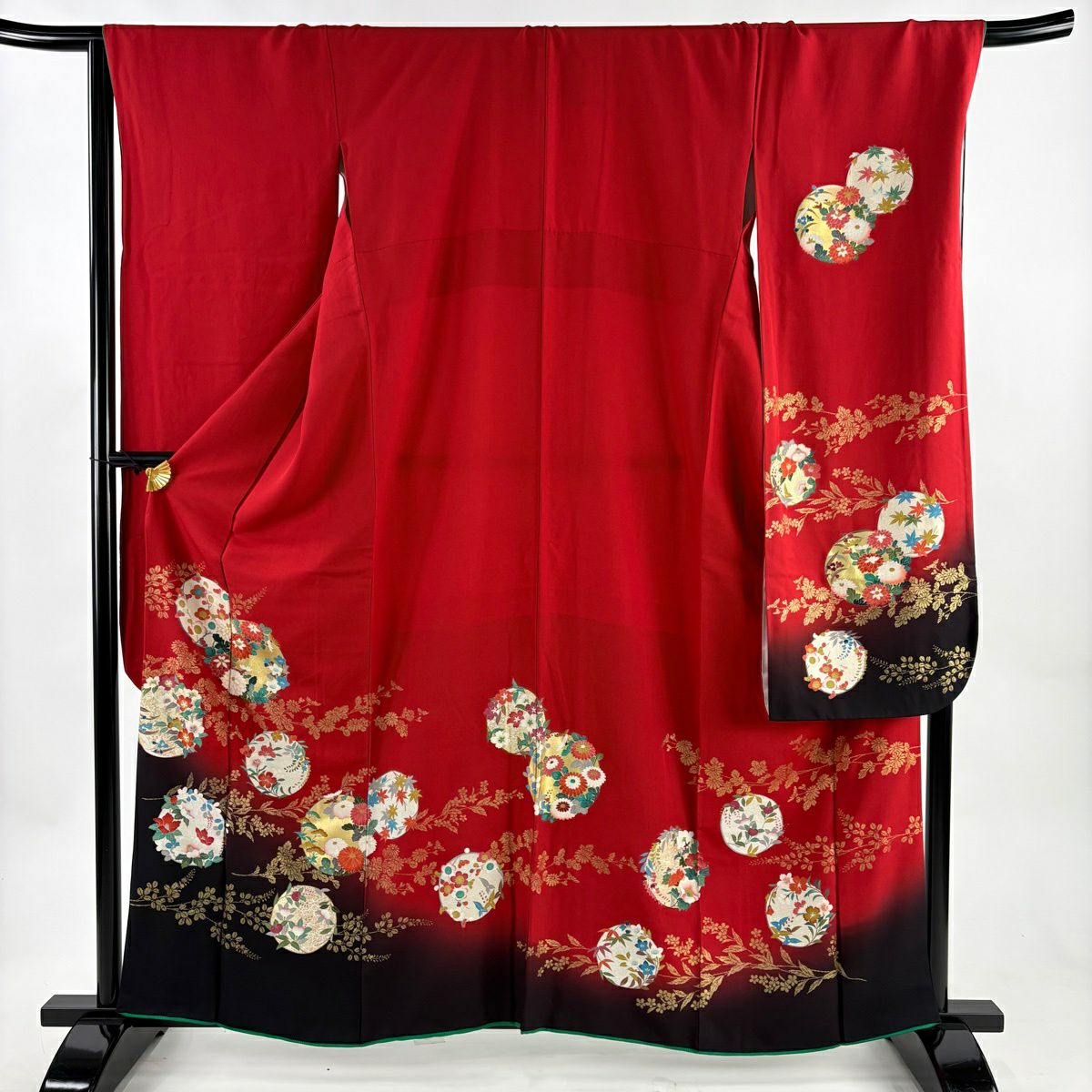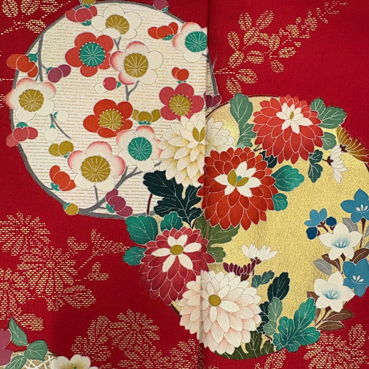 30%OFF 振袖 身丈162cm 裄丈68.5cm L 袷 花丸文 菊 金彩 ぼかし 赤 正絹 秀品 K30