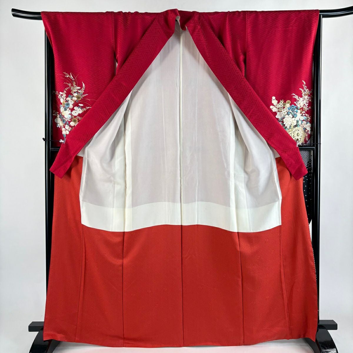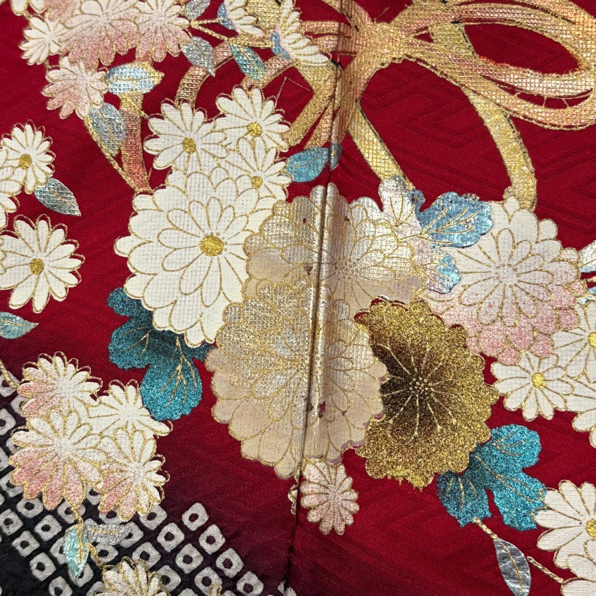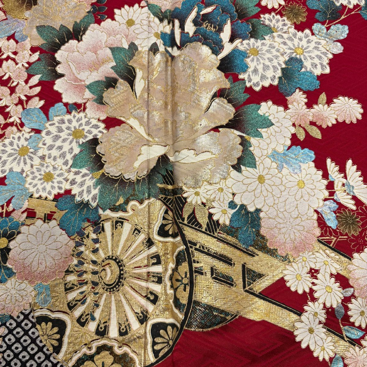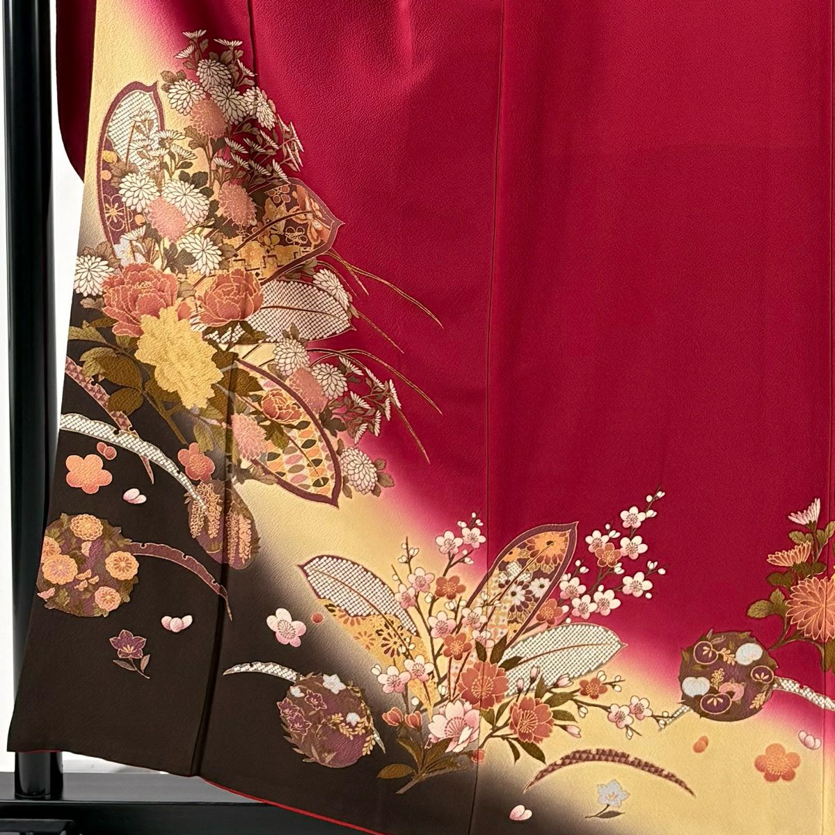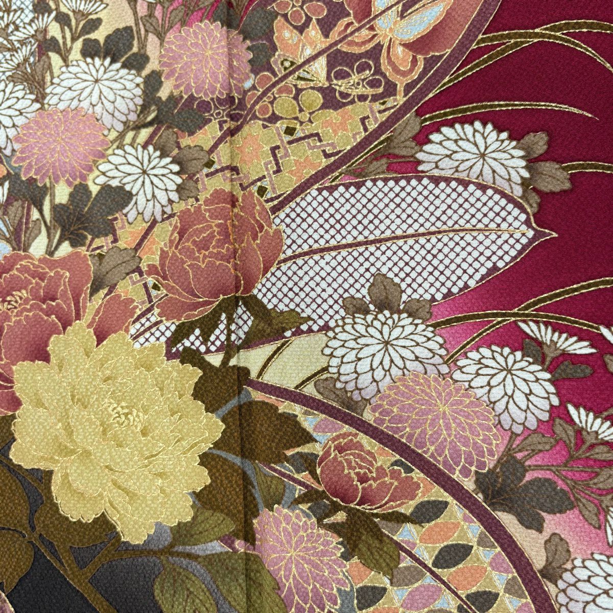30%OFF 振袖 身丈162cm 裄丈68.5cm L 袷 花丸文 菊 金彩 ぼかし 赤 正絹 秀品 K30