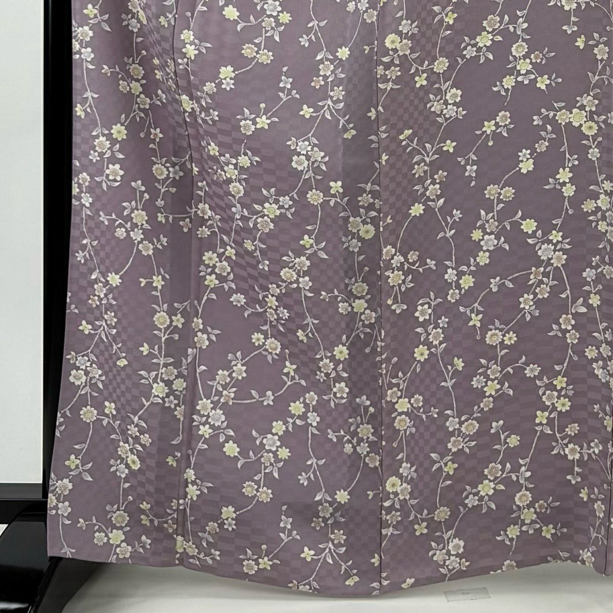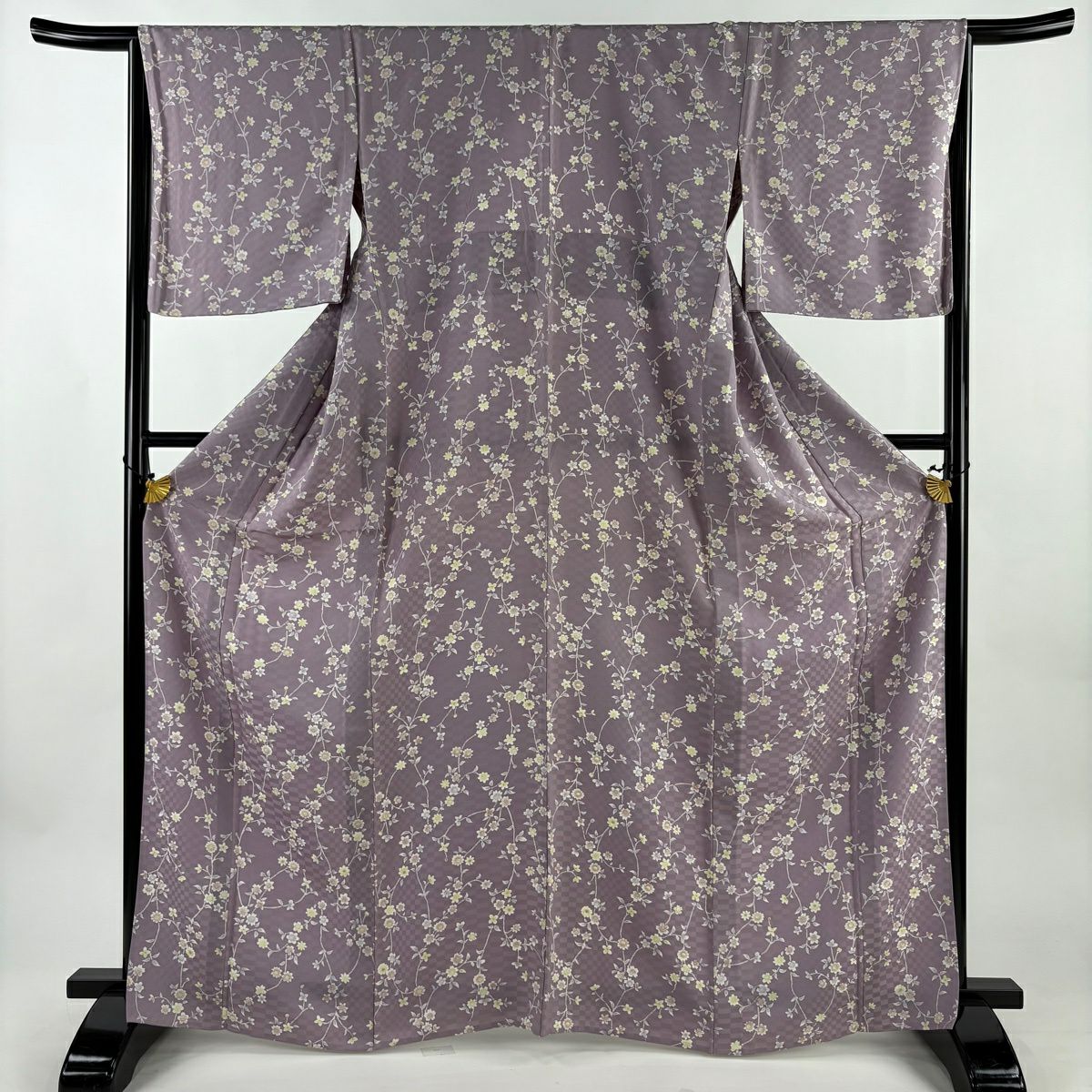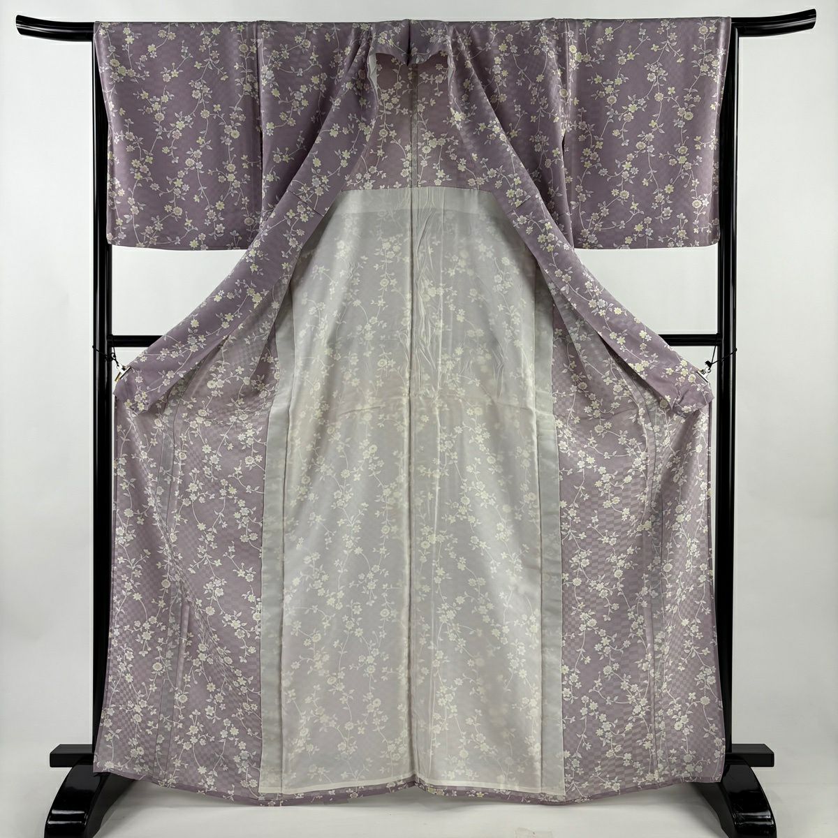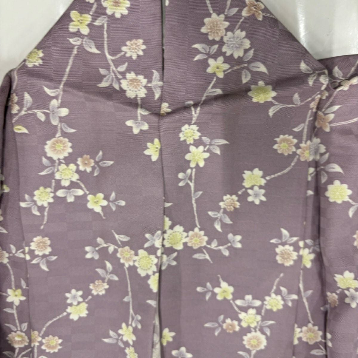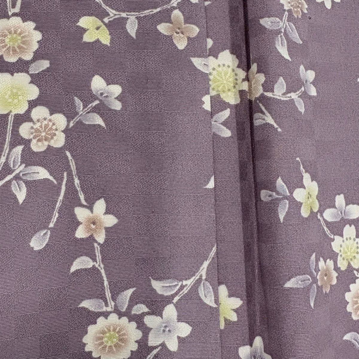 30%OFF 【美品】 小紋 身丈166.5cm 裄丈65.5cm M 単衣 草花 地紋 薄紫 正絹 秀品 K30
