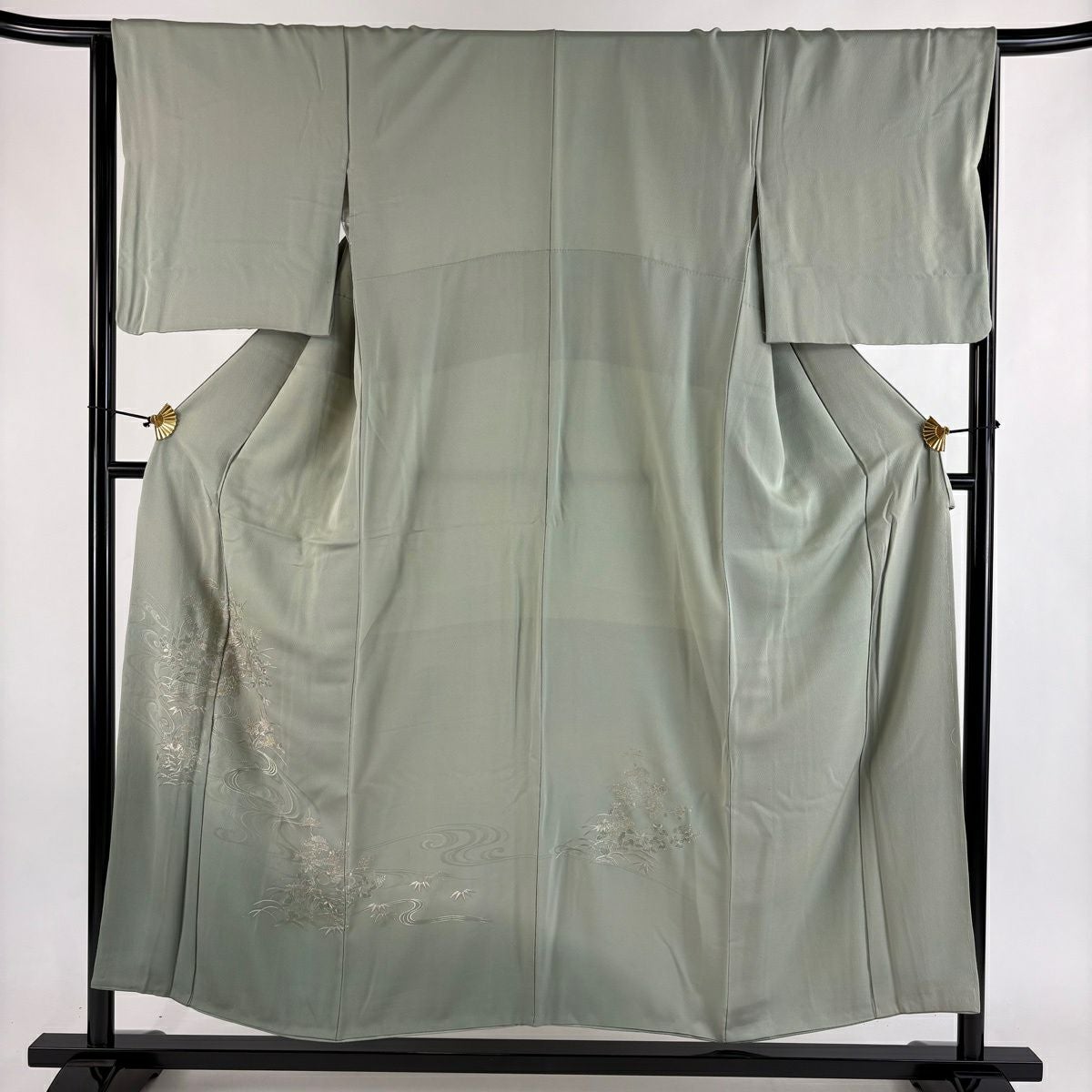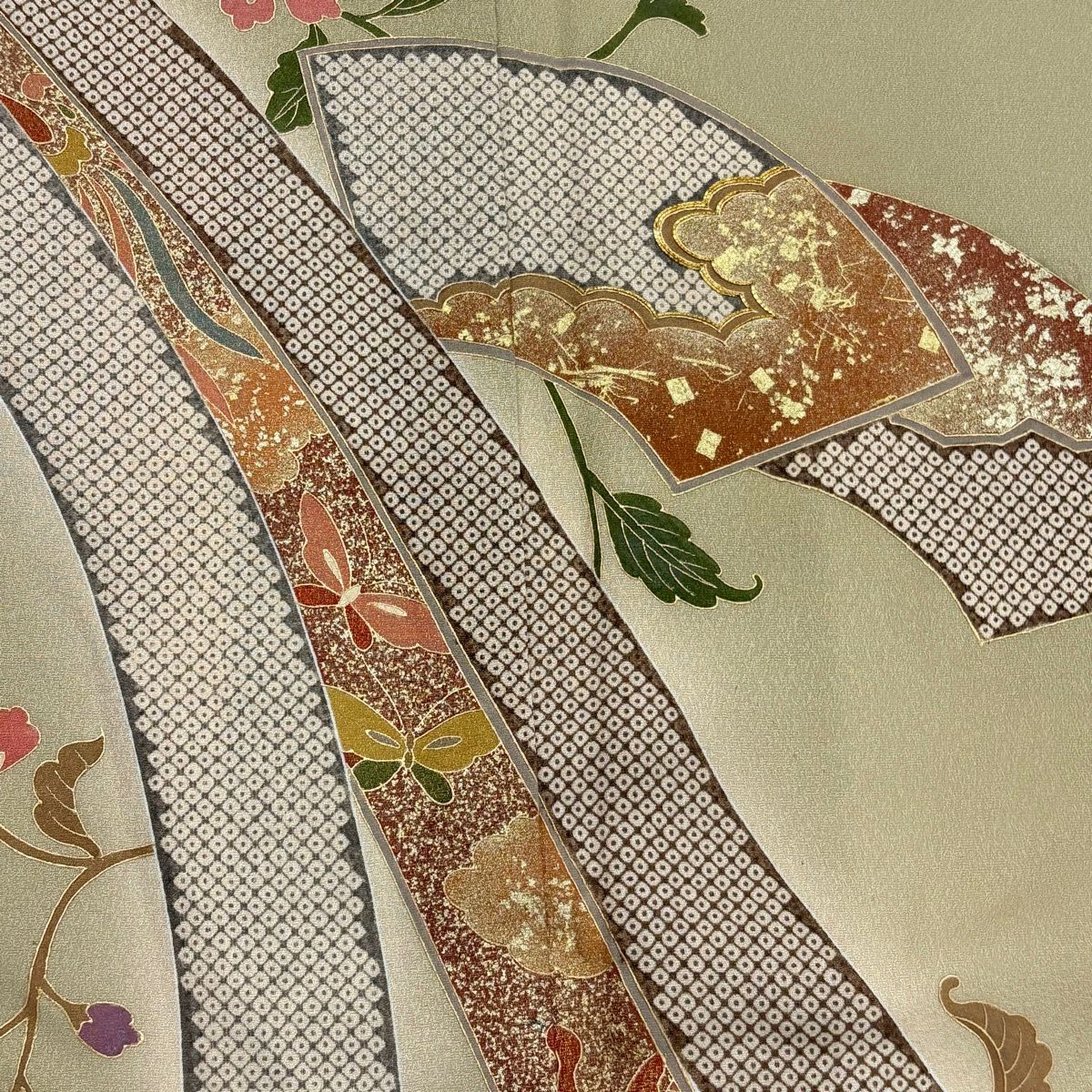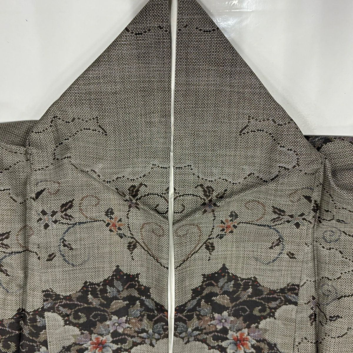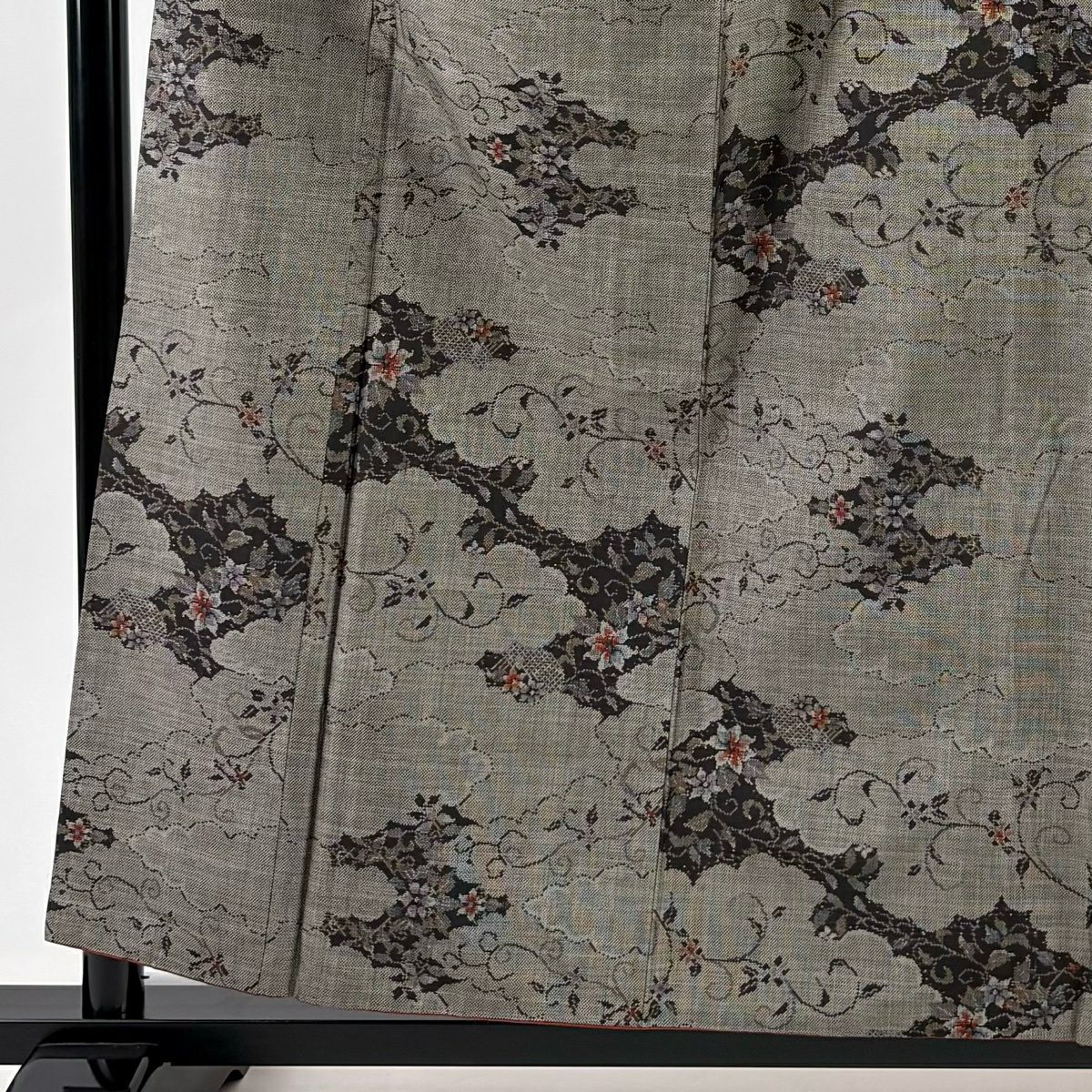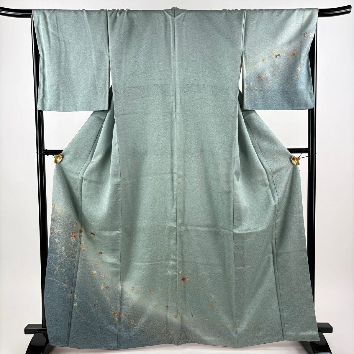 30%OFF 訪問着 身丈155.5cm 裄丈64cm M 袷 扇面 萩 刺繍 金彩 灰色 正絹 秀品 K30