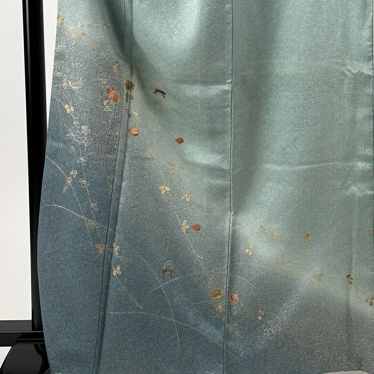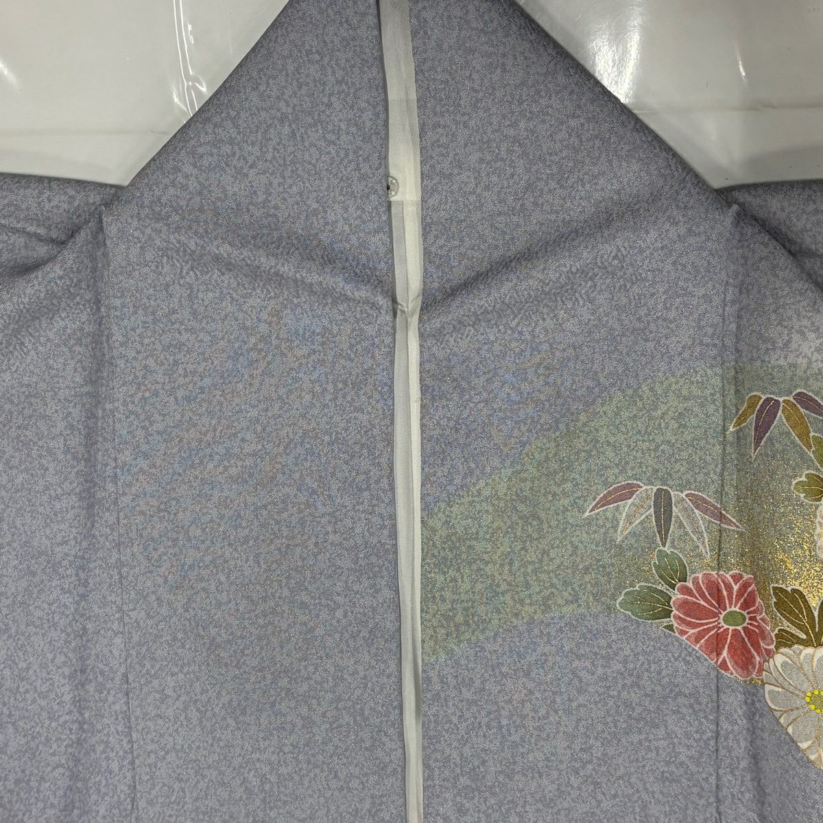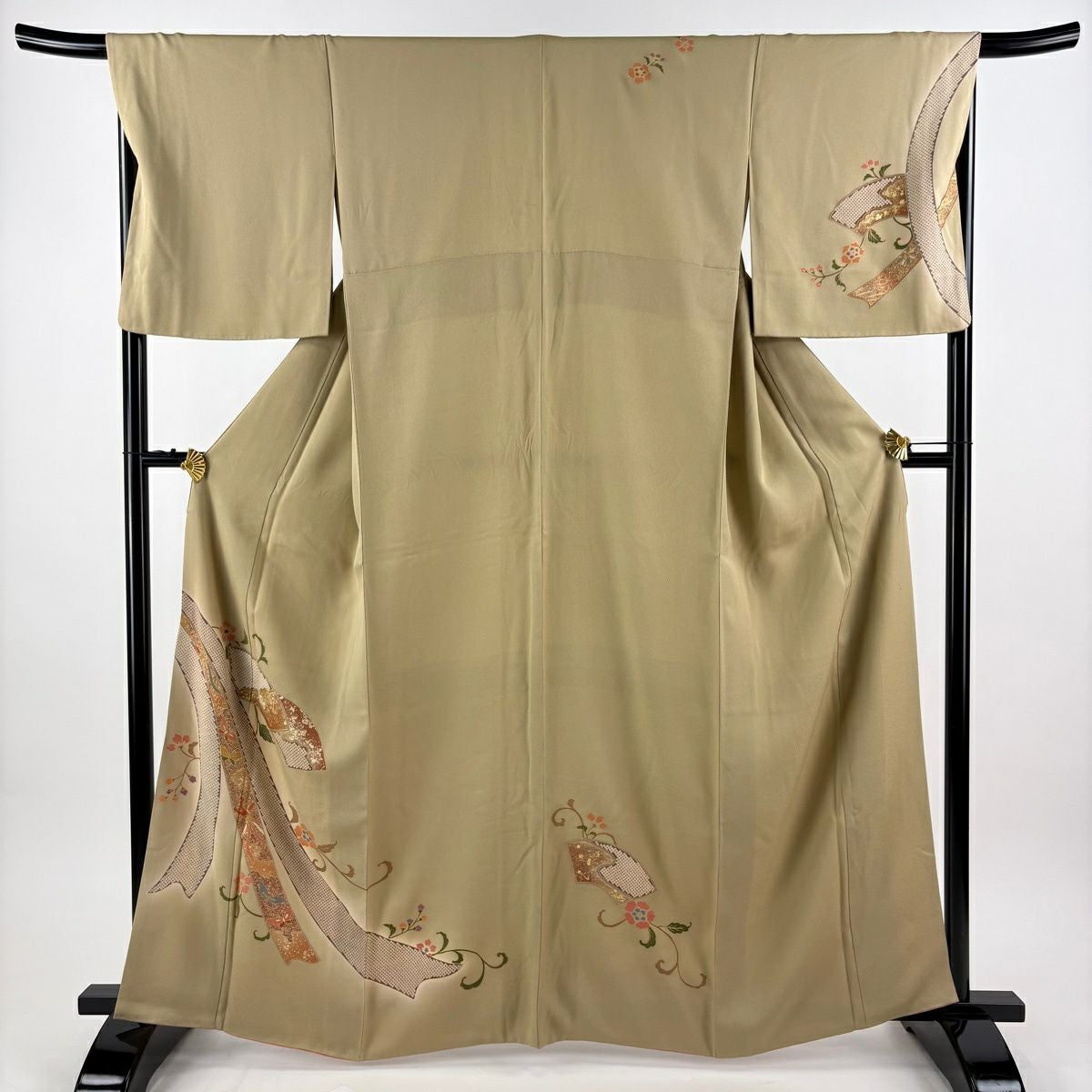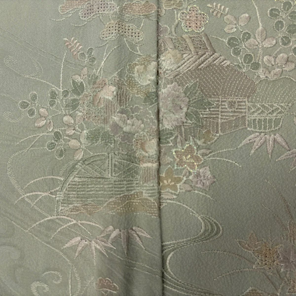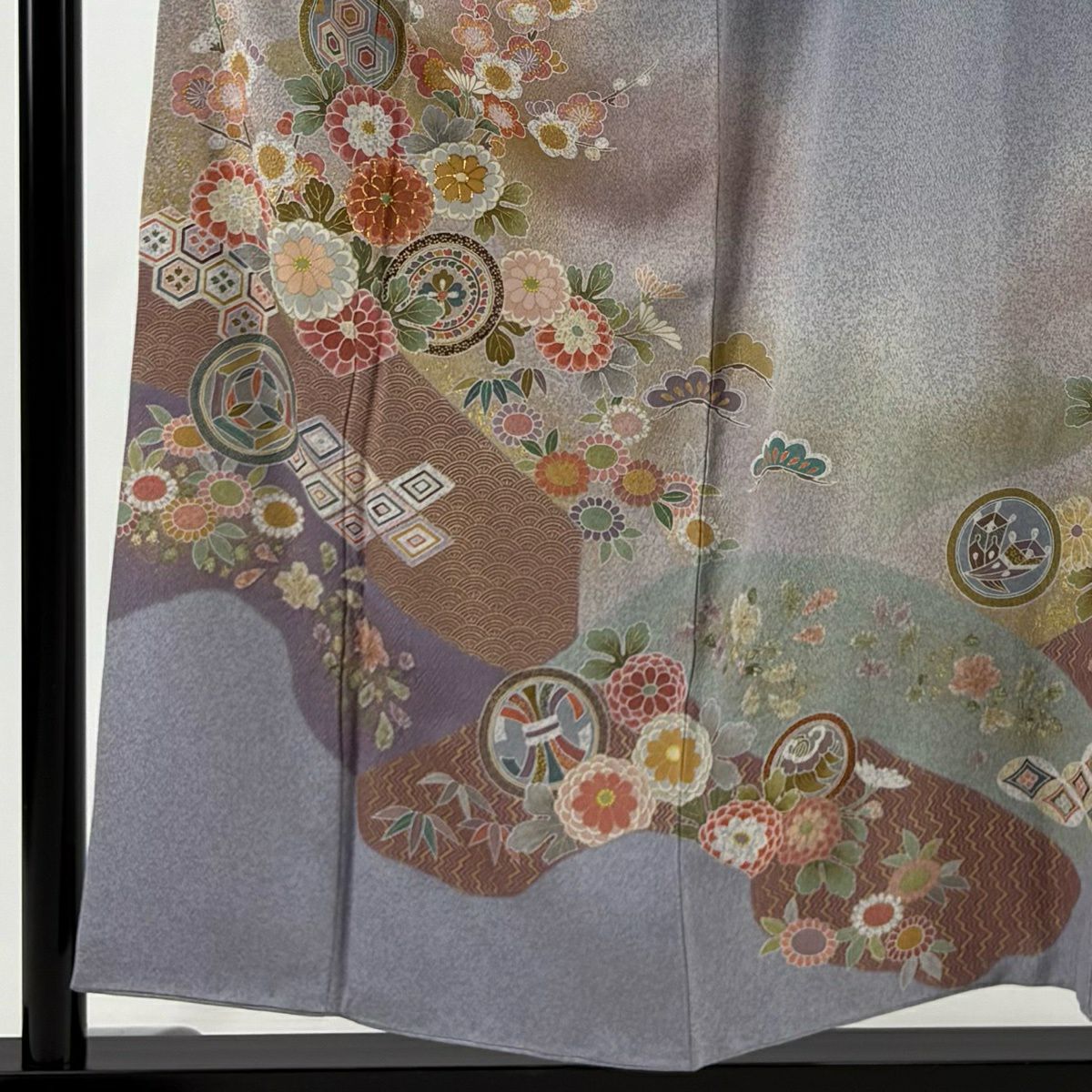 30%OFF 訪問着 身丈155.5cm 裄丈64cm M 袷 扇面 萩 刺繍 金彩 灰色 正絹 秀品 K30