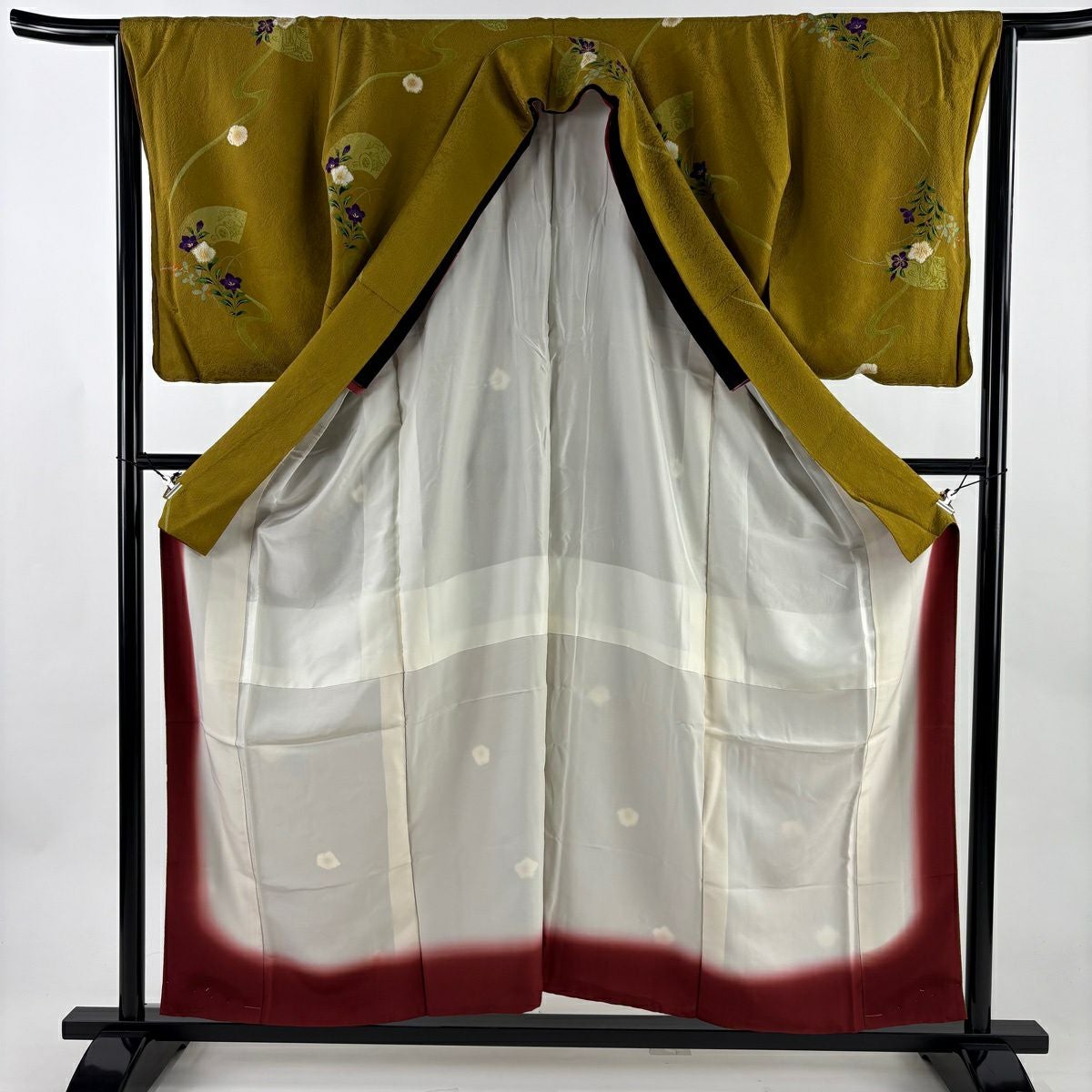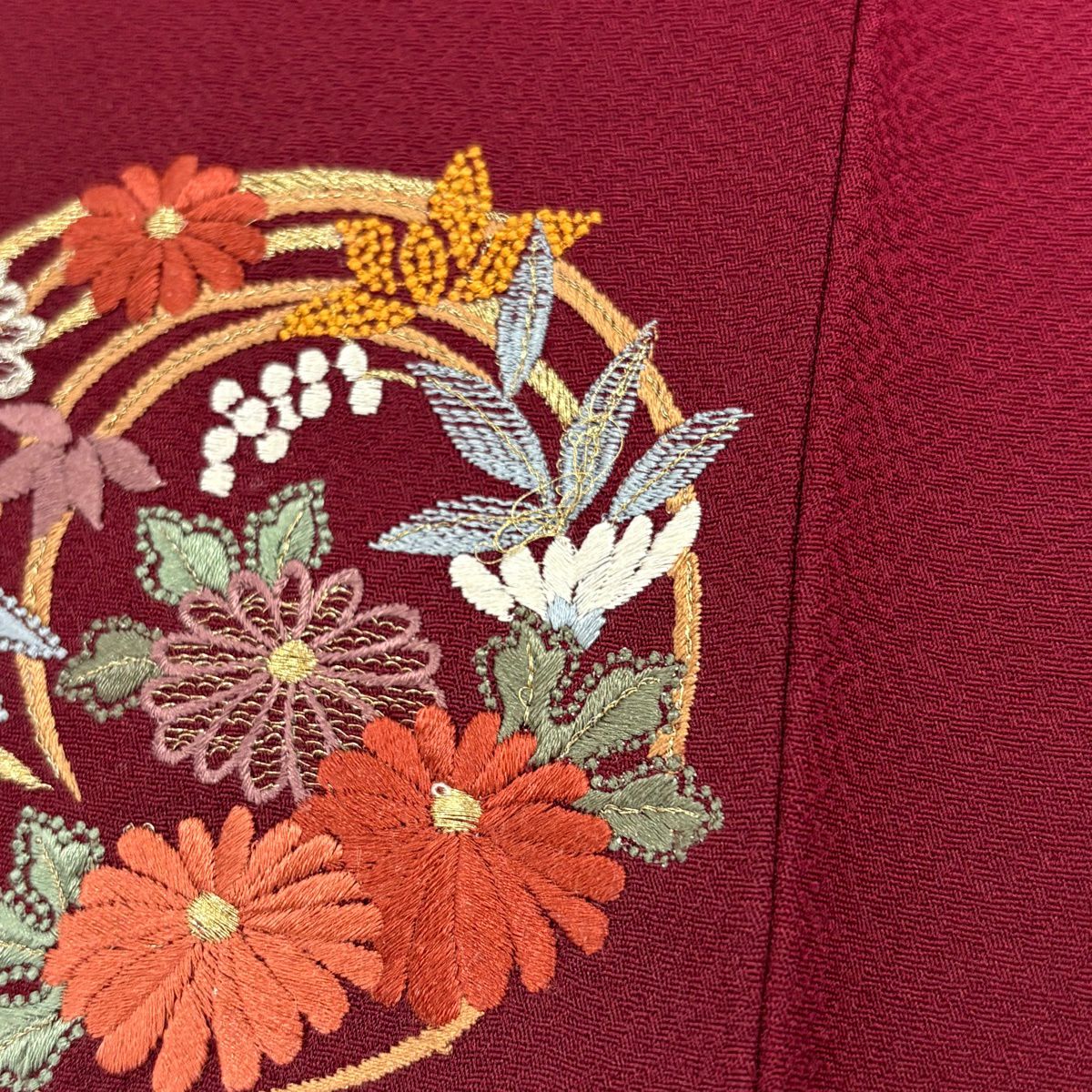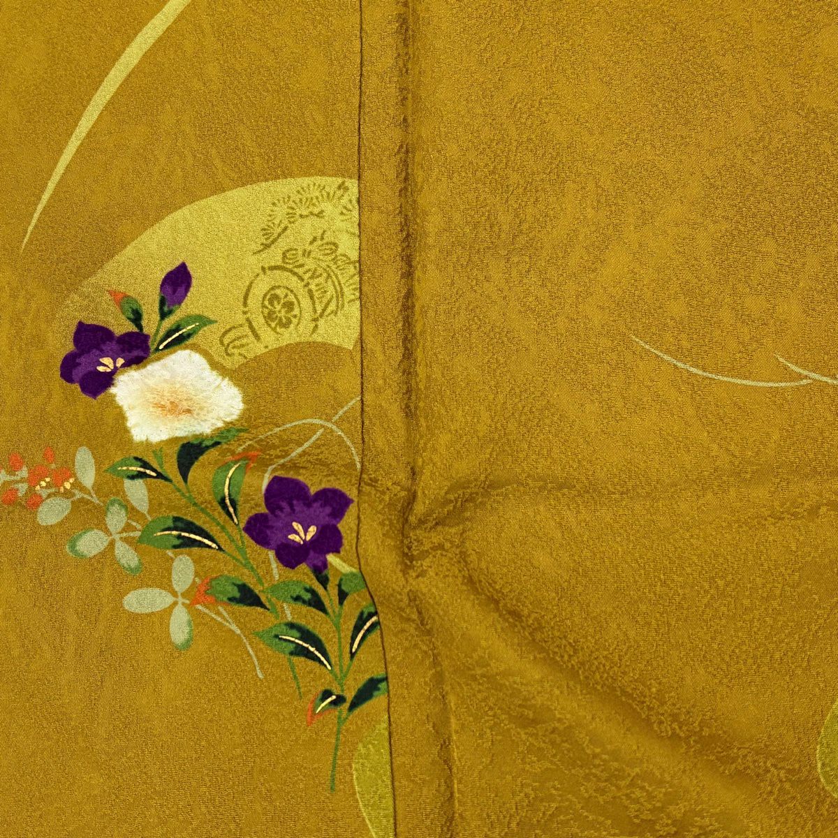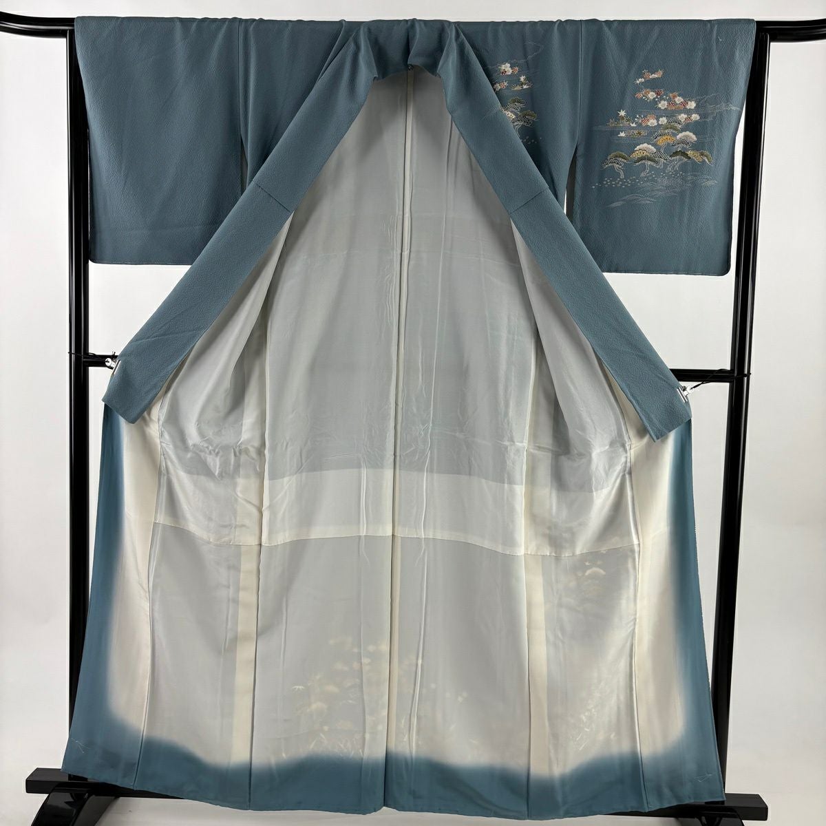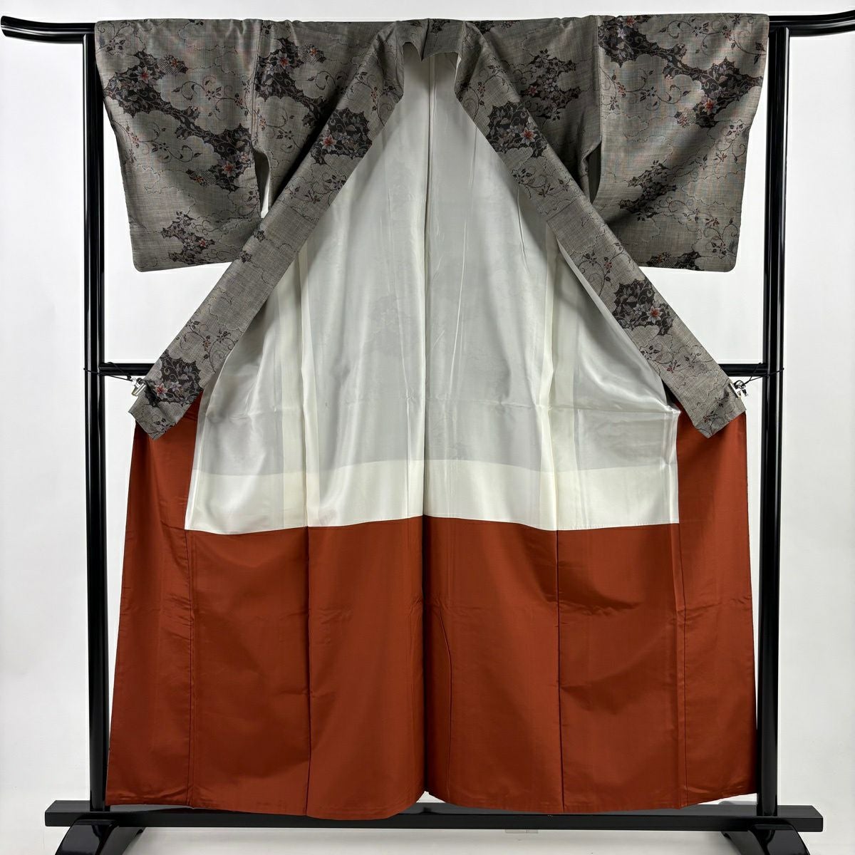 30%OFF 訪問着 身丈155.5cm 裄丈64cm M 袷 扇面 萩 刺繍 金彩 灰色 正絹 秀品 K30