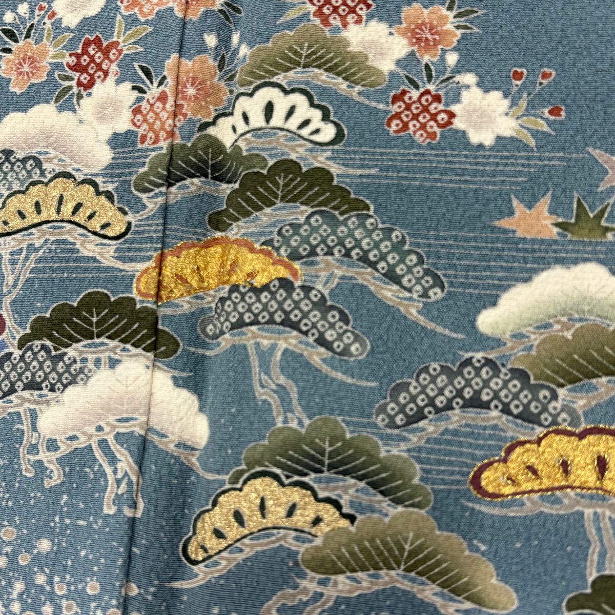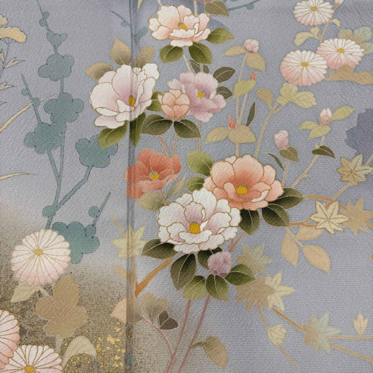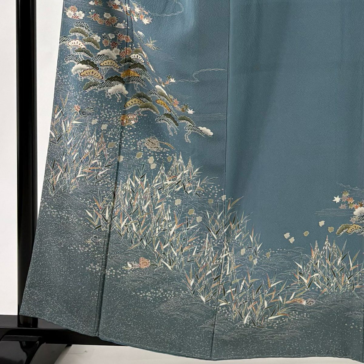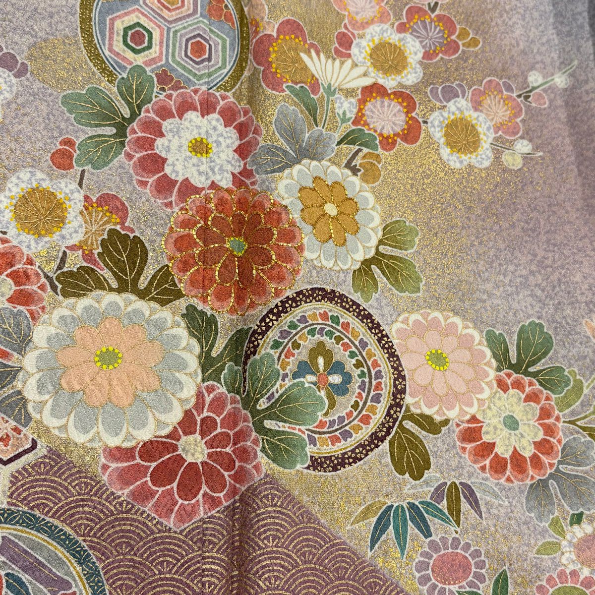 30%OFF 訪問着 身丈154.5cm 裄丈61cm S 袷 菊 青海波 金糸 金彩 青灰色 正絹 秀品 K30