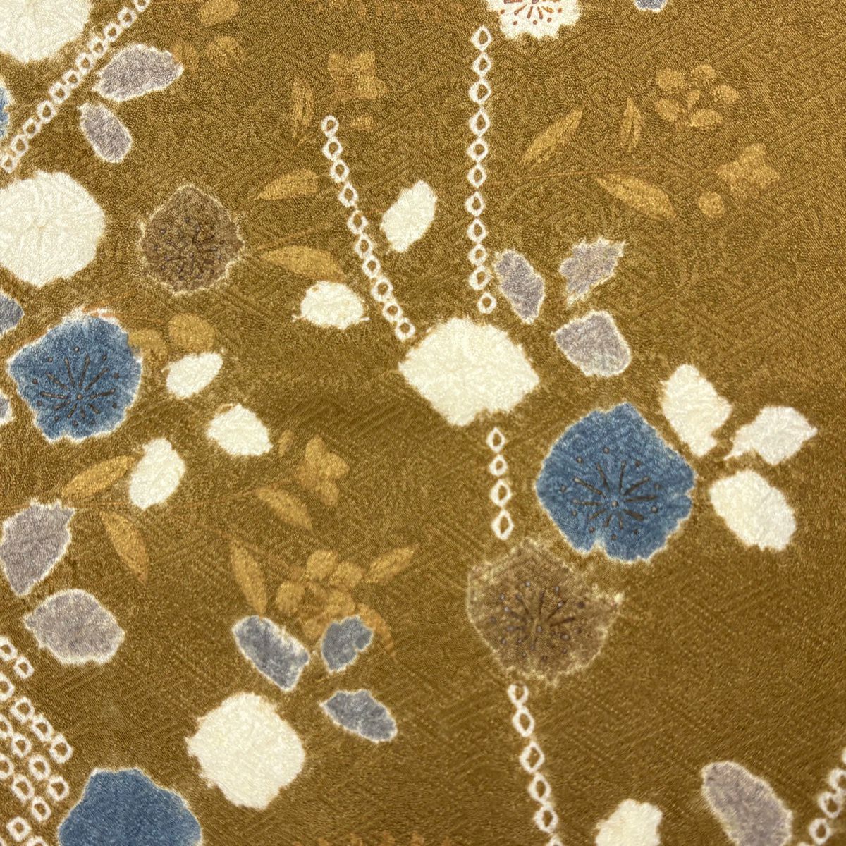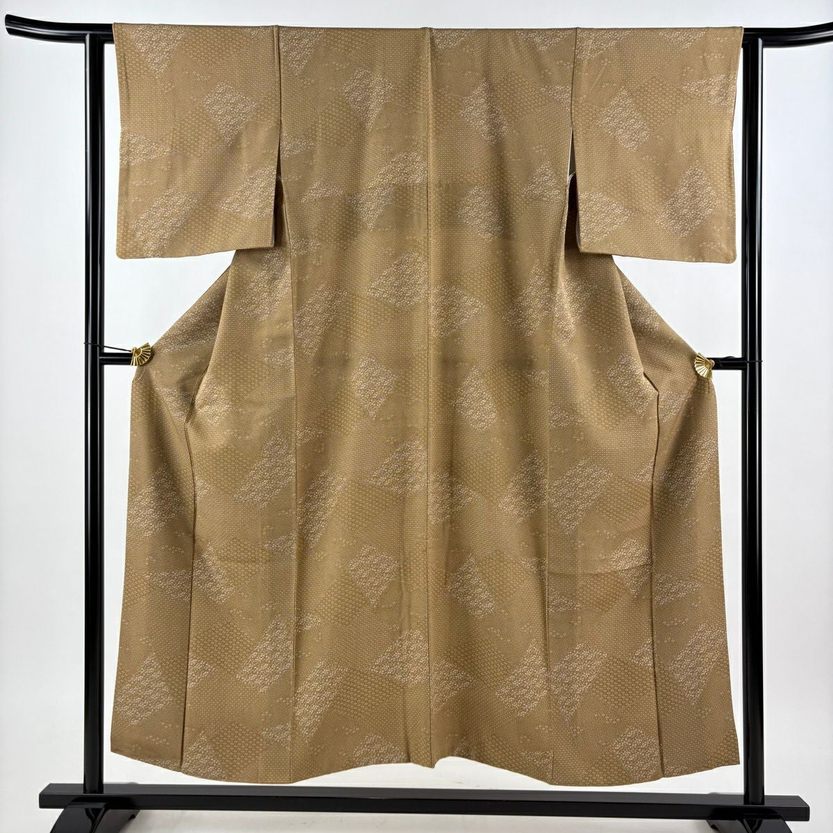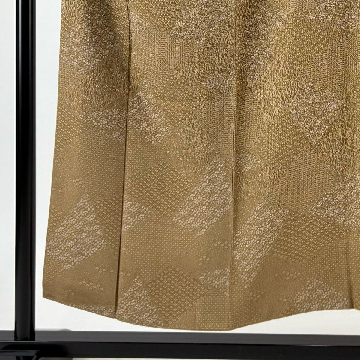 30%OFF 【美品】 紬 身丈161cm 裄丈66.5cm M 袷 縦縞 幾何学 黄土色 正絹 秀品 K30