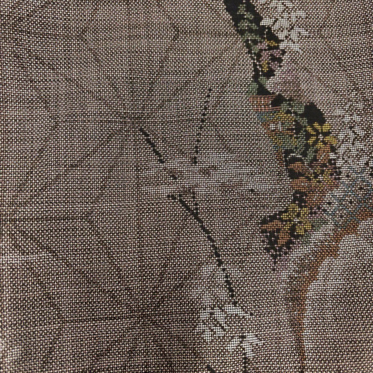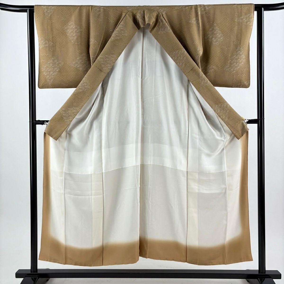30%OFF 付下げ 身丈167cm 裄丈68cm L 袷 葡萄丸文 霞 刺繍 箔 薄茶色 正絹 秀品 K30