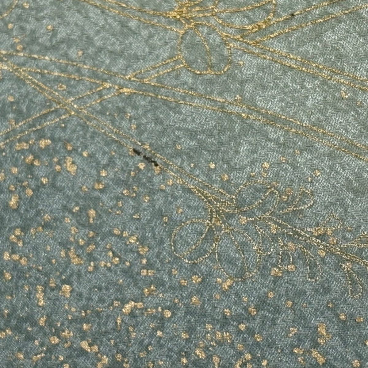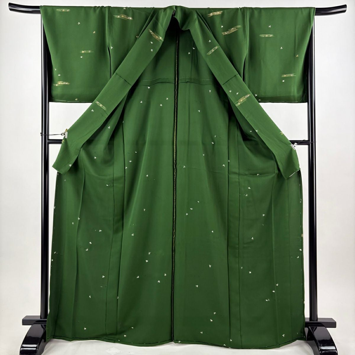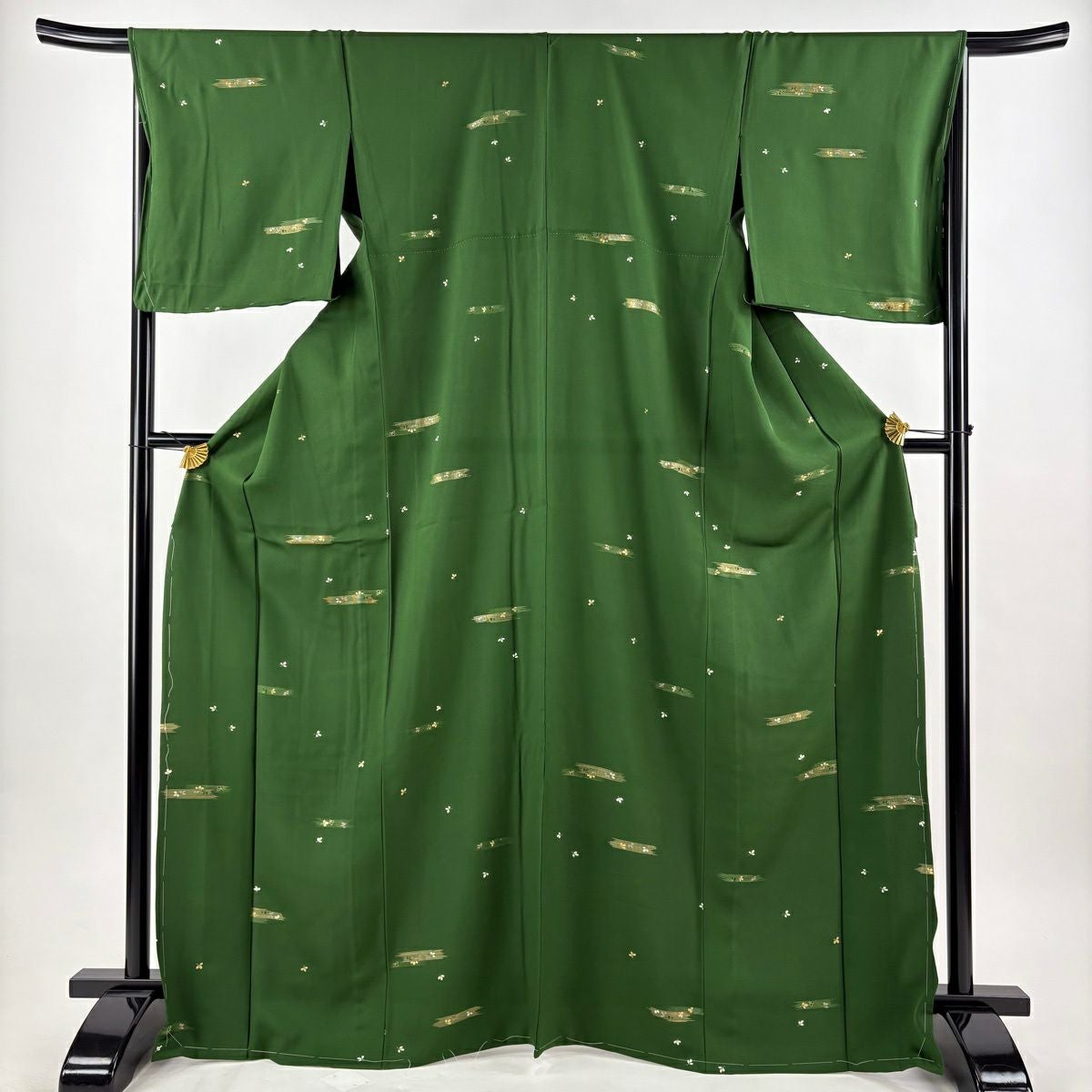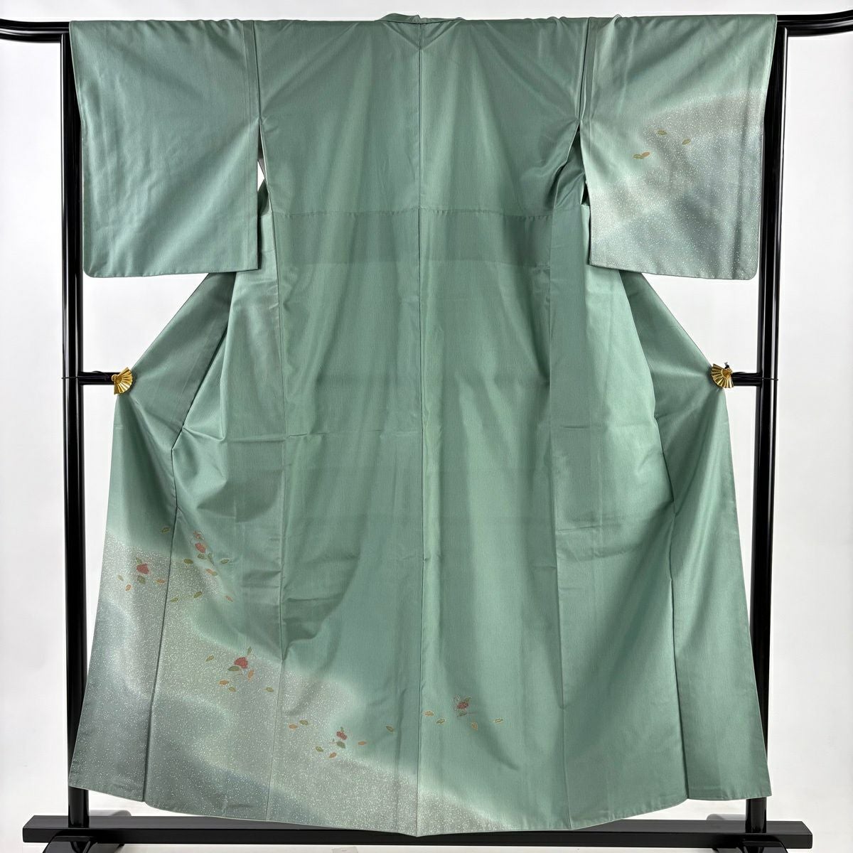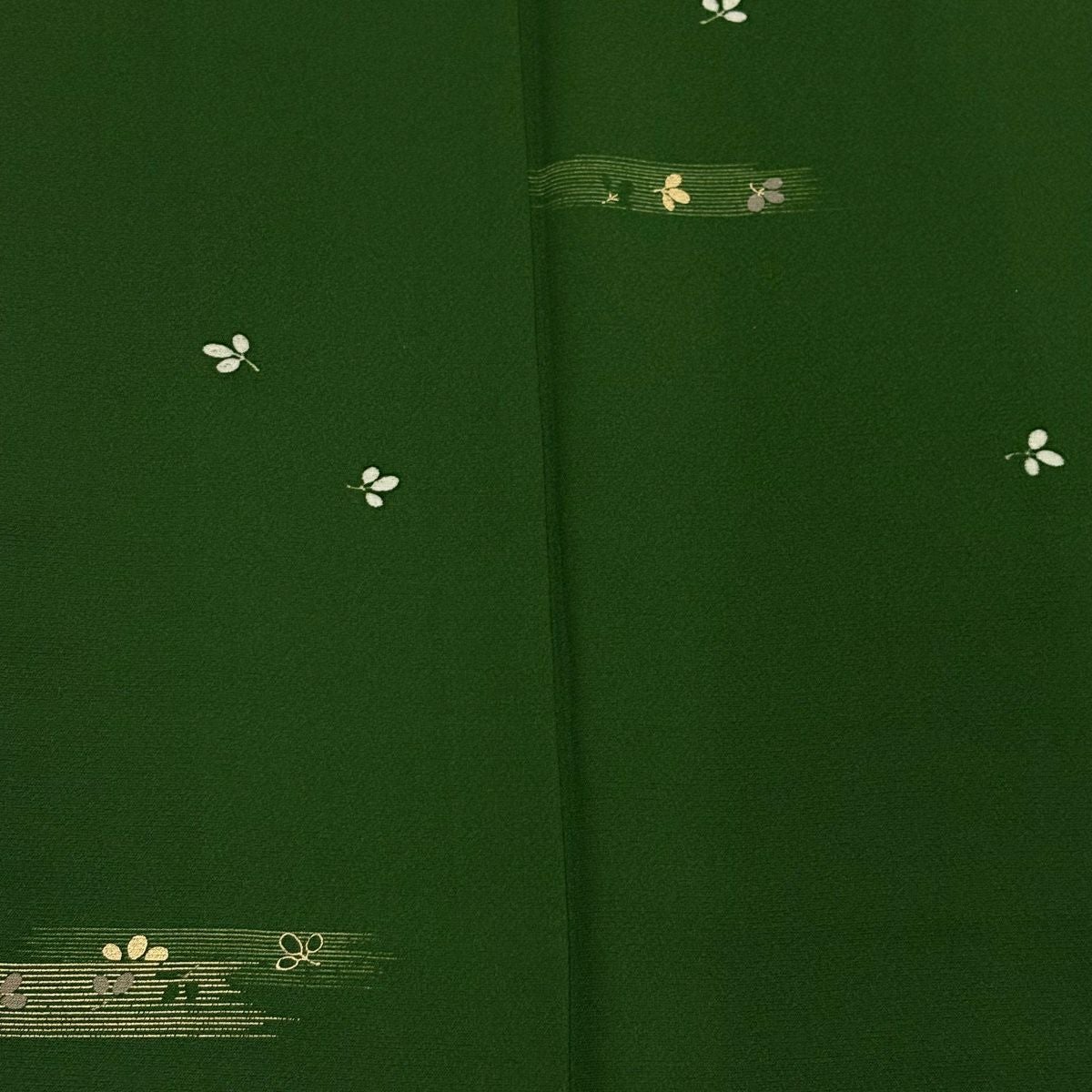 30%OFF 【美品】 小紋 身丈169cm 裄丈66.5cm M 単衣 萩 霞 金彩 緑 正絹 秀品 K30