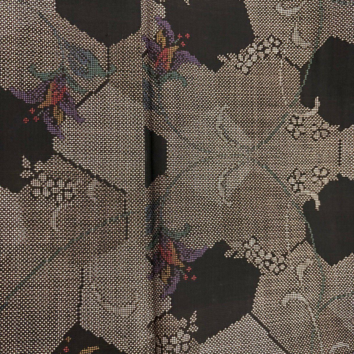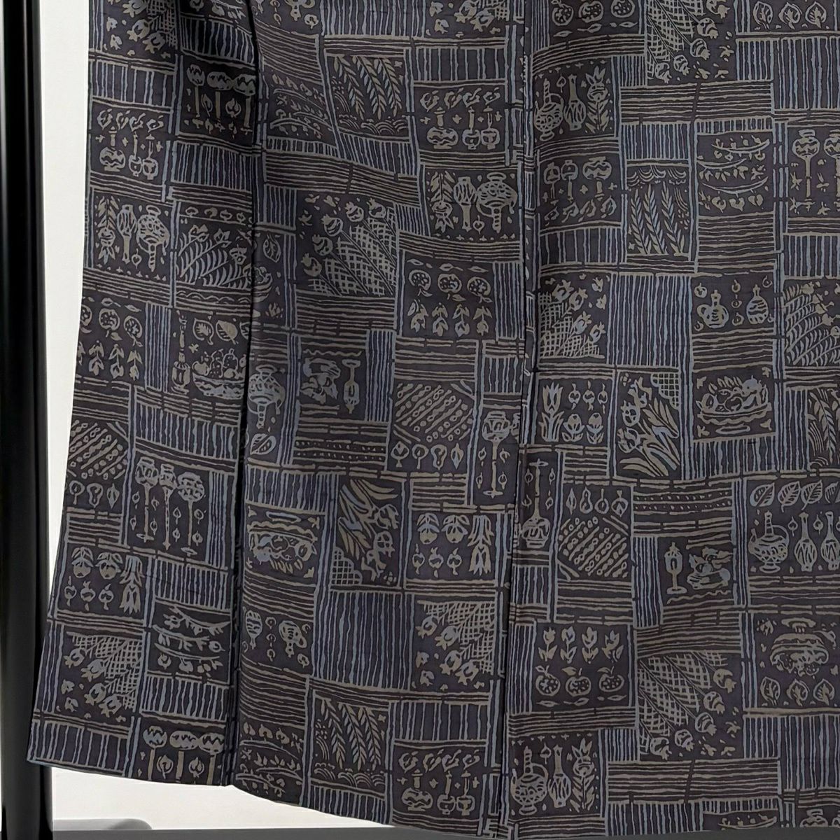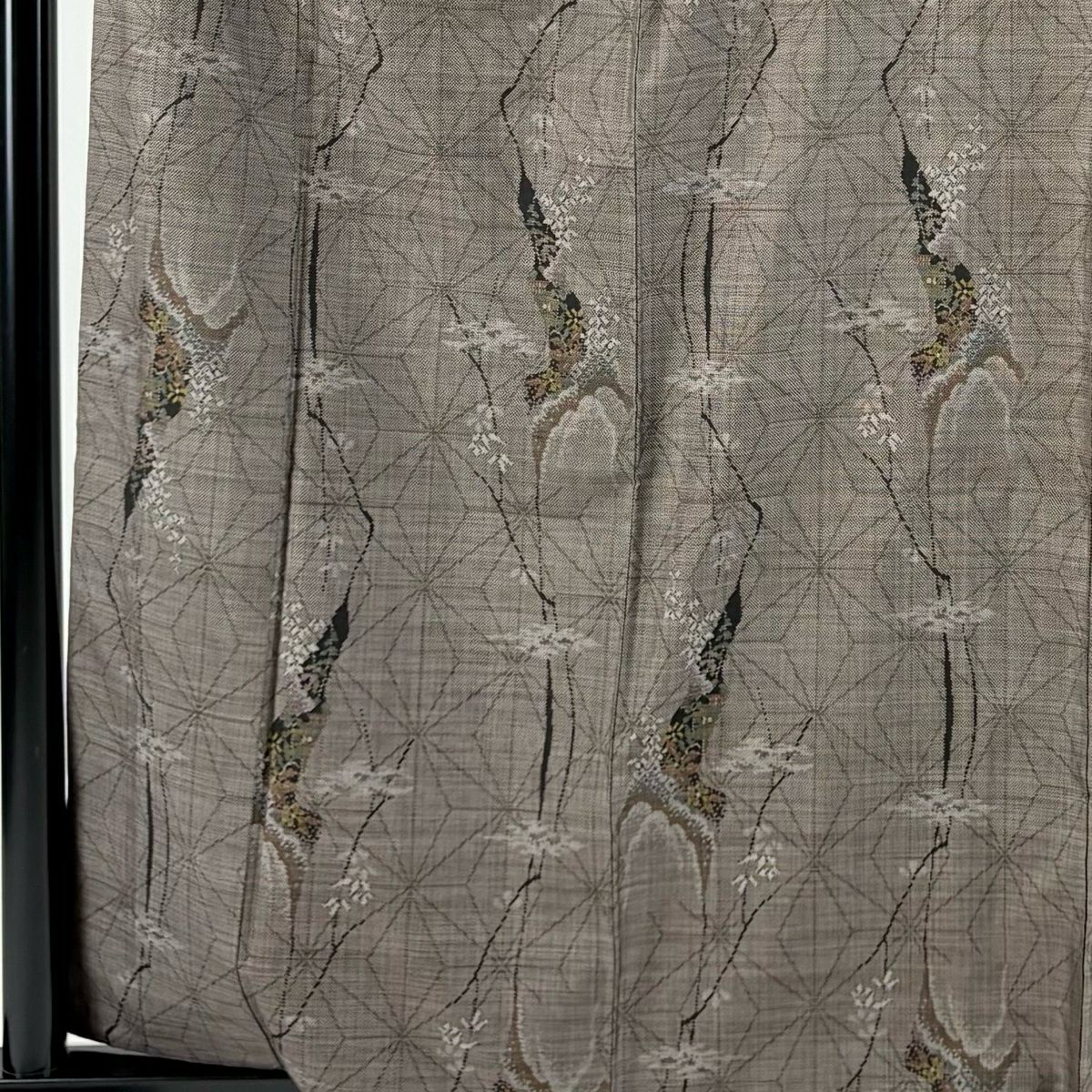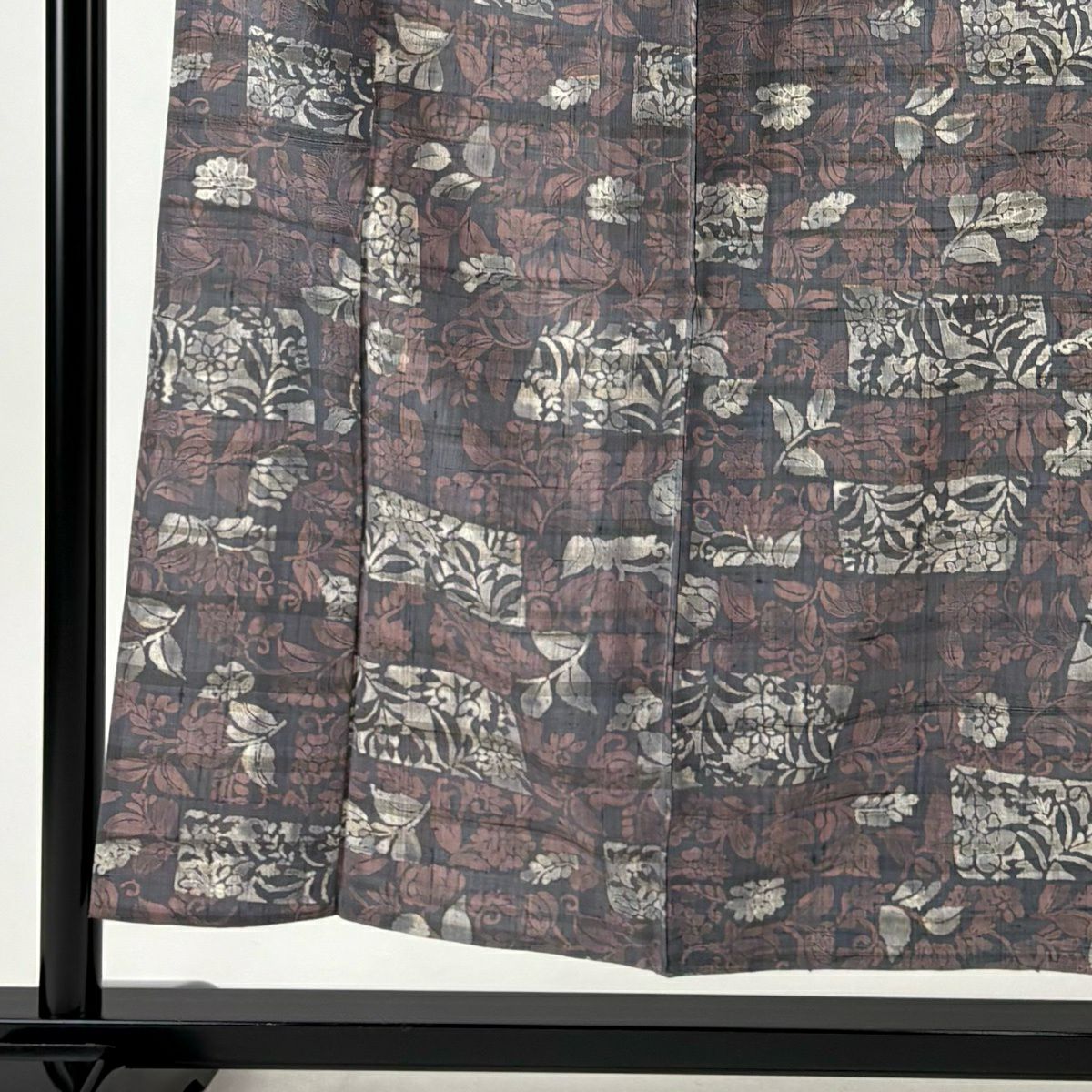 30%OFF 【美品】 紬 身丈162cm 裄丈67cm M 袷 草花 幾何学模様 焦茶色 正絹 秀品 K30