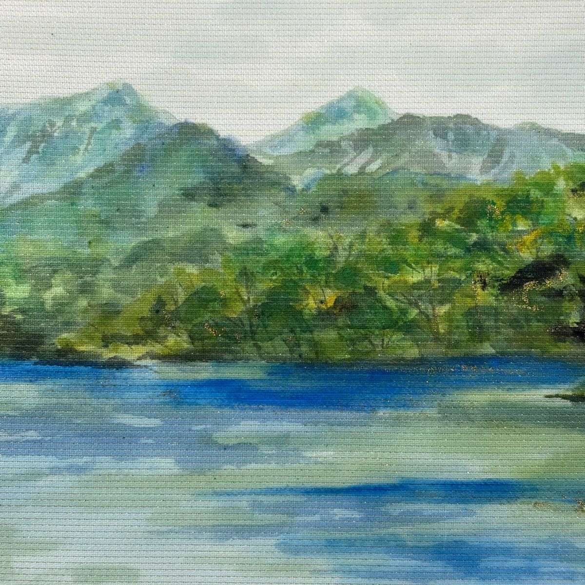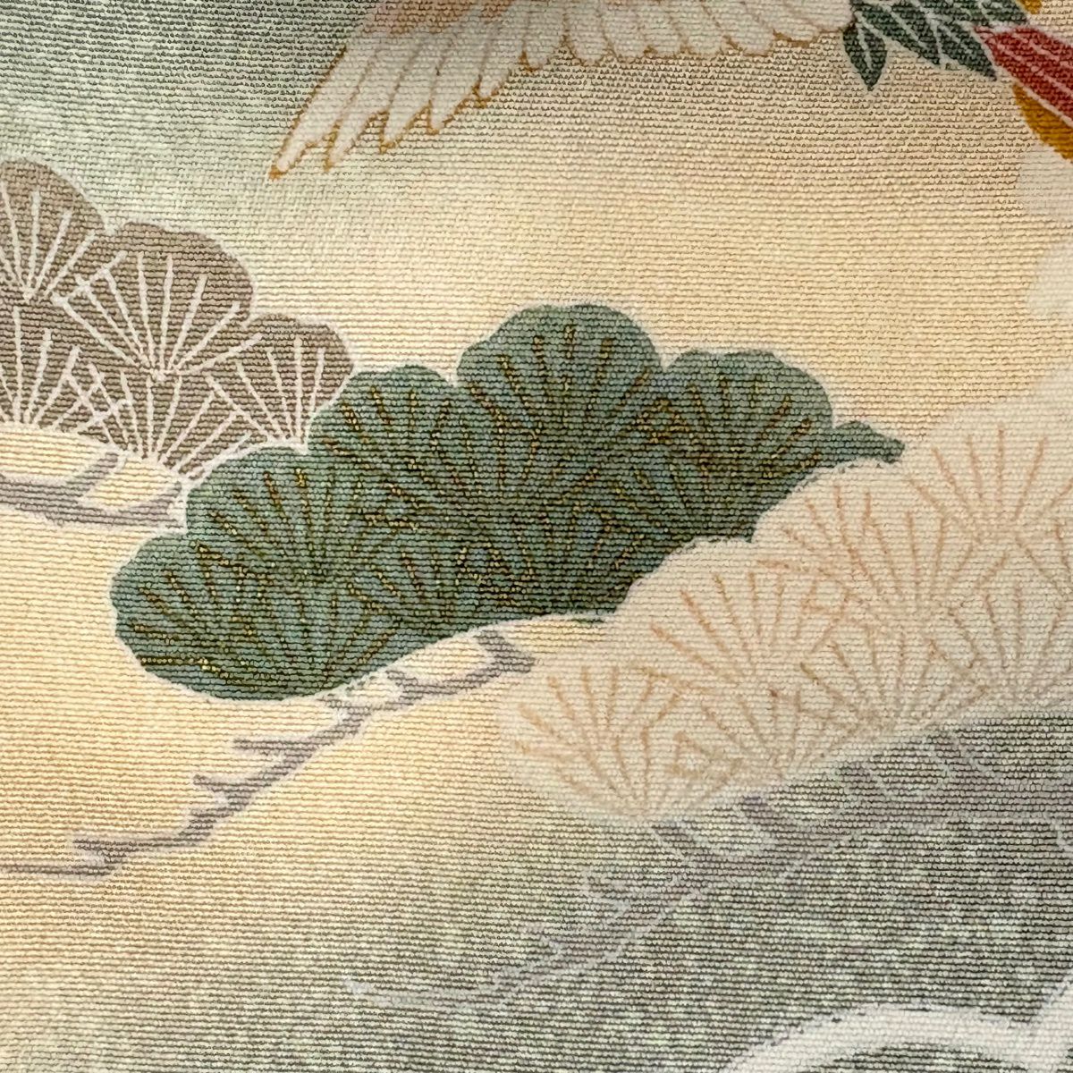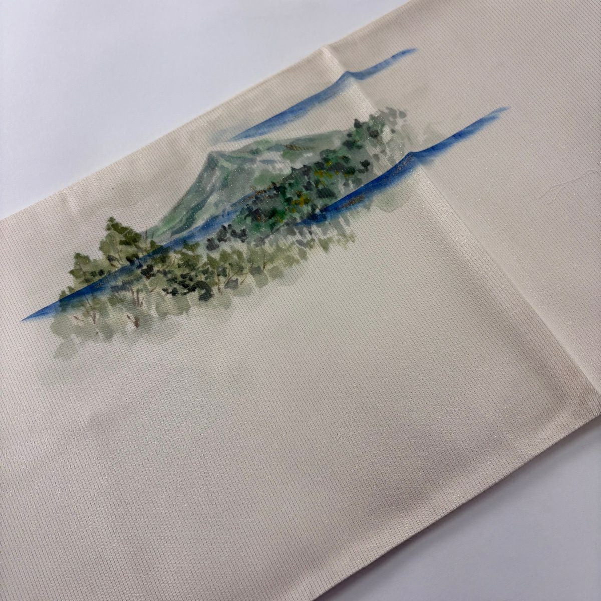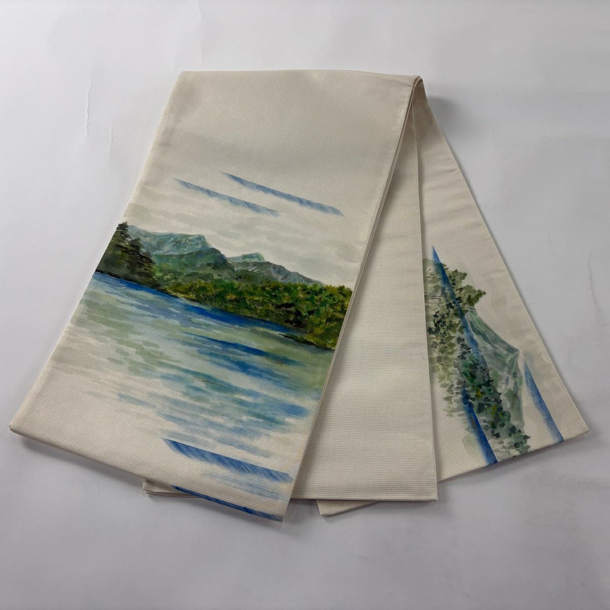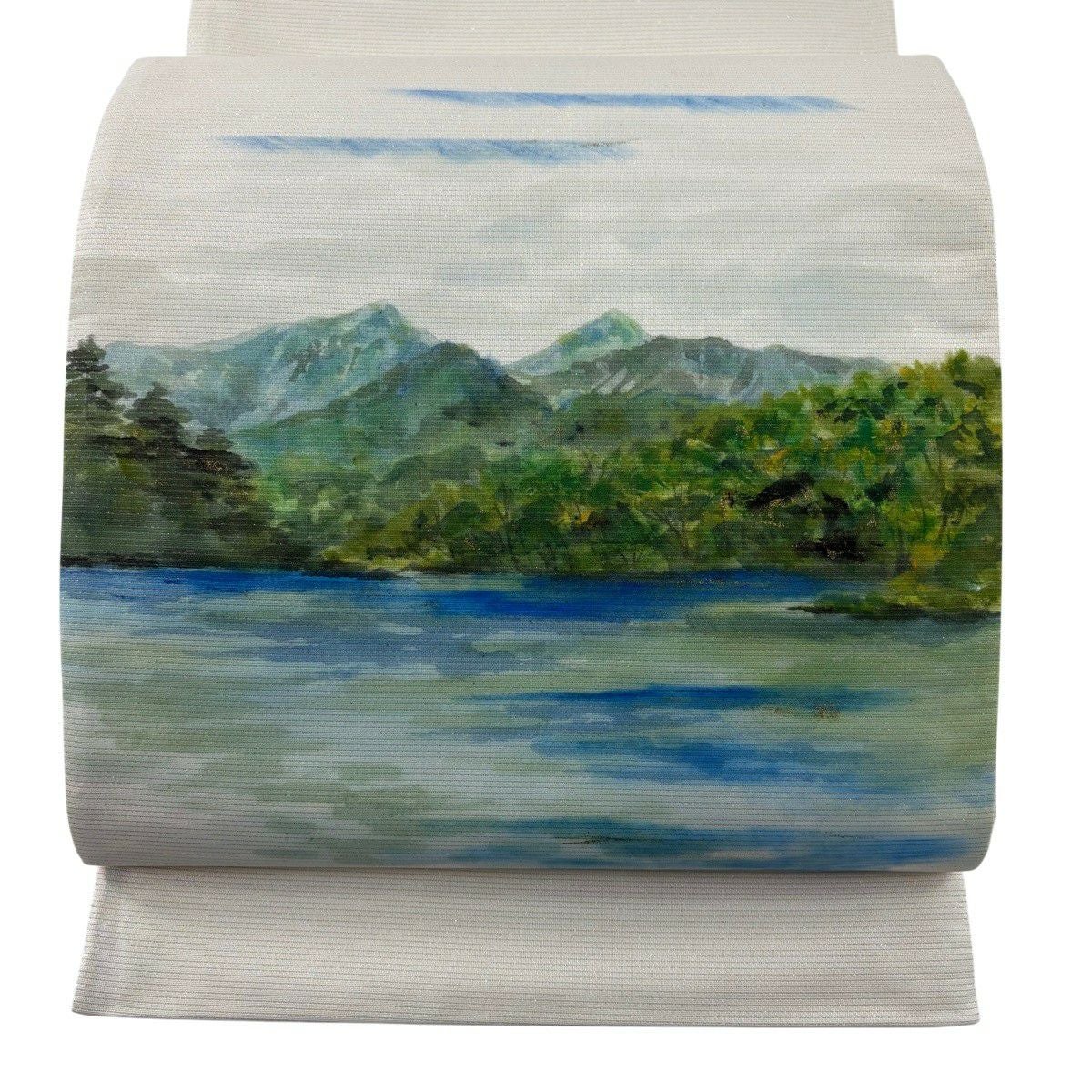 30%OFF 【美品】 袋帯 秀品 落款あり 水辺の風景 磐梯山 金彩 箔 クリーム お太鼓柄 正絹 K30