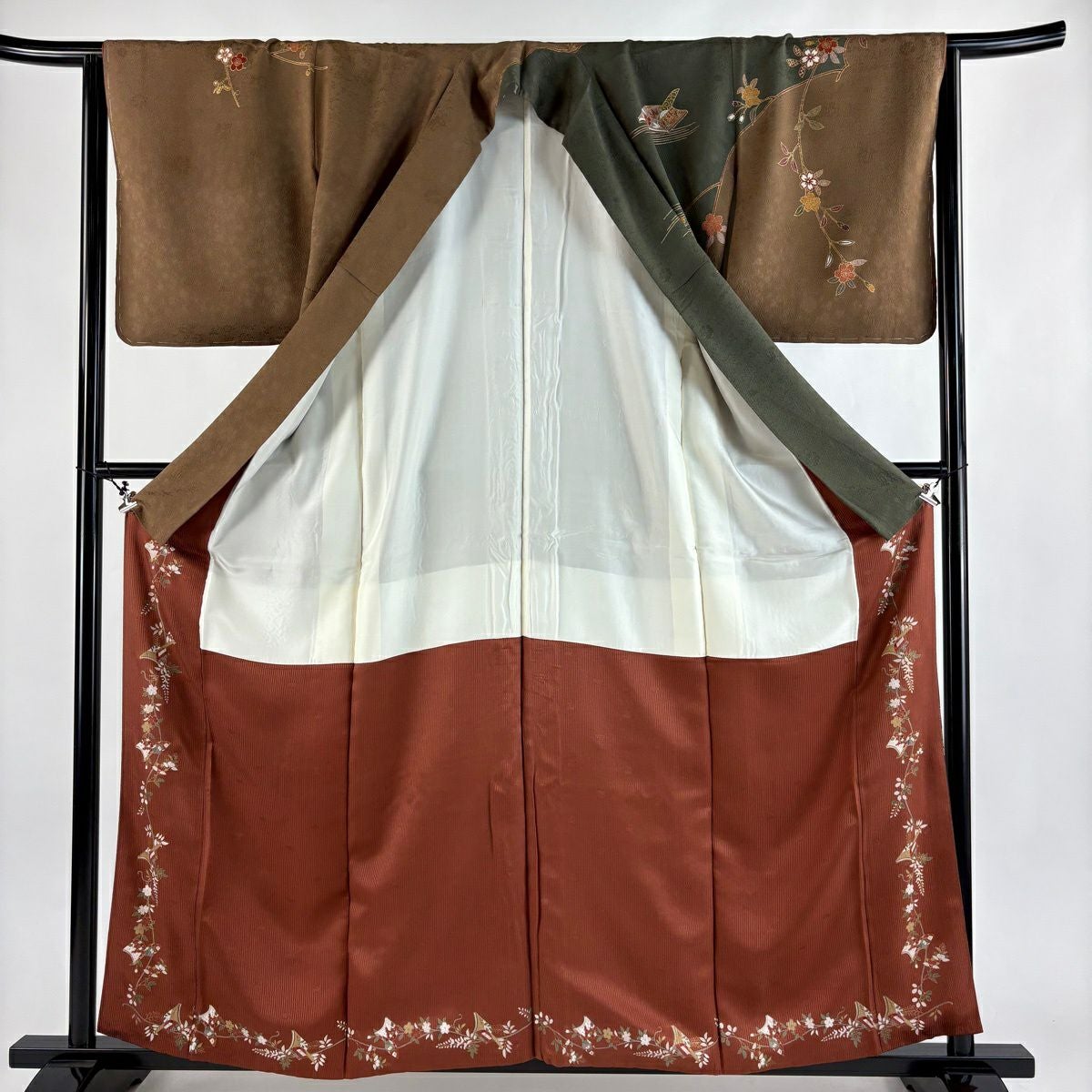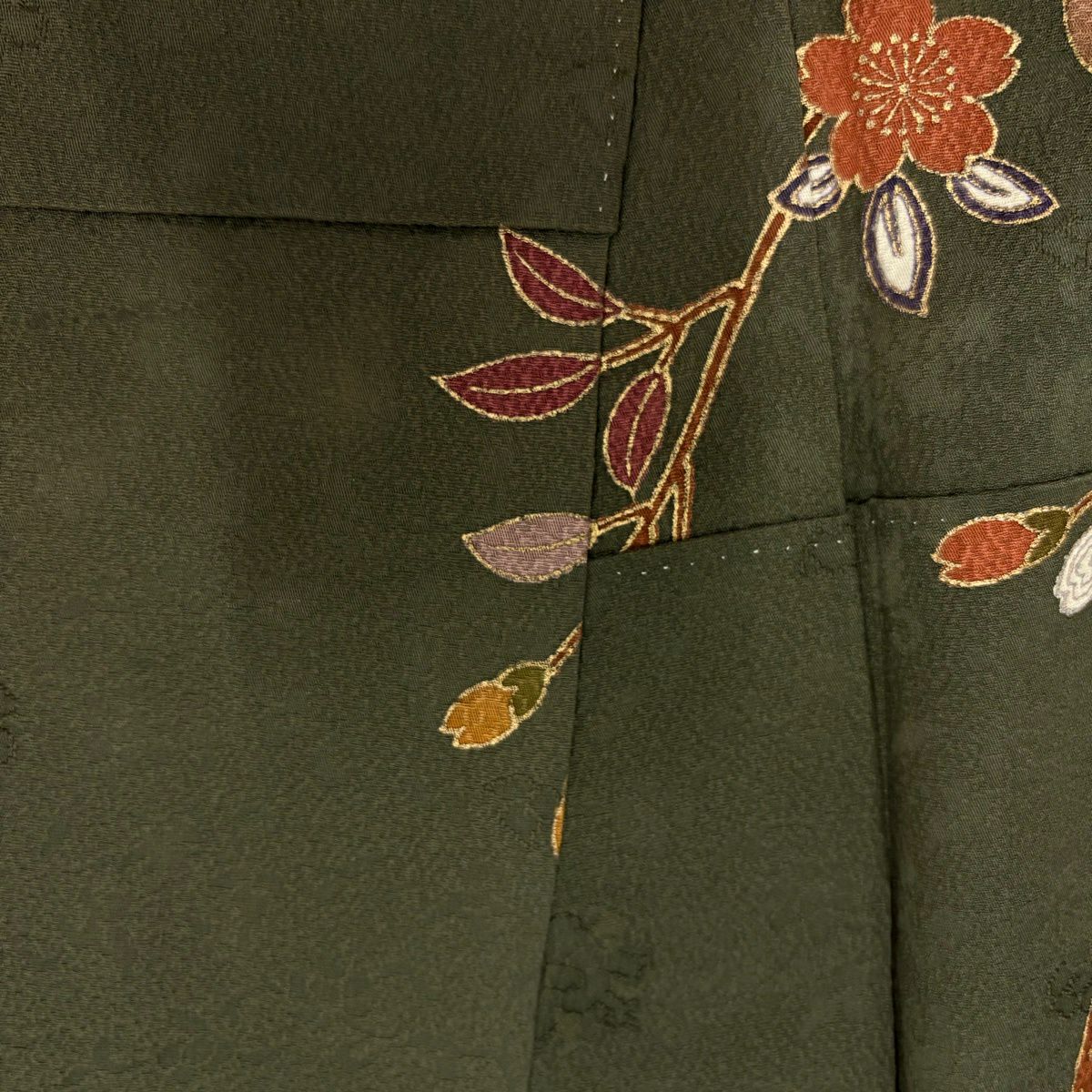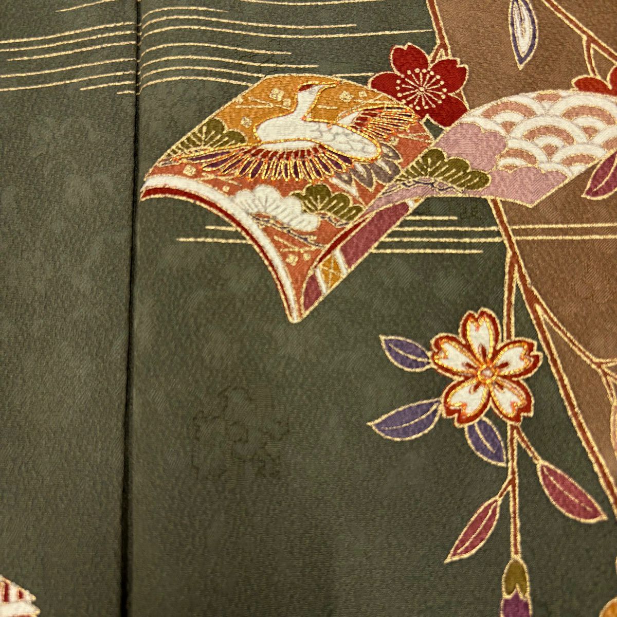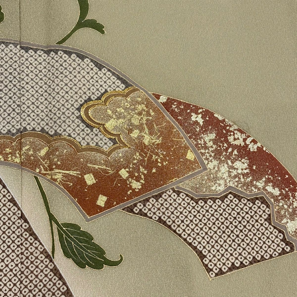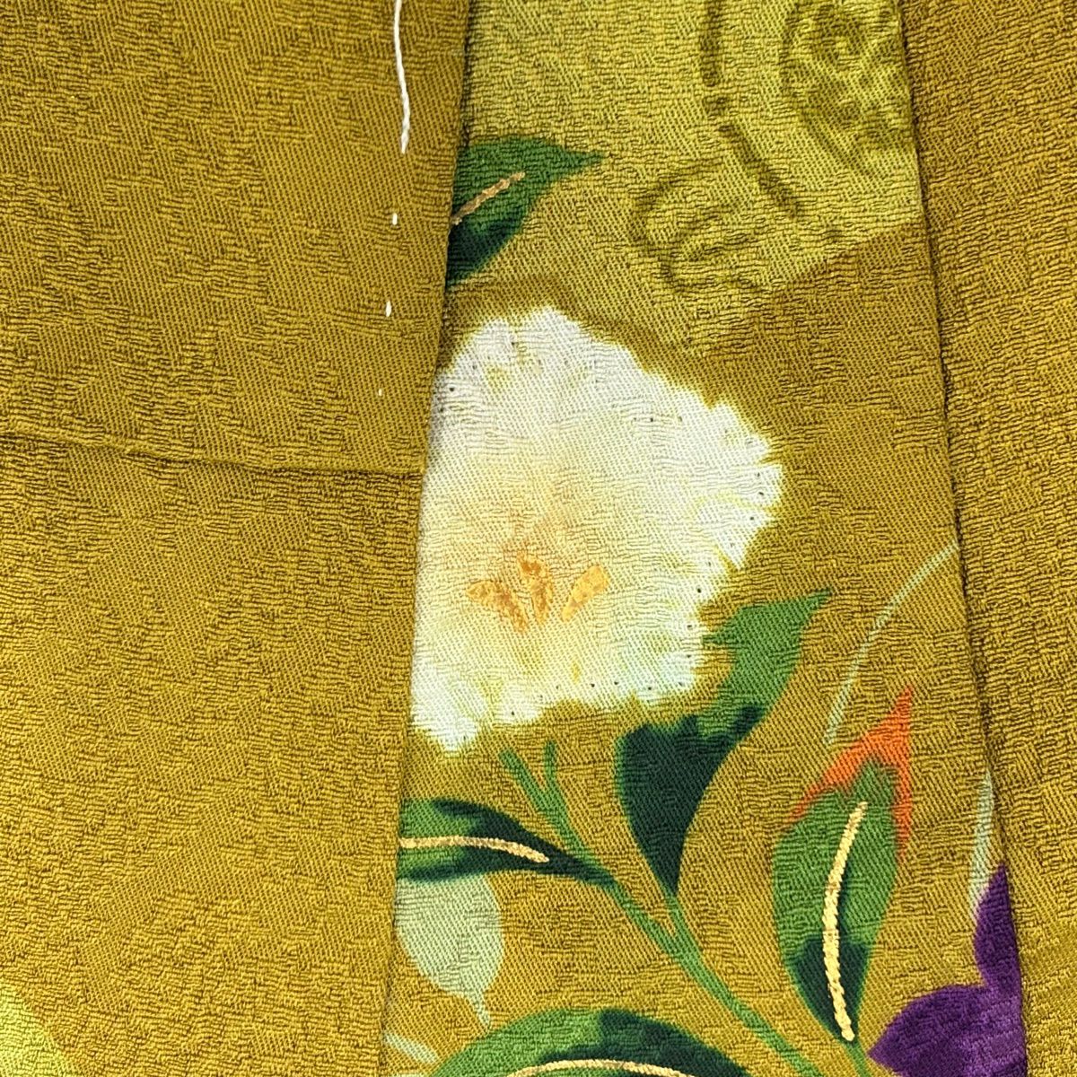 30%OFF 訪問着 身丈156.5cm 裄丈63.5cm S 袷 落款あり 吹き寄せ 茶緑色 正絹 秀品 K30