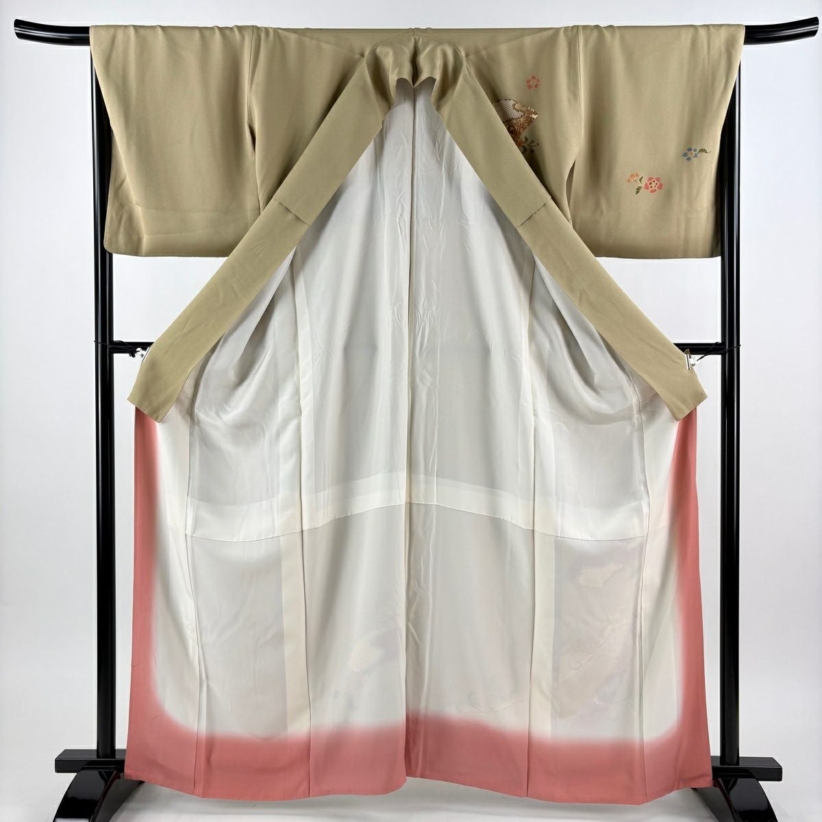 30%OFF 訪問着 身丈154cm 裄丈64cm M 袷 草花 梅 刺繍 ぼかし ピンク 正絹 秀品 K30