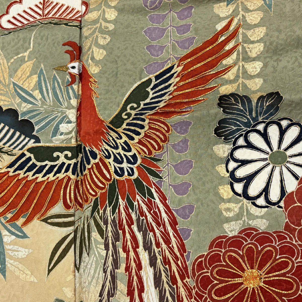 30%OFF 【美品】 袋帯 秀品 関西仕立て 鳳凰 唐草 金糸 金通し ベージュ お太鼓柄 正絹 K30