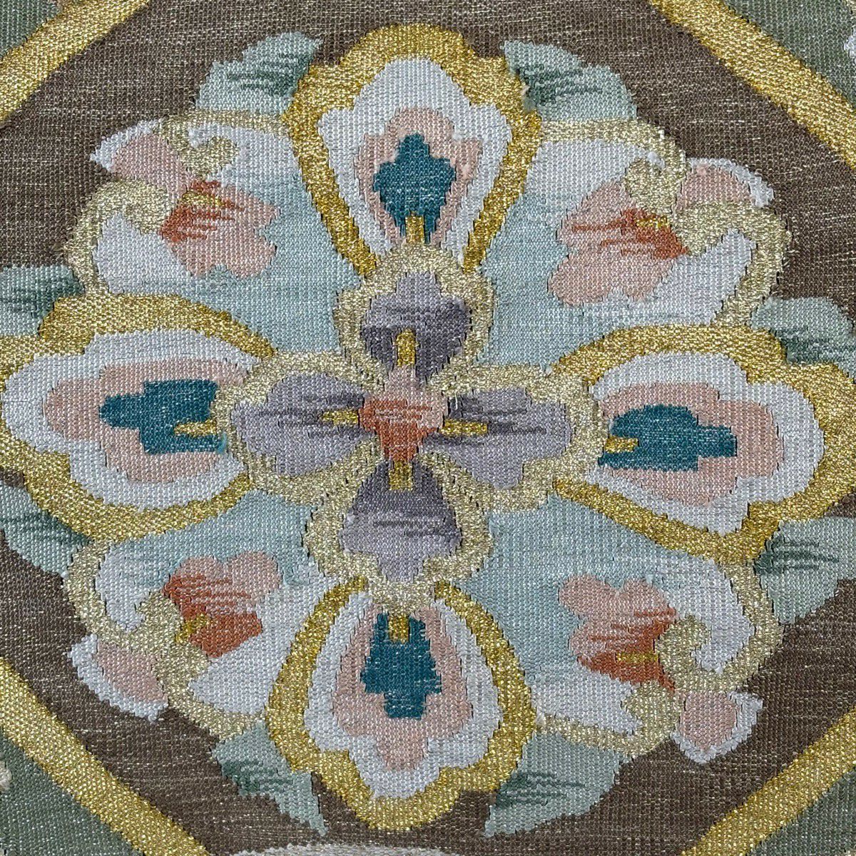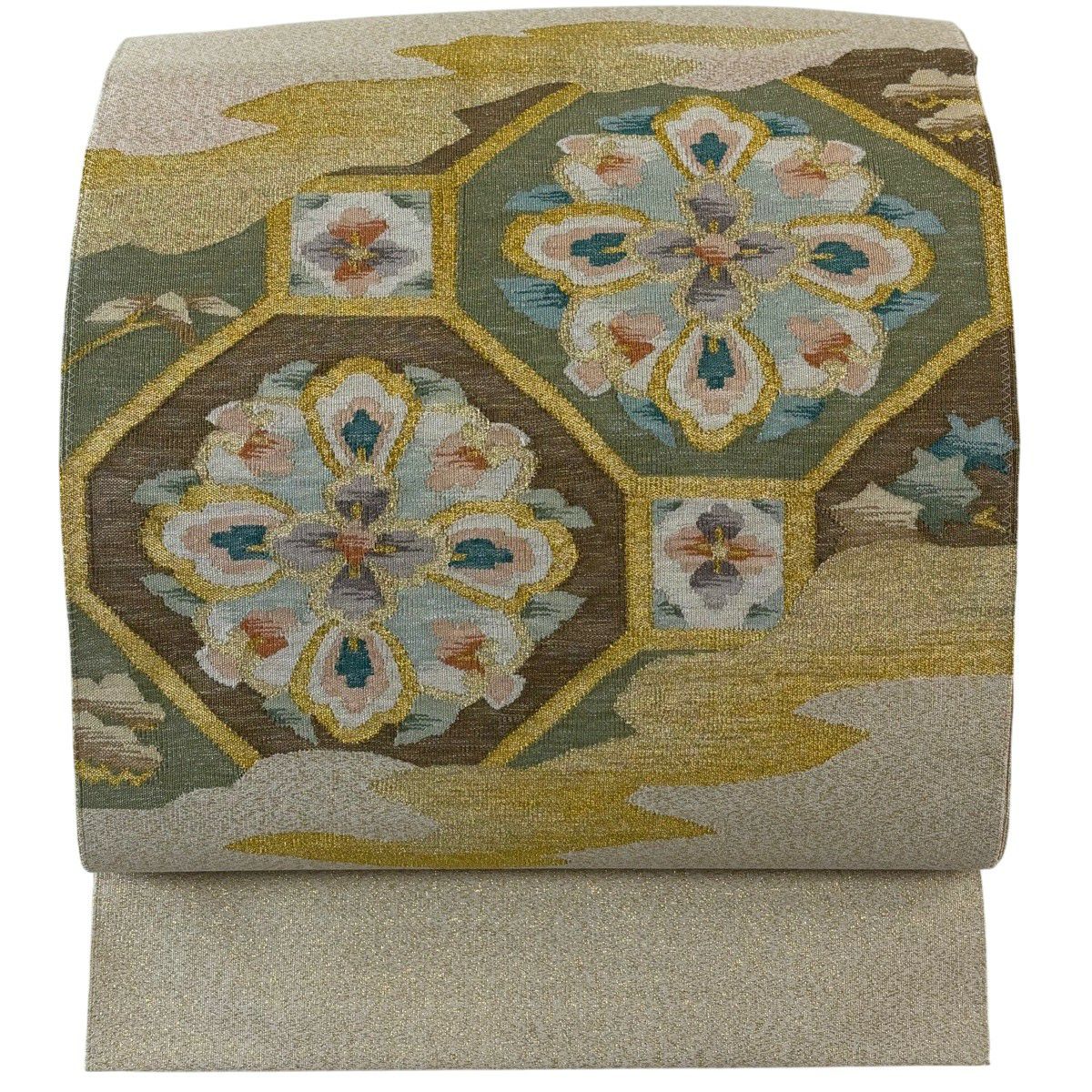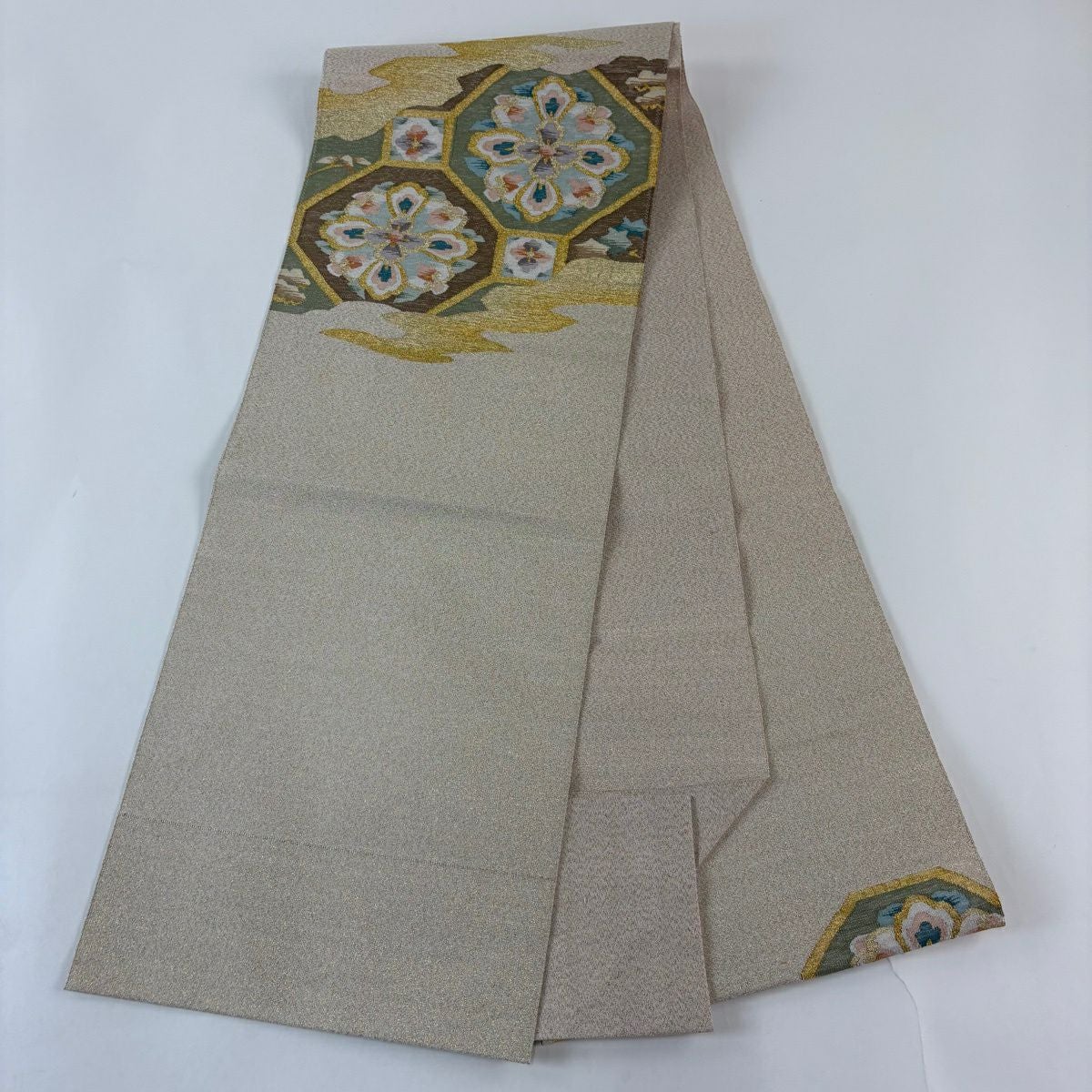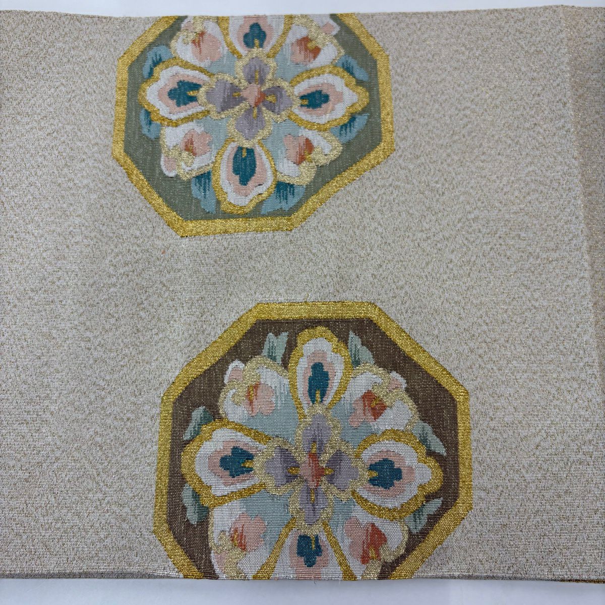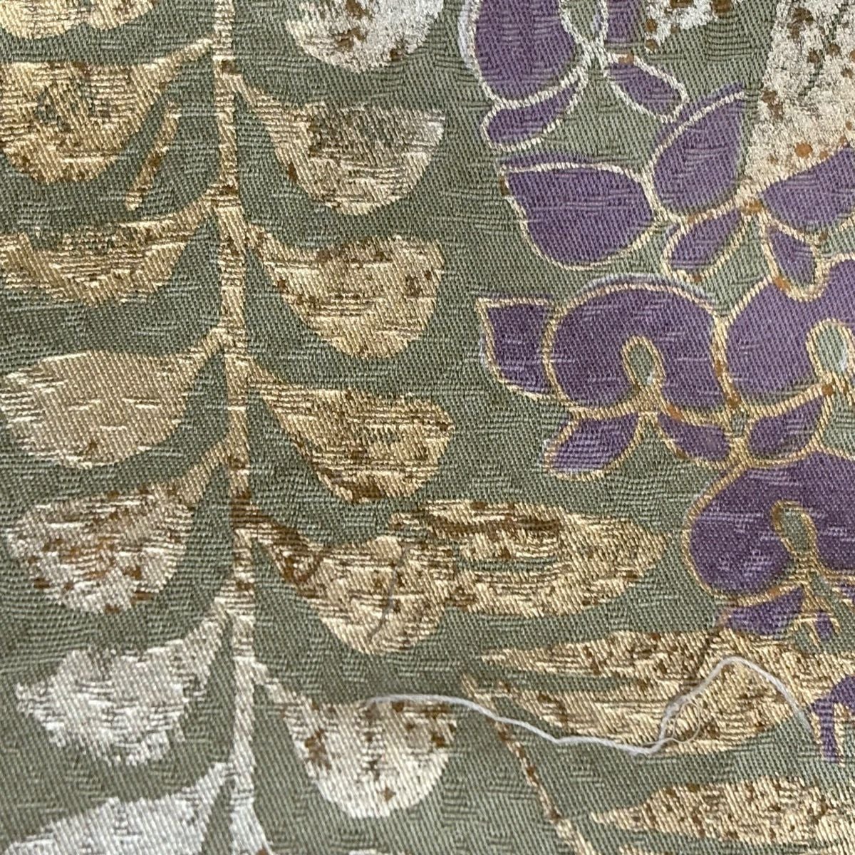 30%OFF 袋帯 秀品 服部織物 落款あり 華文 花鳥 金糸 箔 ピンクベージュ 六通 正絹 K30