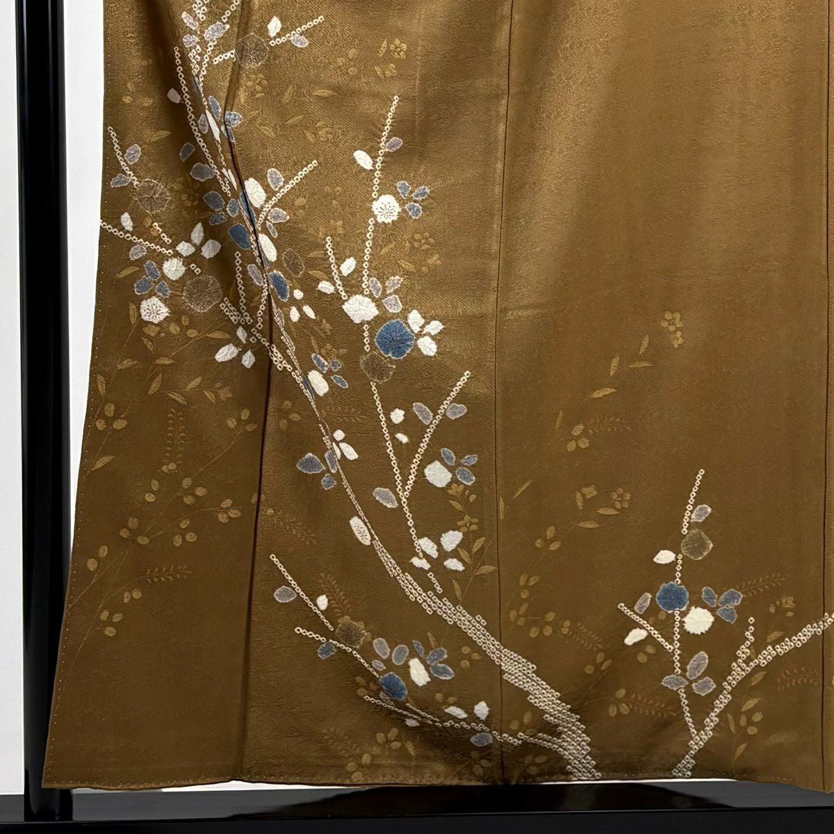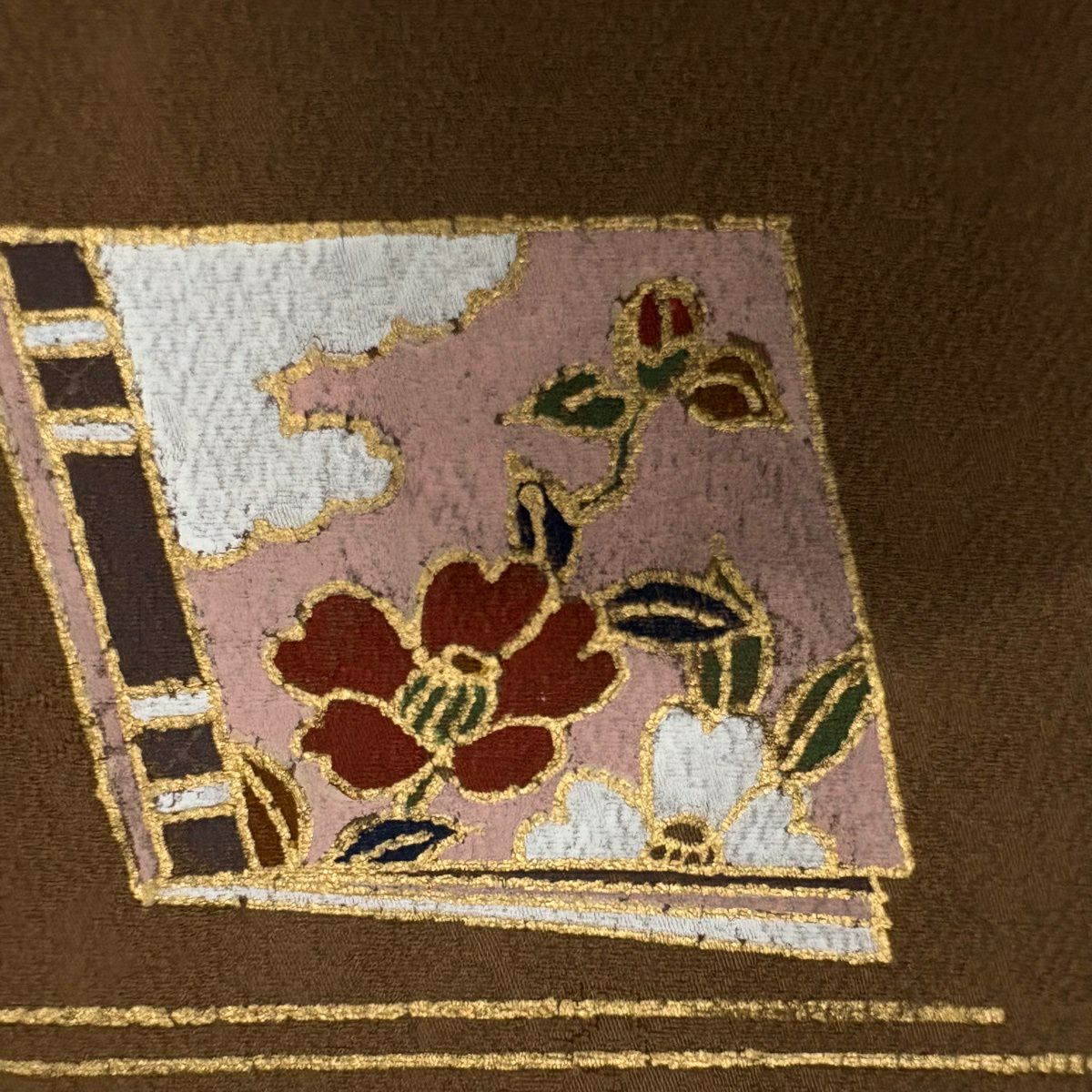 30%OFF 訪問着 身丈161.5cm 裄丈66cm M 袷 鼓 菊 金糸 金銀彩 焦茶色 正絹 秀品 K30