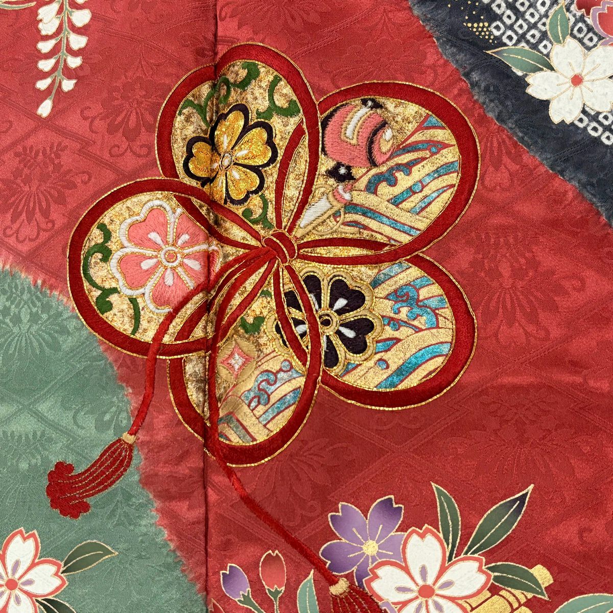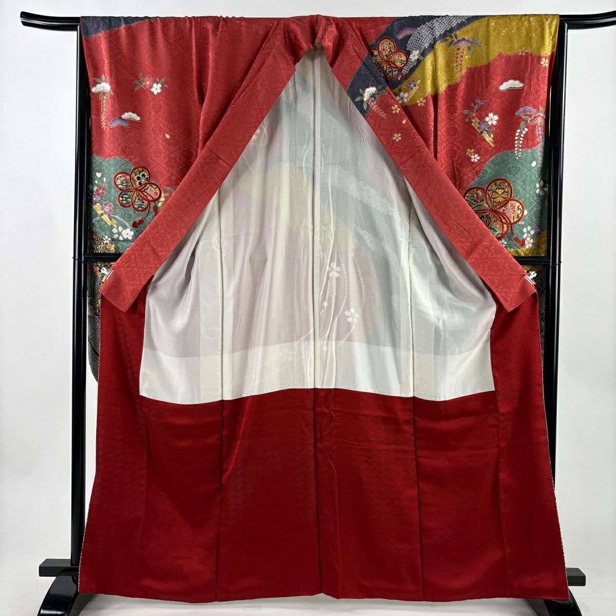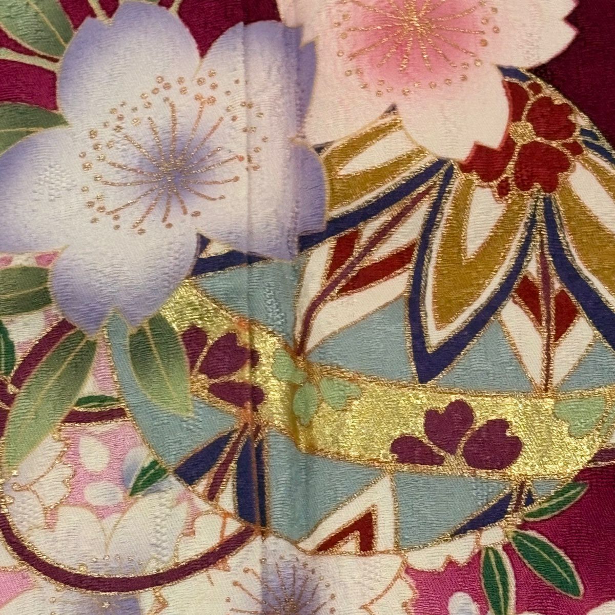 30%OFF 【美品】 振袖 身丈158cm 裄丈64cm M 袷 桜 熨斗 金糸 金彩 赤 正絹 秀品 K30