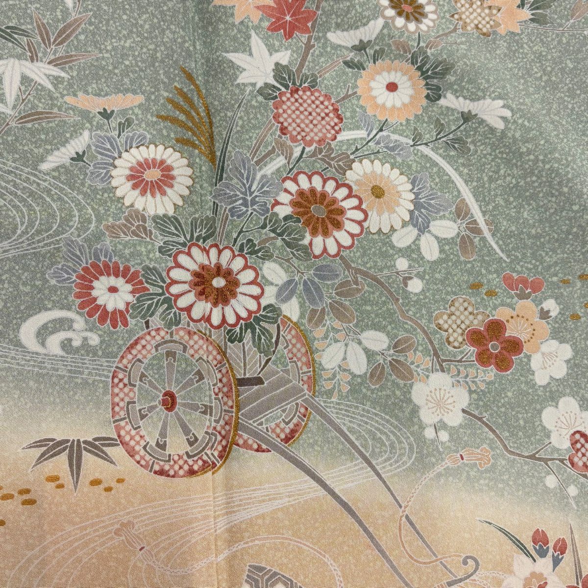 30%OFF 訪問着 身丈166cm 裄丈67cm M 袷 花車 雪輪 金彩 ぼかし 灰緑 正絹 秀品 K30