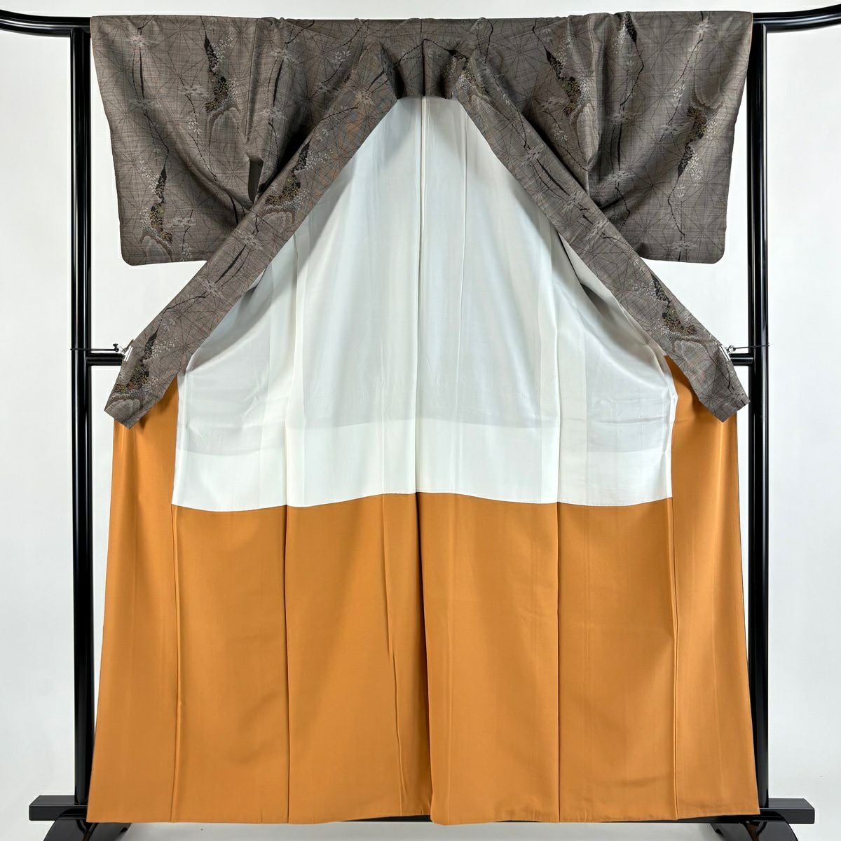 30%OFF 色留袖 身丈155cm 裄丈64cm M 袷 鶴 松 金糸 金彩 灰茶 正絹 秀品 三つ紋 K30