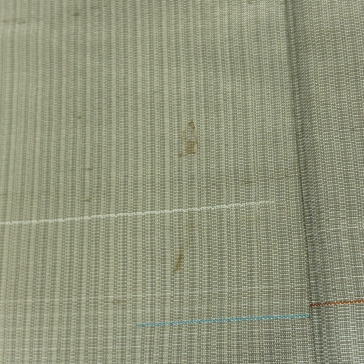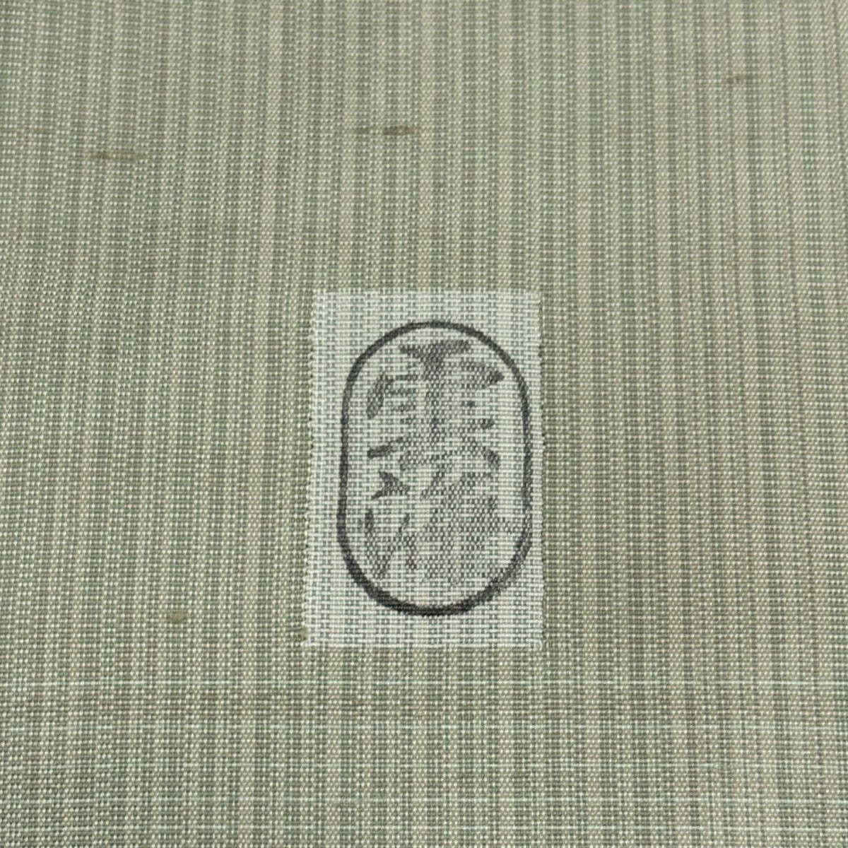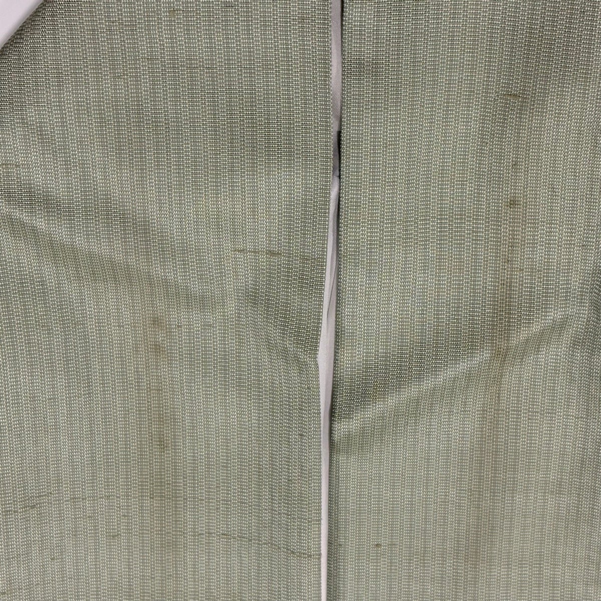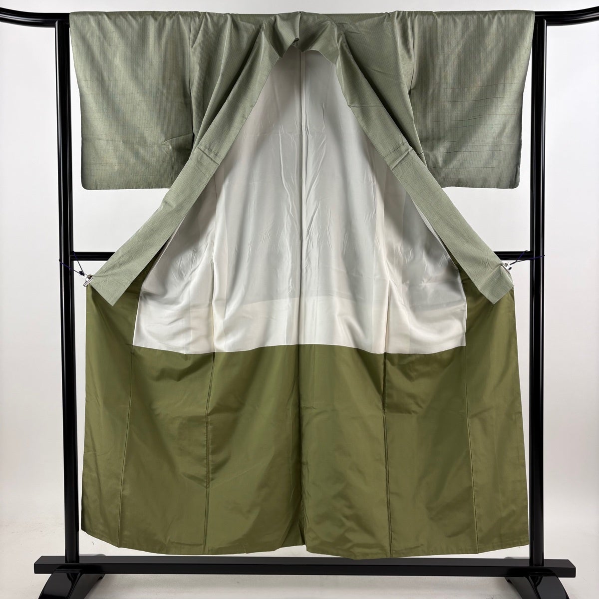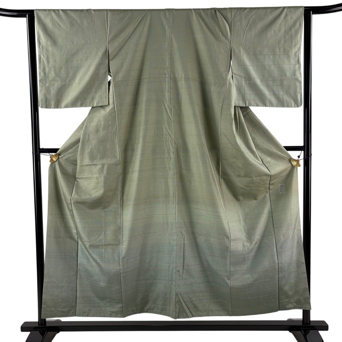 色無地 身丈159cm 裄丈64cm M 袷 落款あり 地紋 薄緑 正絹 秀品 一つ紋