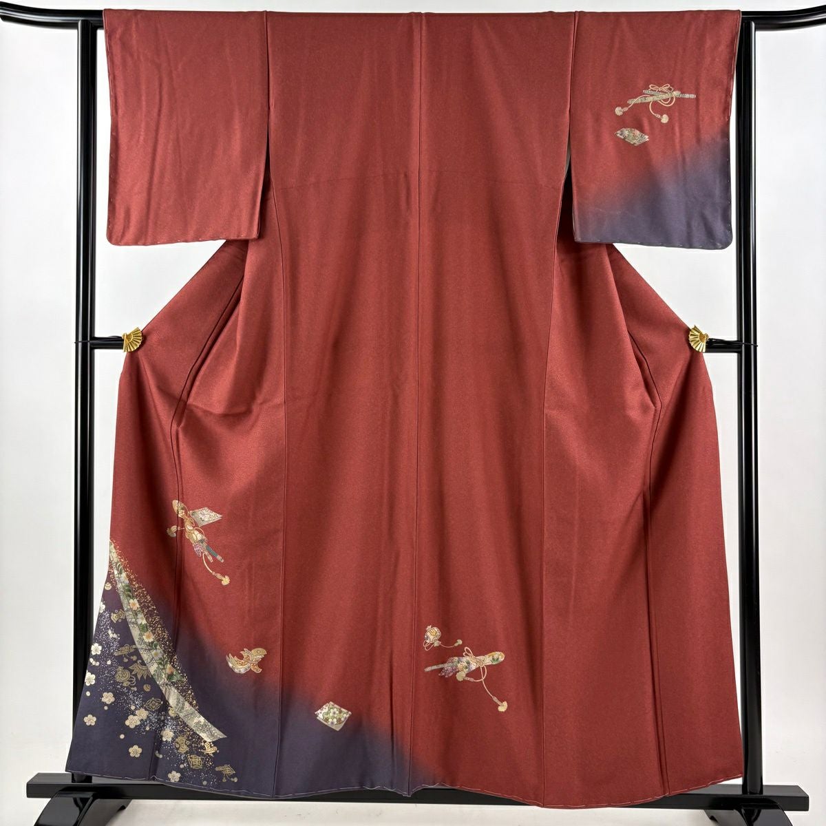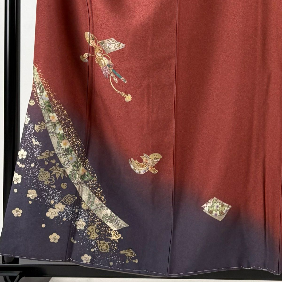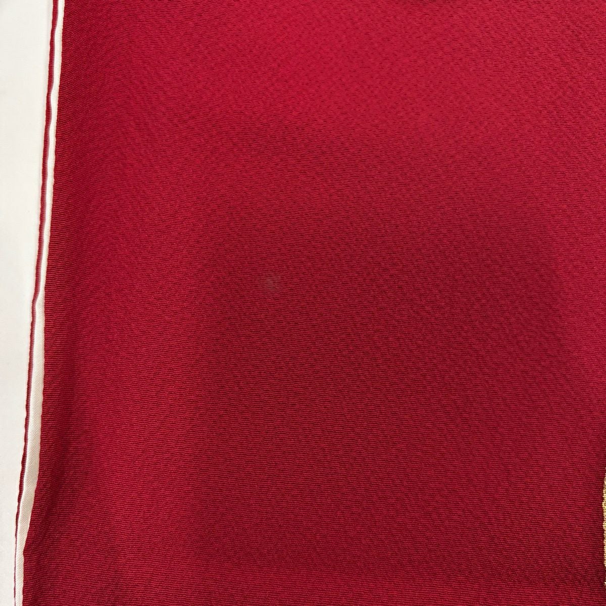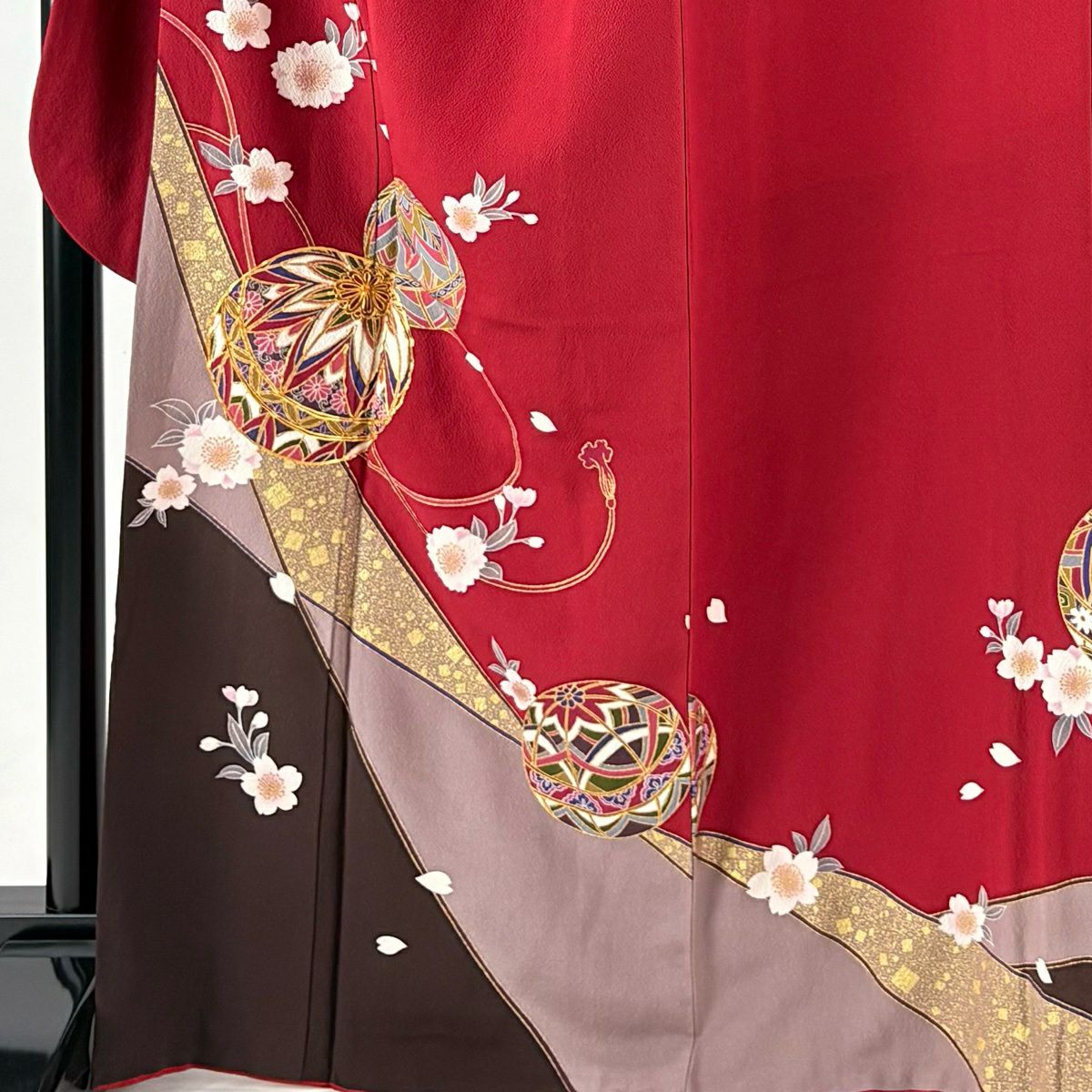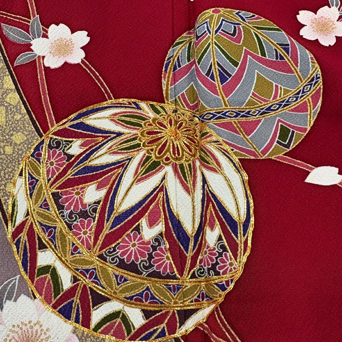 50%OFF 振袖 身丈166.5cm 裄丈69.5cm L 袷 手鞠 桜 金糸 金彩 えんじ色 正絹 秀品 K50
