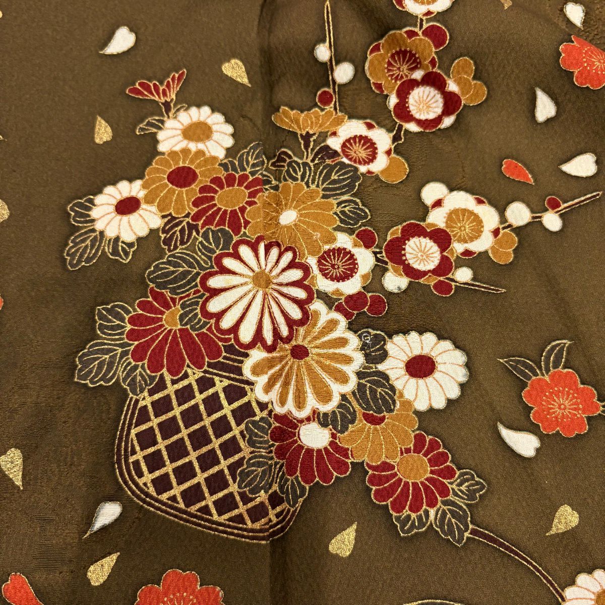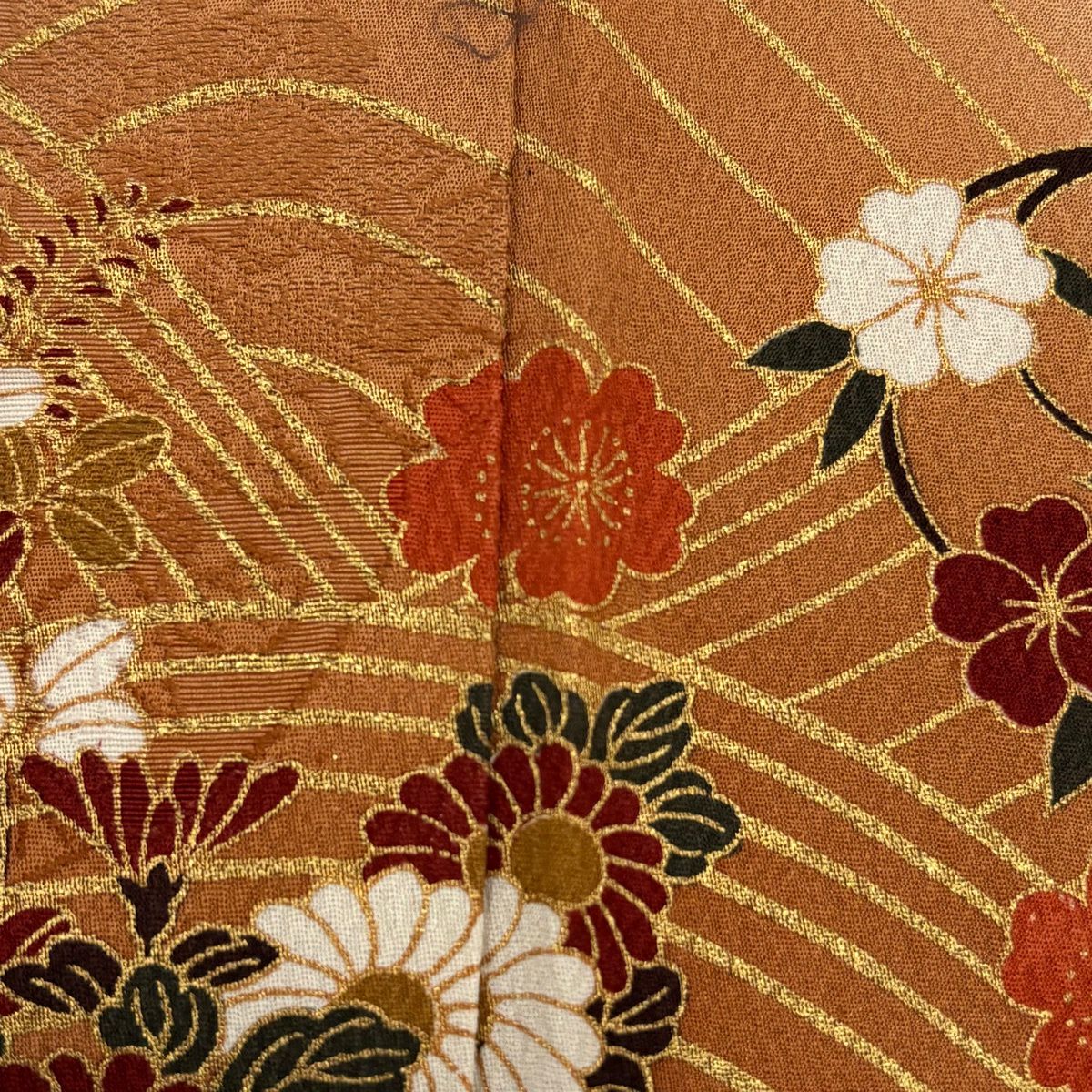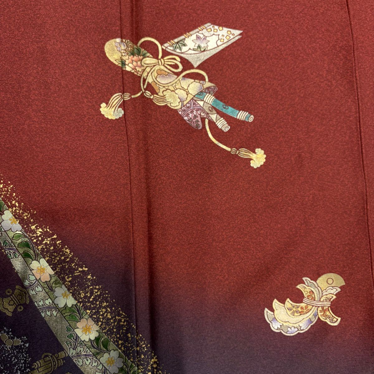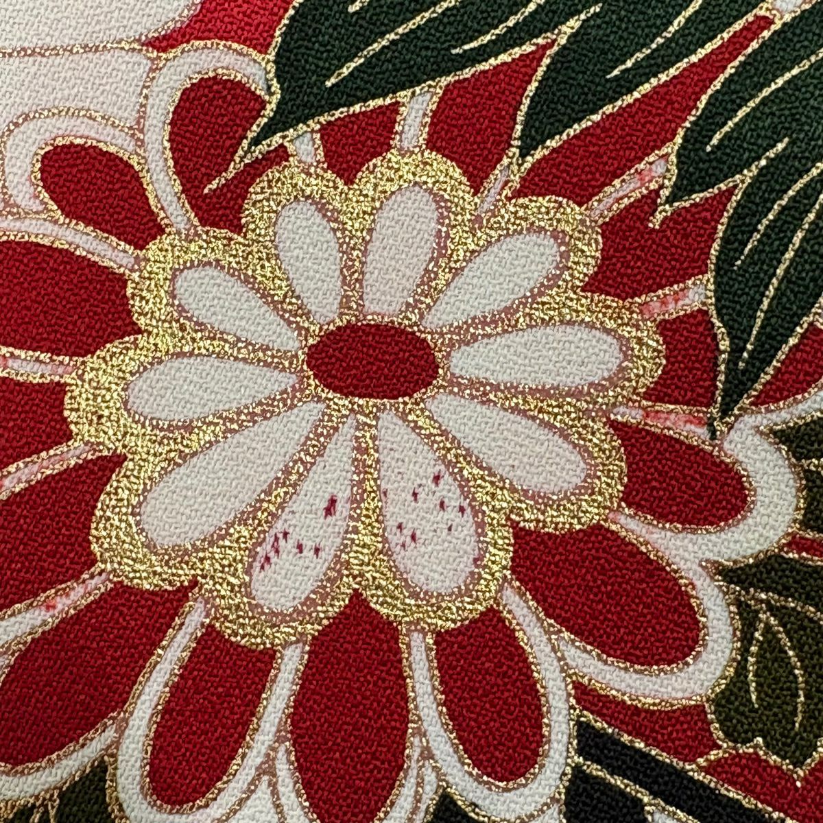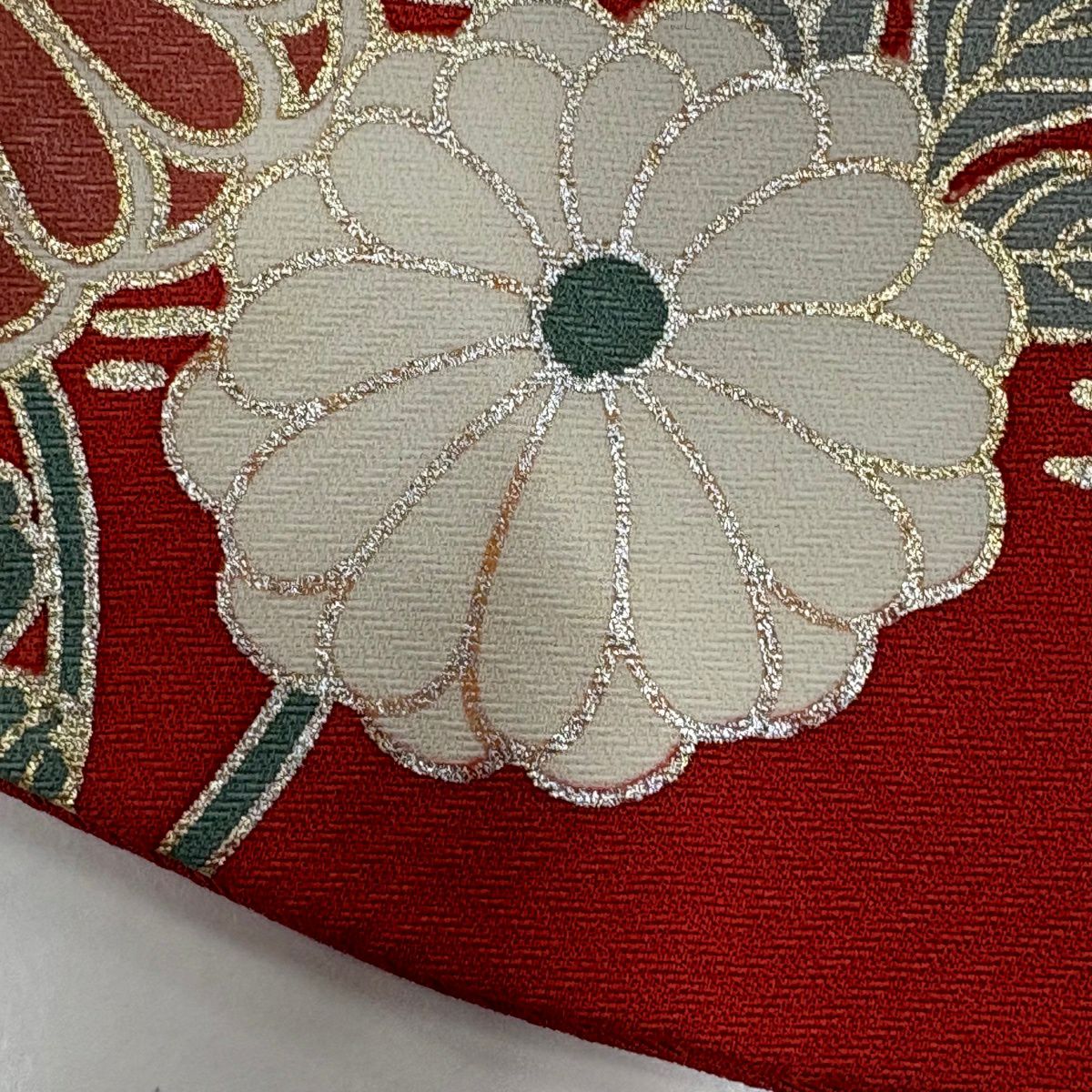 50%OFF 振袖 身丈166.5cm 裄丈69.5cm L 袷 手鞠 桜 金糸 金彩 えんじ色 正絹 秀品 K50